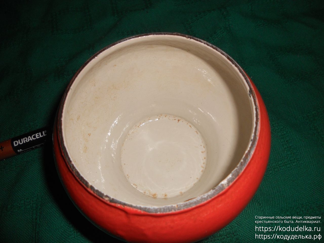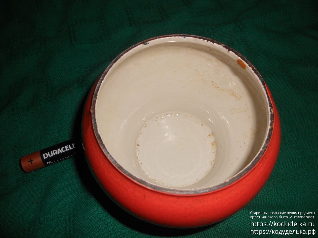 Обливной чугунок 0.5 литра, с целой эмалью внутри, б/у, небольшие следы бытования (не вымыт).