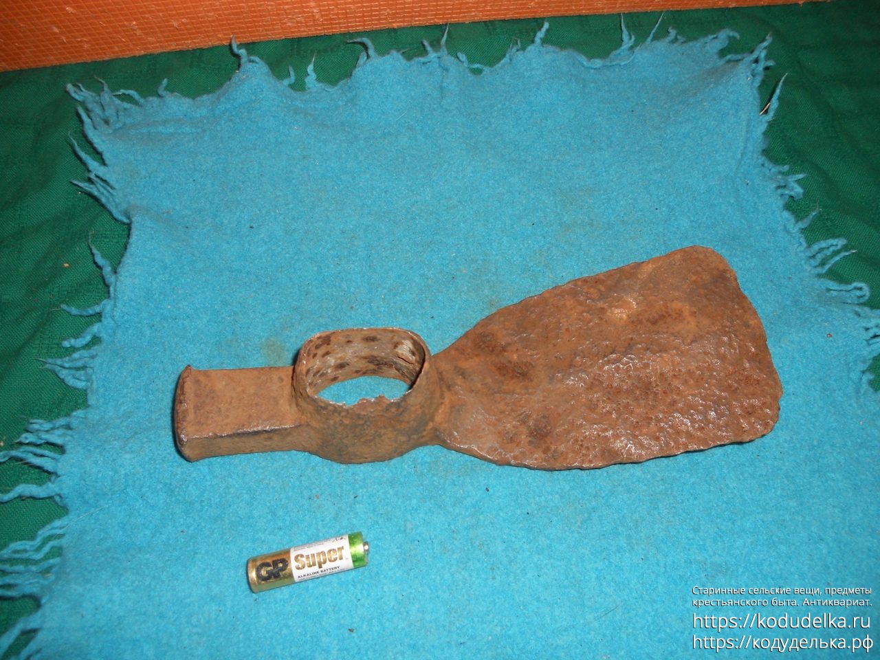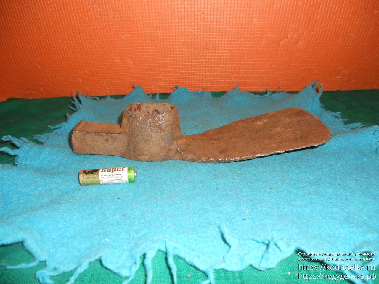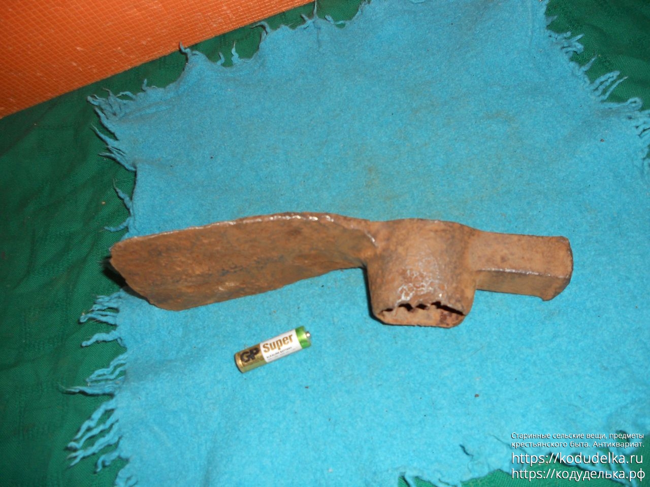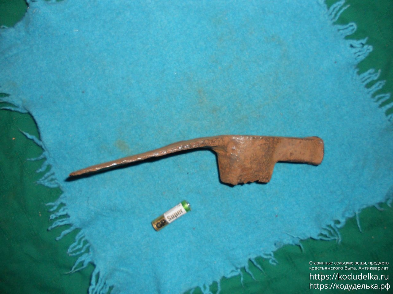 Доброго! Странно, что возникли затруднения… Это дексель, но не старинный, а уже «штатный» железнодорожный. Хотя, их часто прямо в депо ковали, из-за чего форма-размеры бывают чуть разные, но в целом определяется прекрасно. И молоток на обухе — верный признак именно «традиционного» декселя, современного. Сейчас такие и новые в продаже.