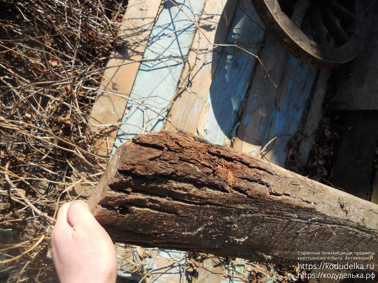 Сзади на оборотной стороне сверху выглядит так, словно подгнило — но это кора от заготовки, и, судя по коре, это сосна.