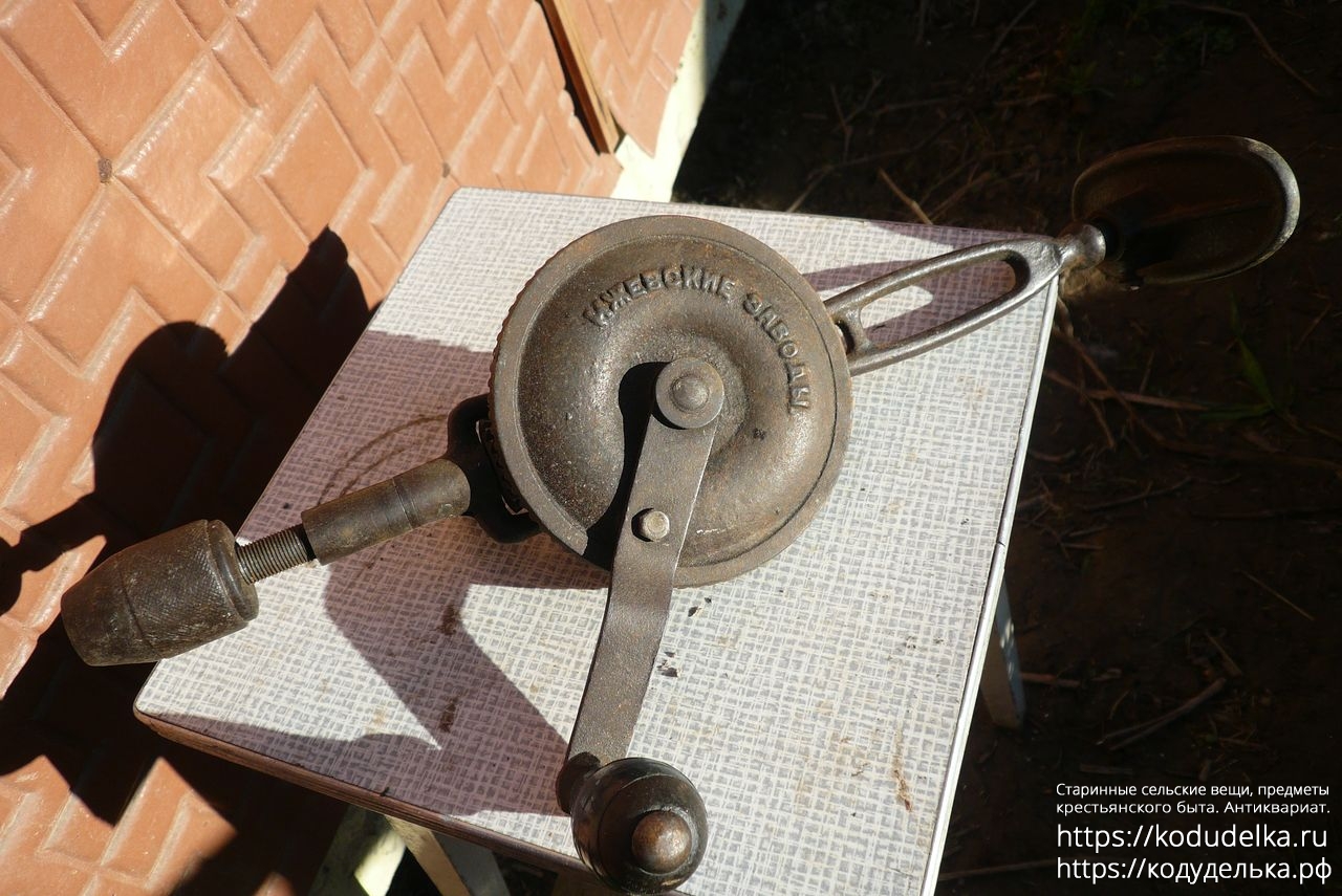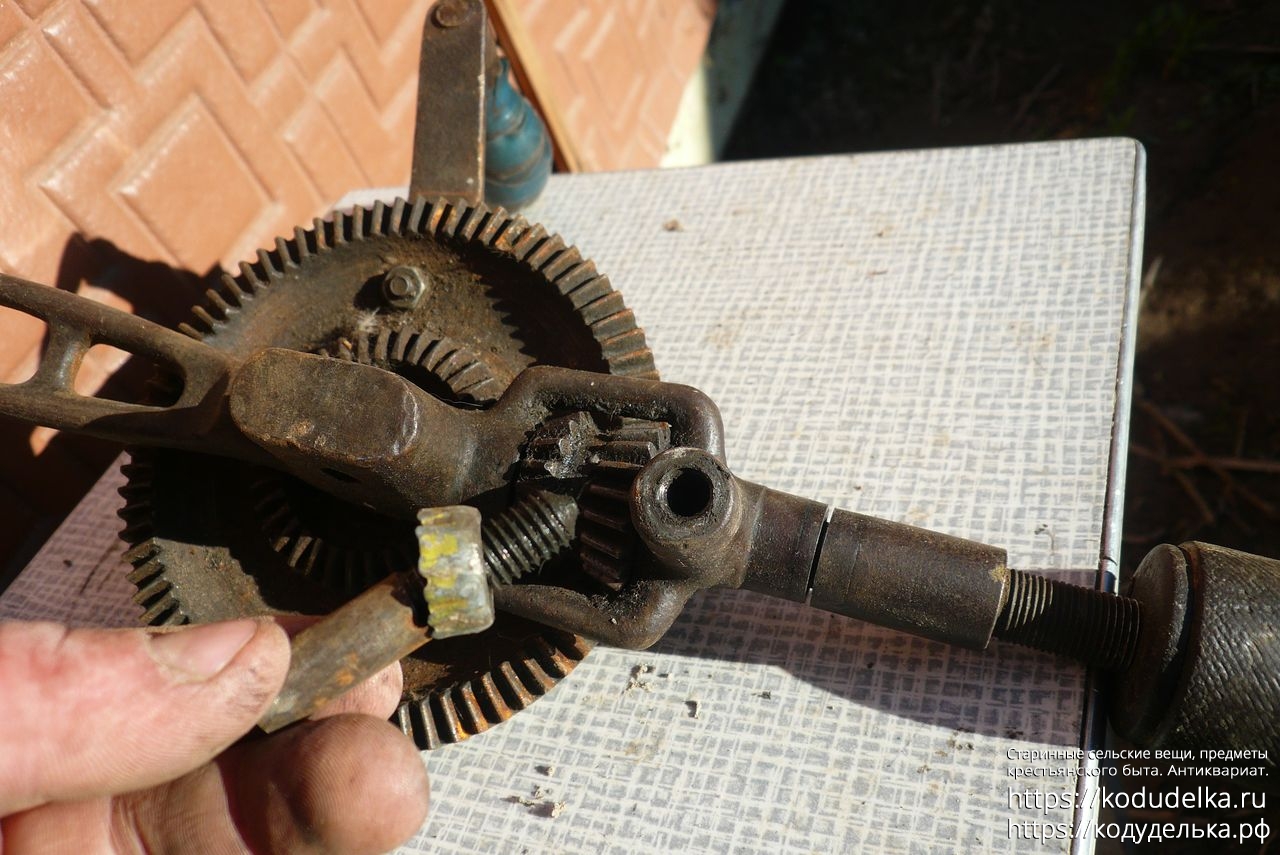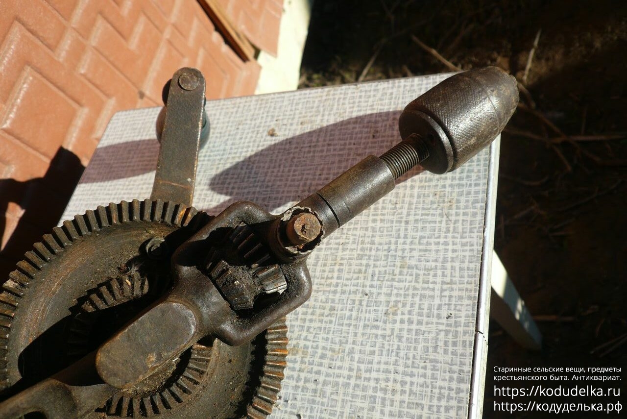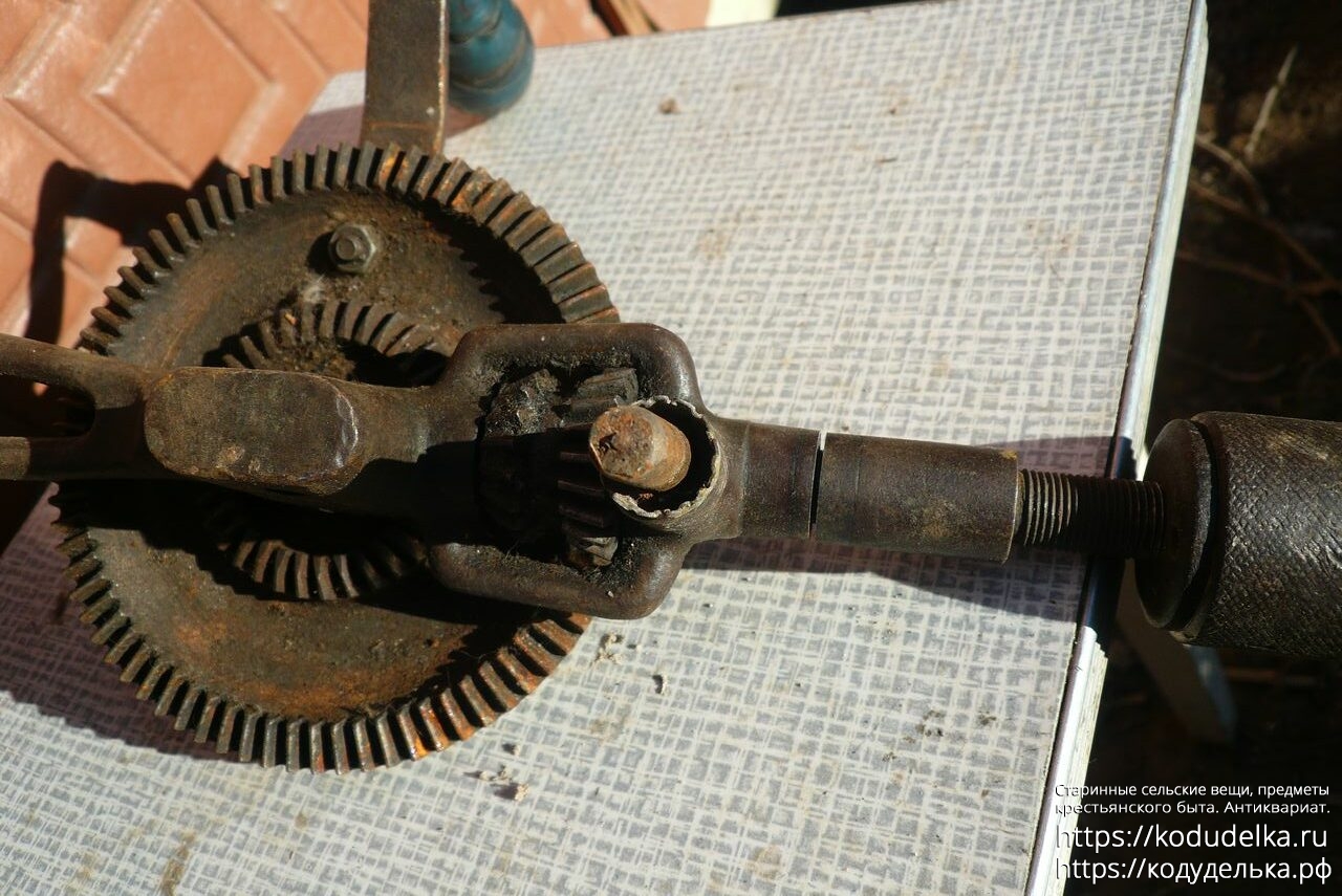 Фактурная механическая дрель из СССР, с клеймом Ижевские заводы, с круглой частью приводного колеса с зубцами «в стиле ППШ».