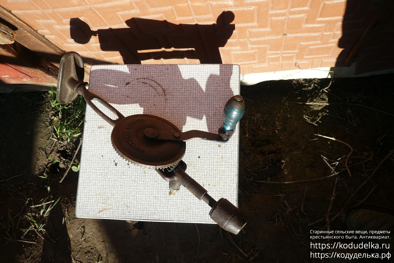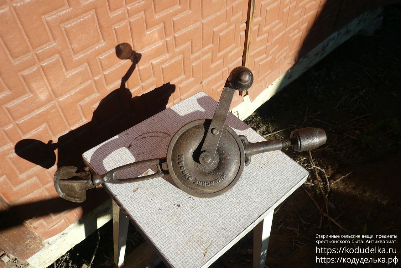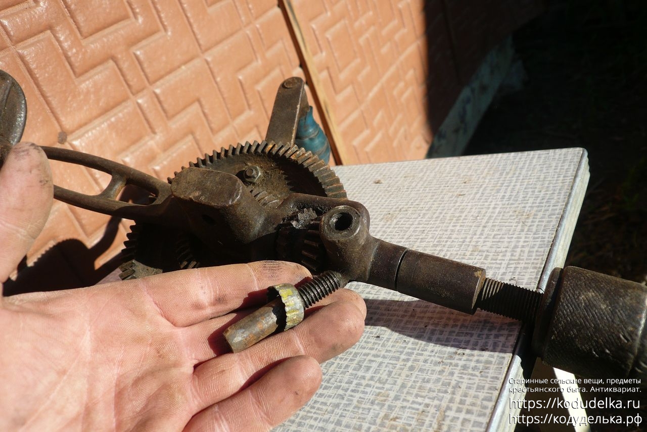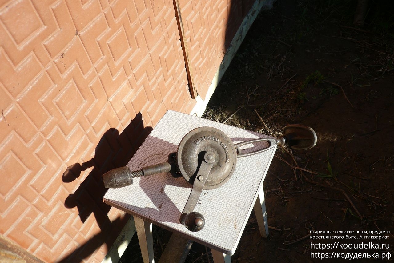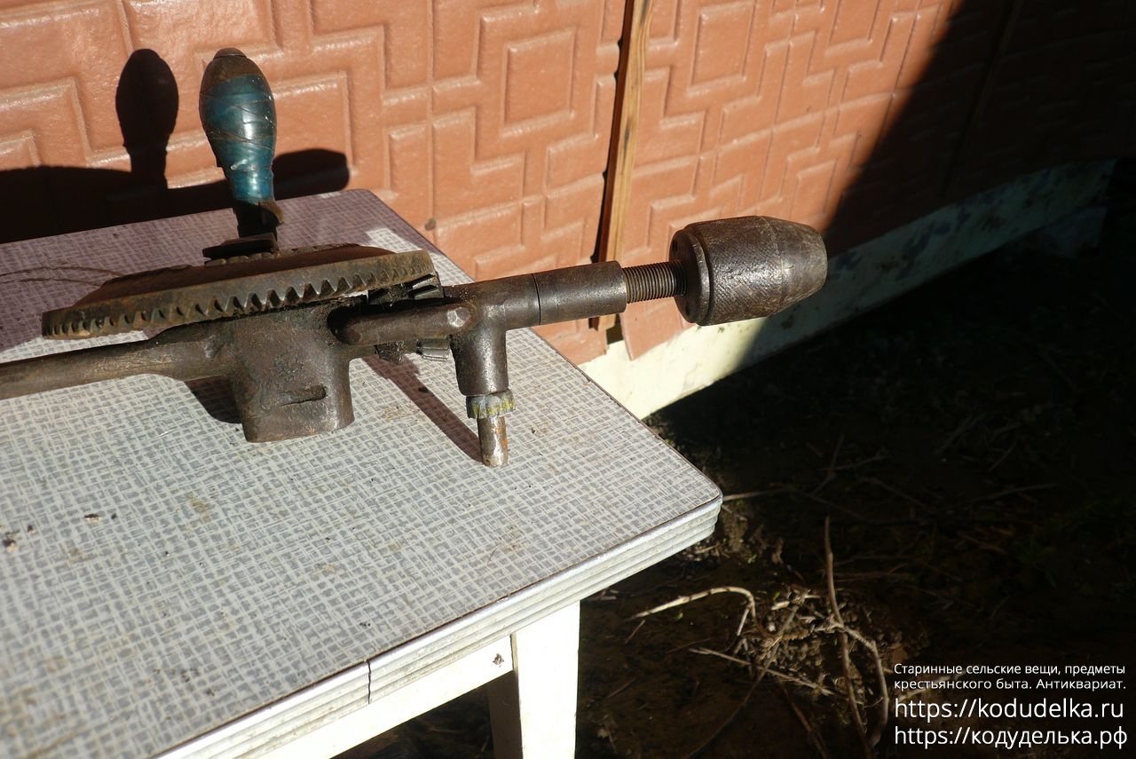 Фактурная механическая дрель из СССР, с клеймом Ижевские заводы, с круглой частью приводного колеса с зубцами «в стиле ППШ».