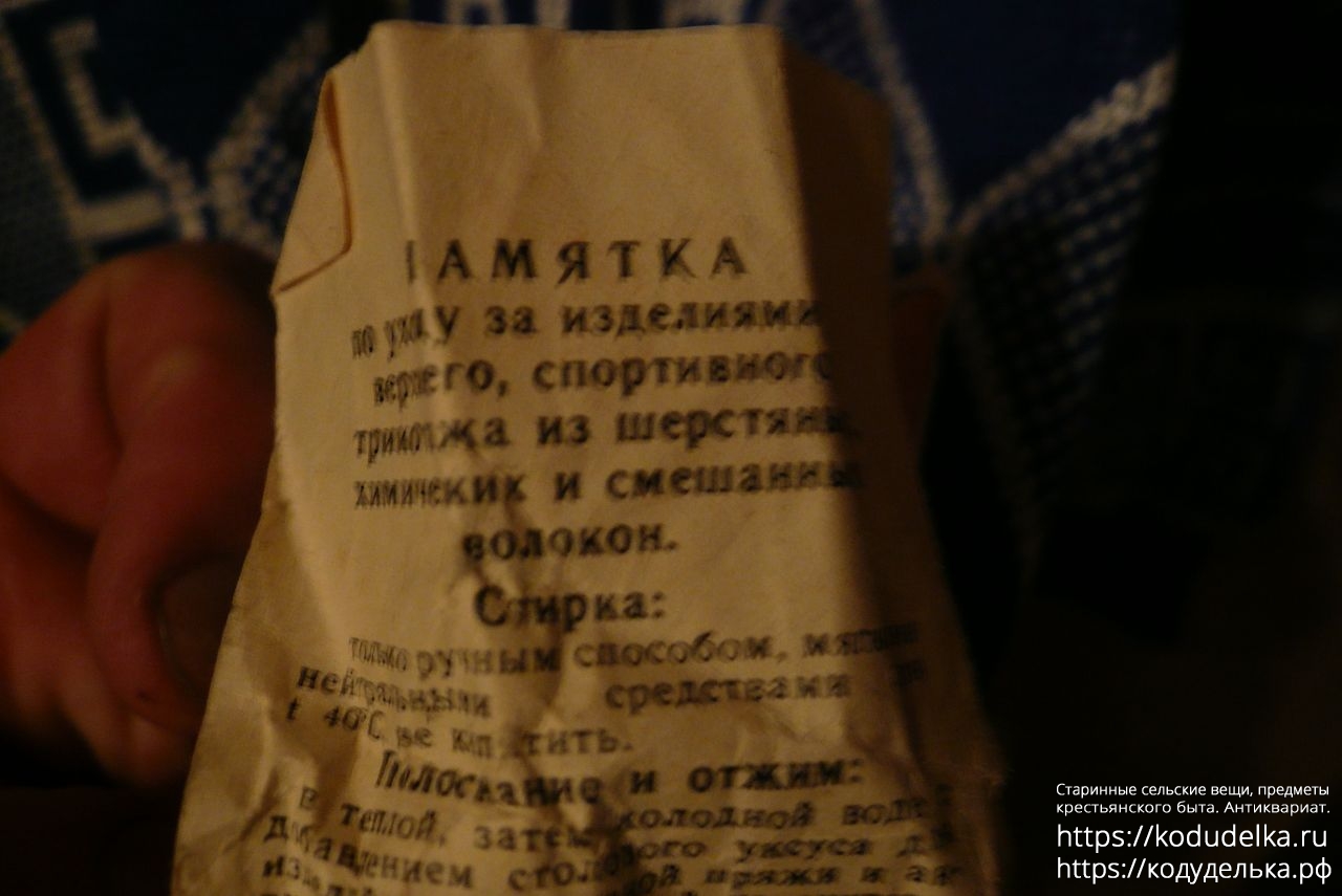 также на бумажном шильдике есть памятка о правилах ухода за трикотажными изделиями и стирке.