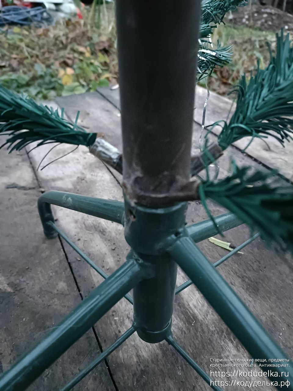 Крестовина от современной (+ внутри из крестовины торчит самодельная деревянная вставка, чтобы ель держалась в ней)
