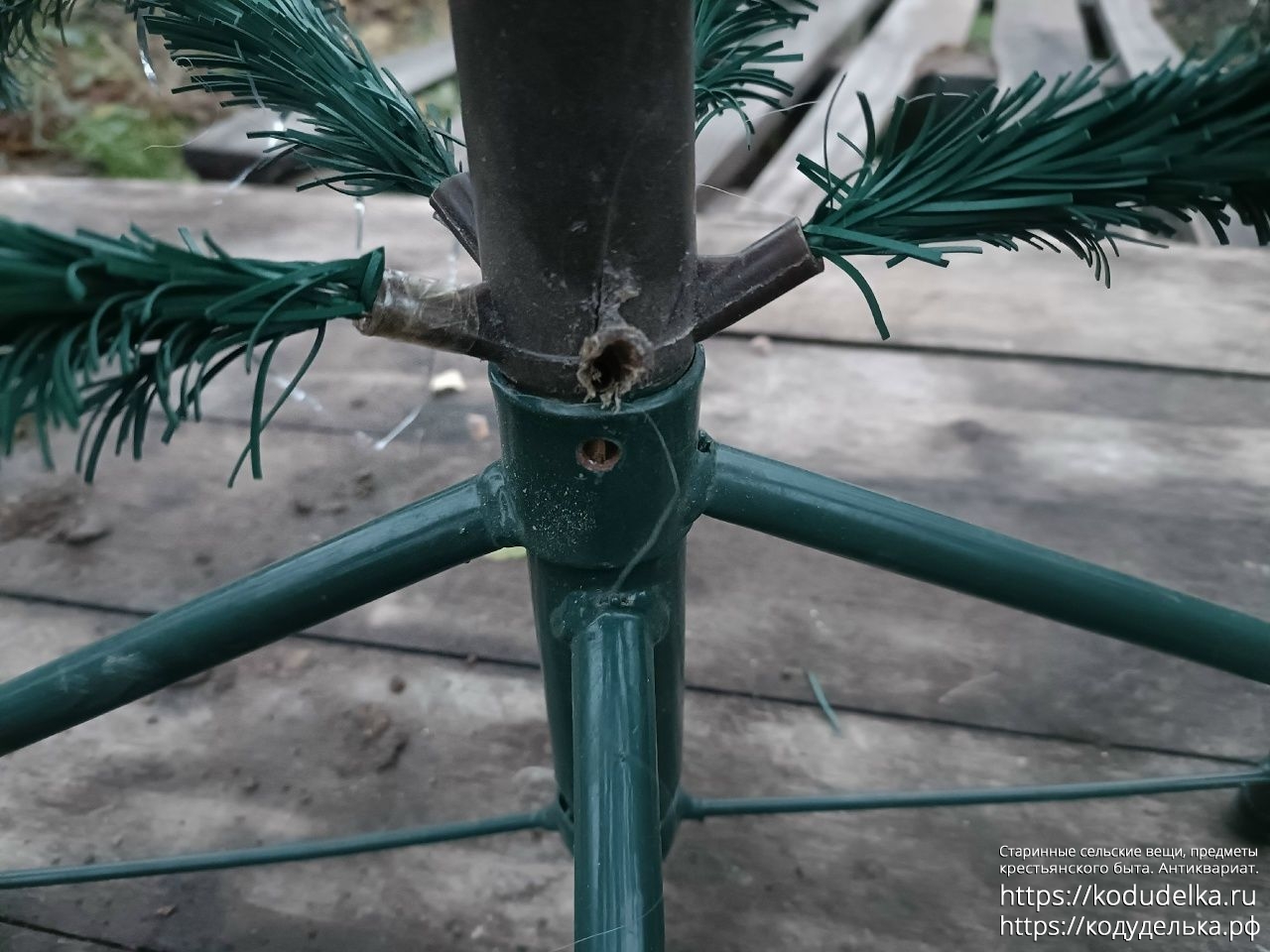 Один крепеж на нижнем ярусе под ветку полностью сломан, переделан — просверлен ствол.
