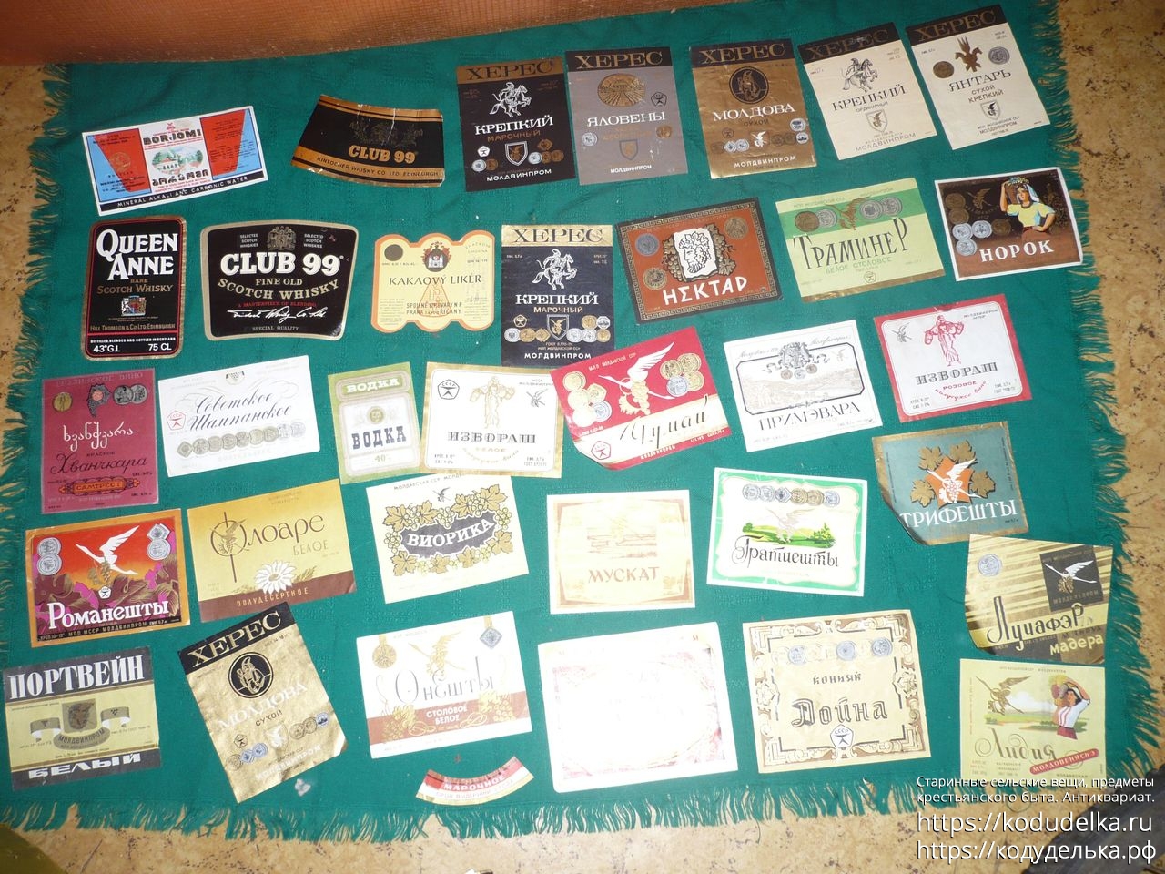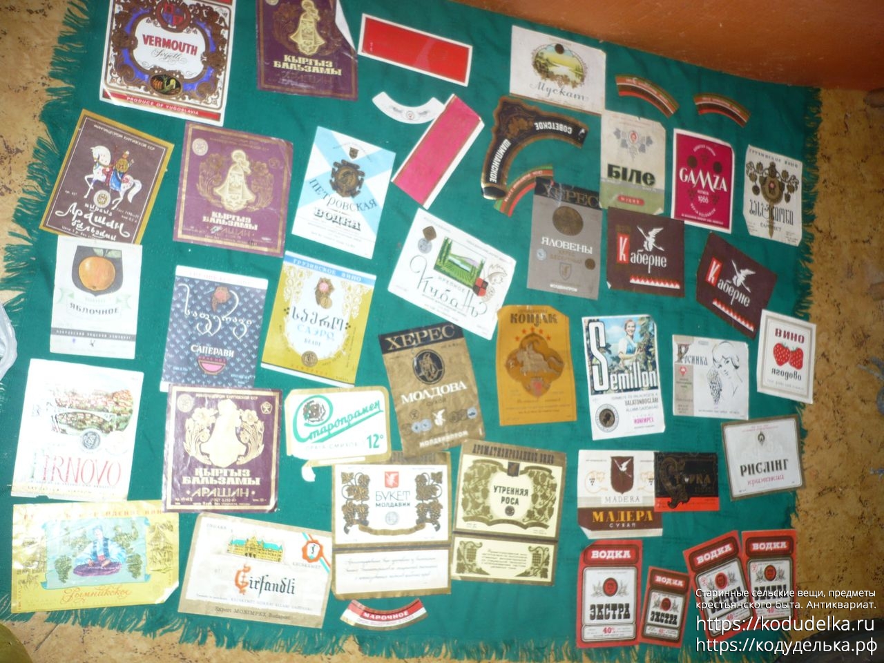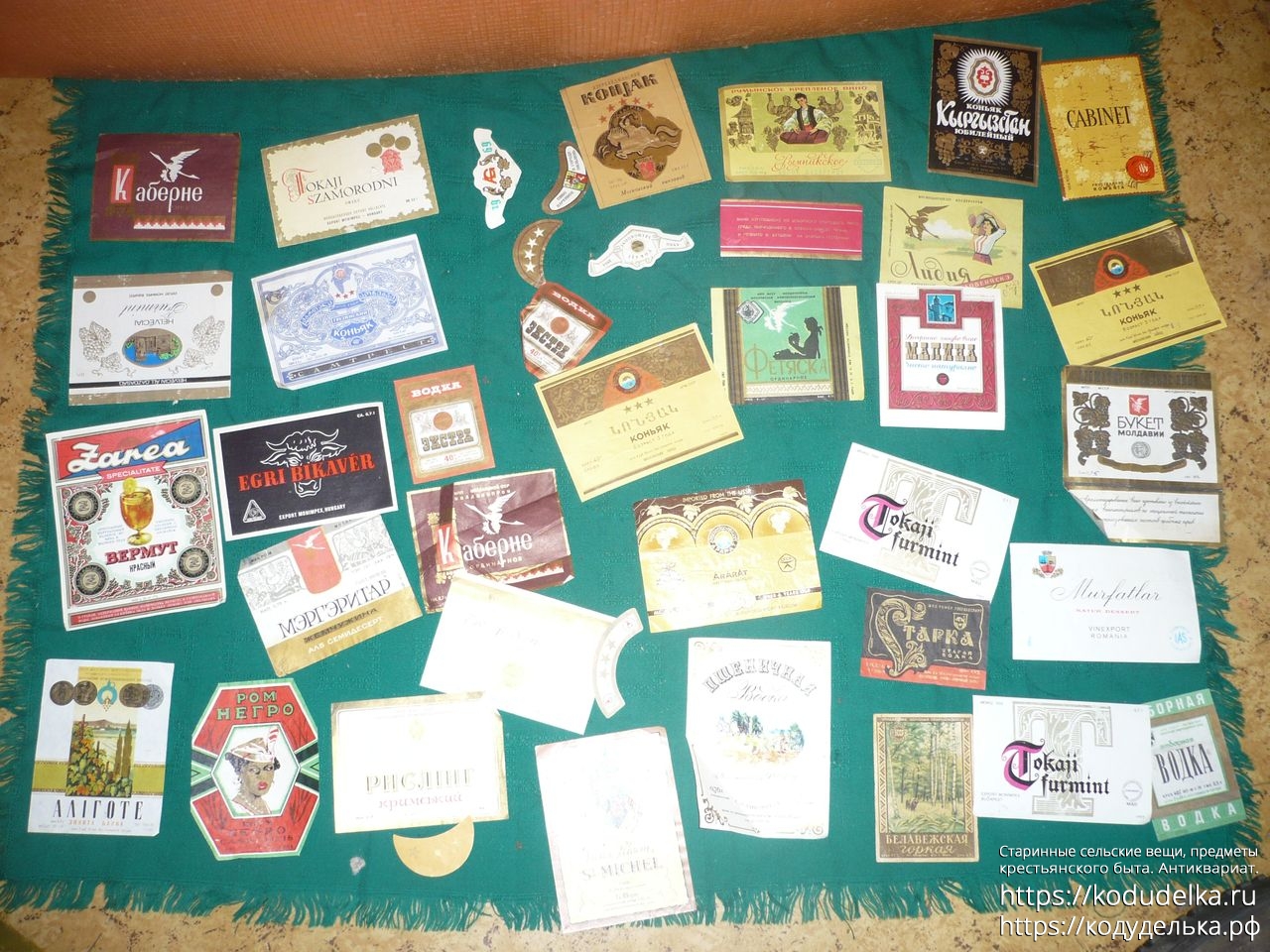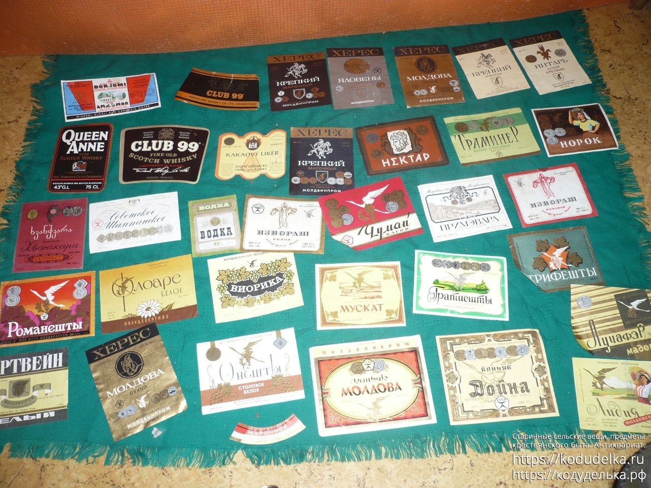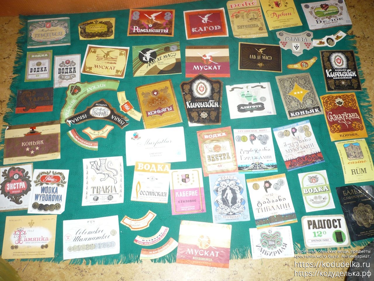 Этикетки от различных напитков времён СССР: вино, шампанское, водка, коньяк, виски, ром, вермут, джин, кагор, портвейн, мартини и т.п.