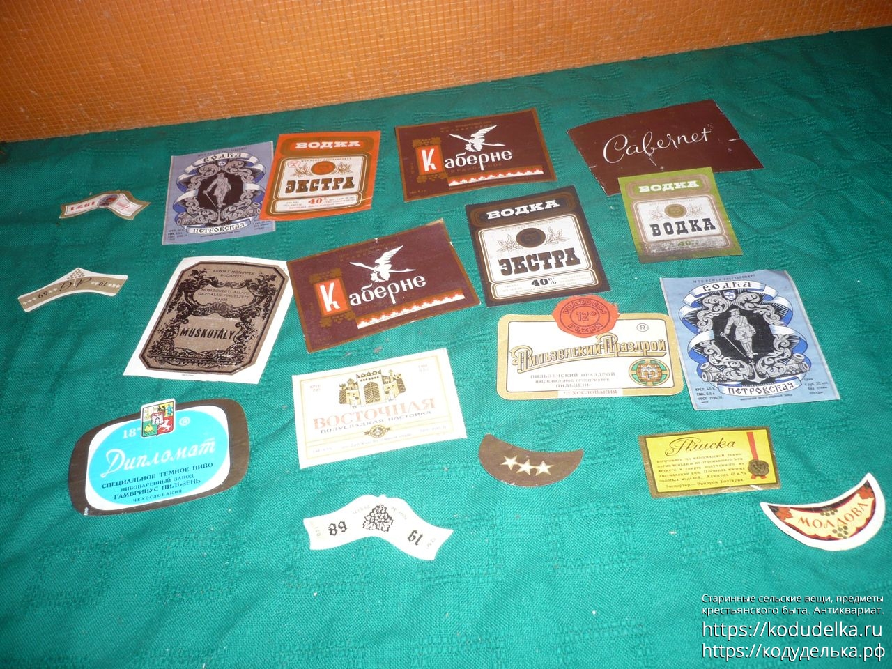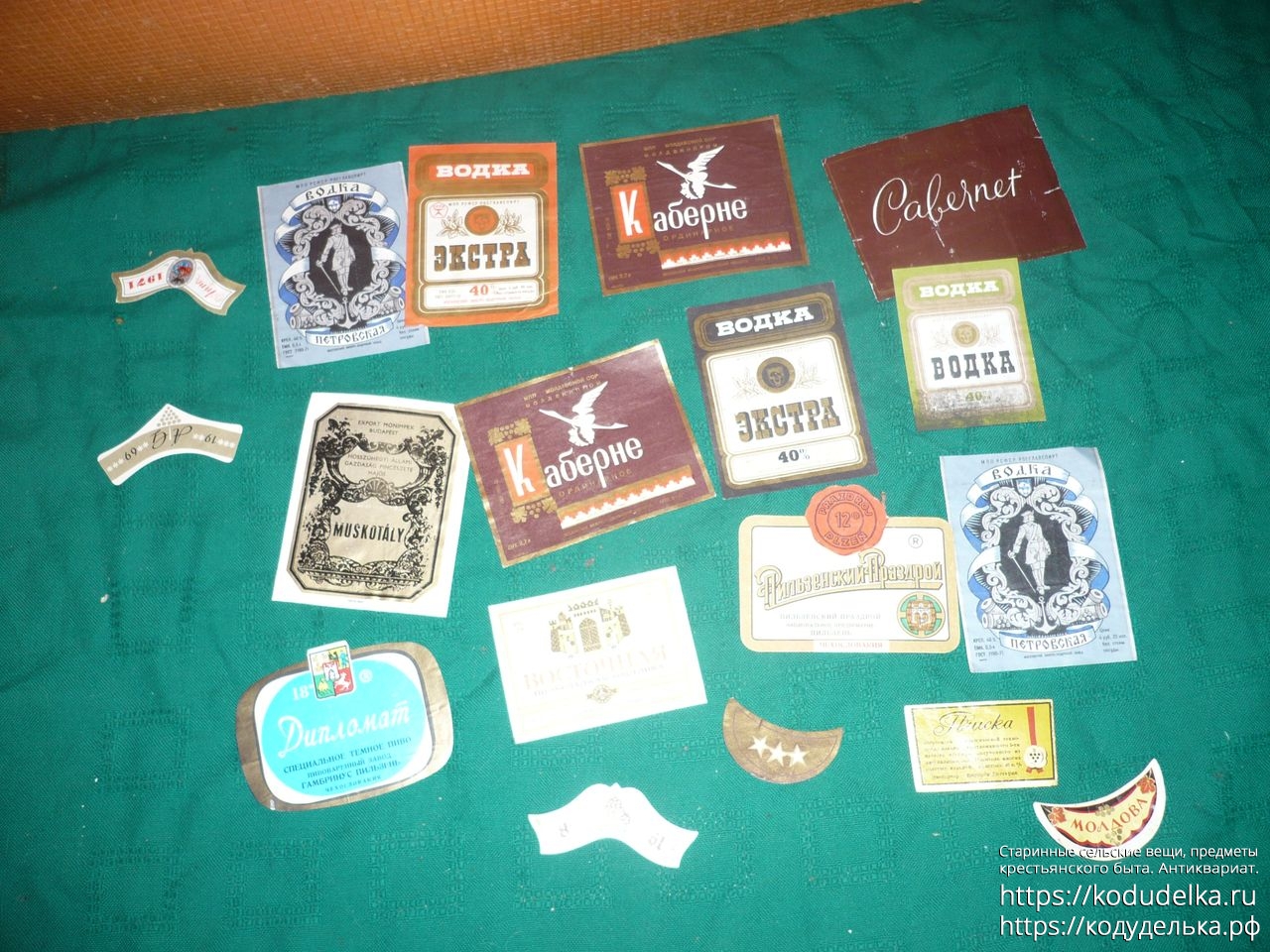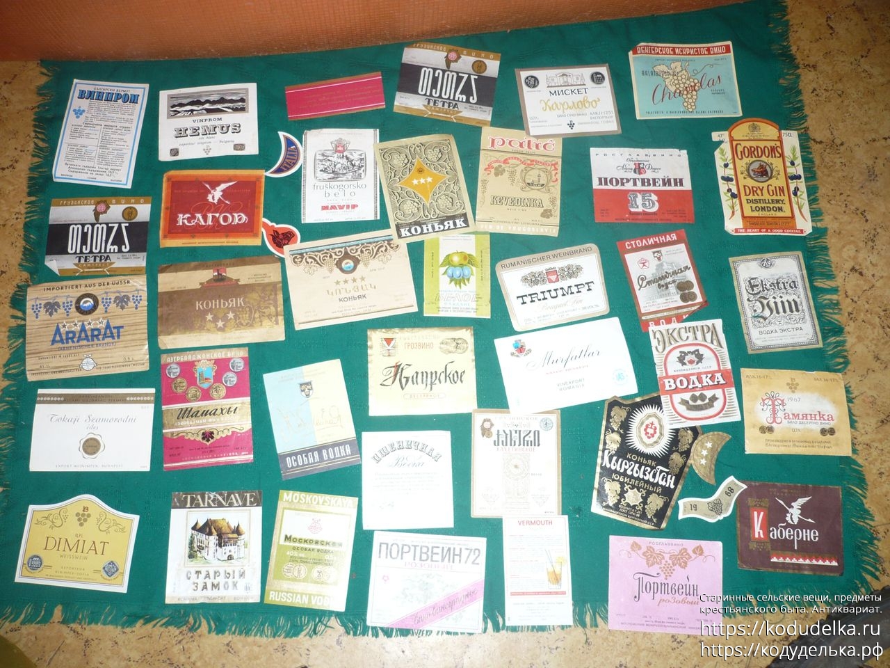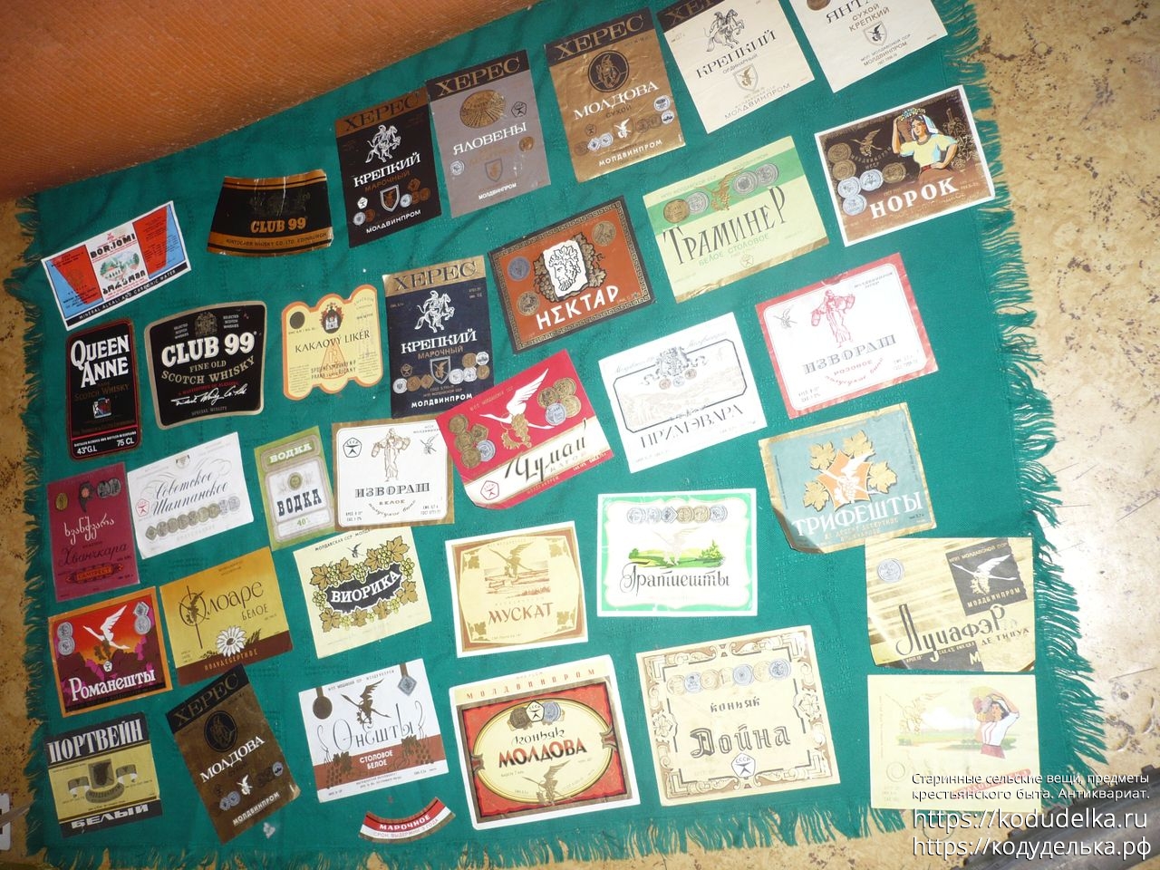 Этикетки от различных напитков времён СССР: вино, шампанское, водка, коньяк, виски, ром, вермут, джин, кагор, портвейн, мартини и т.п.