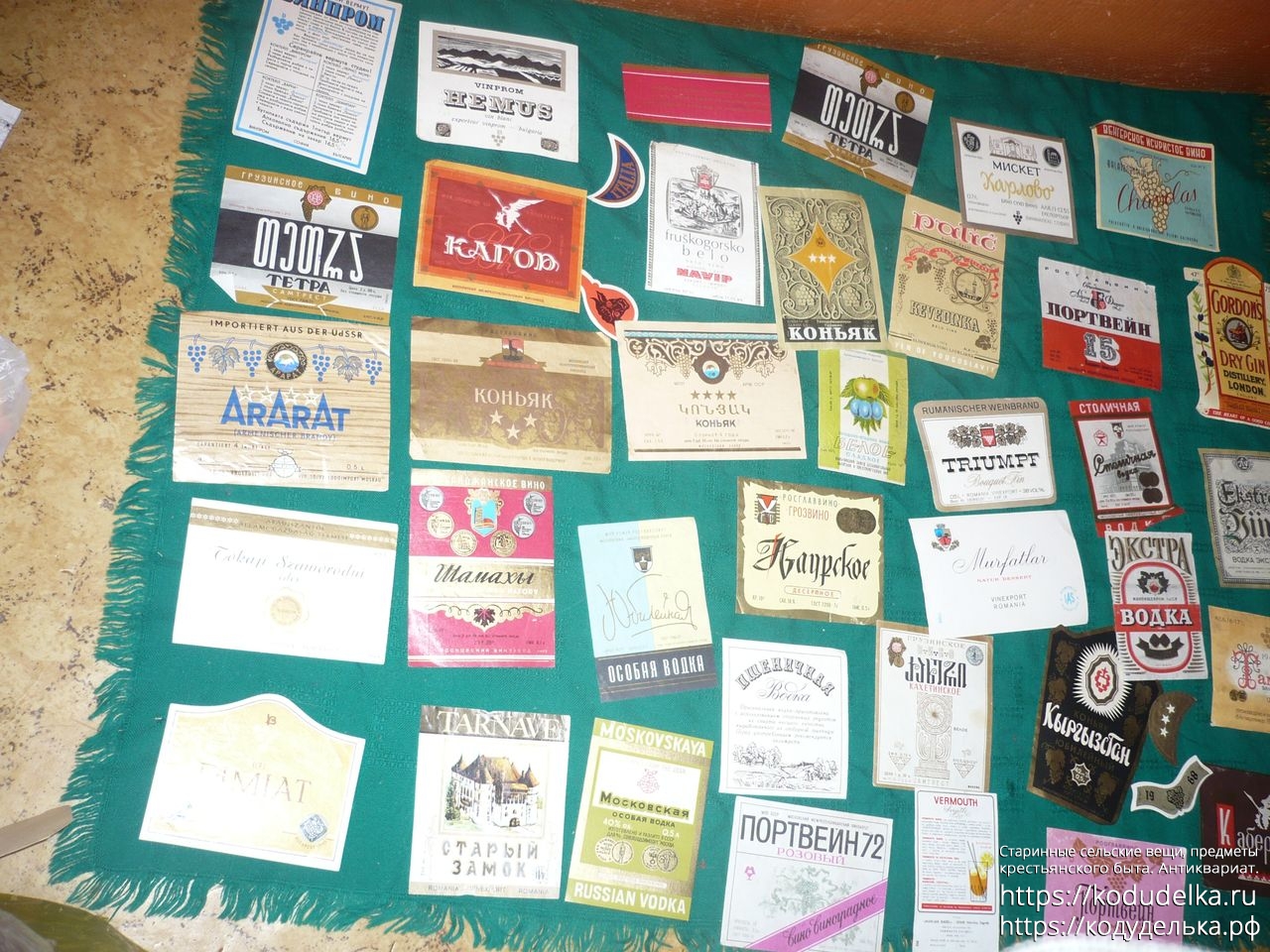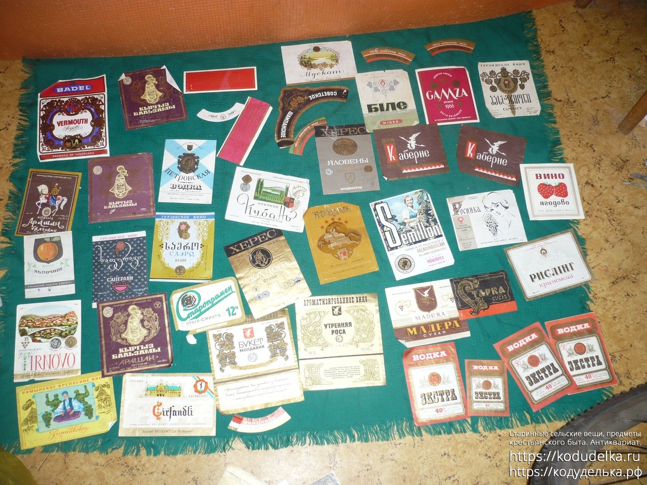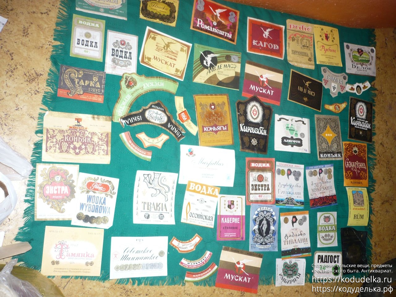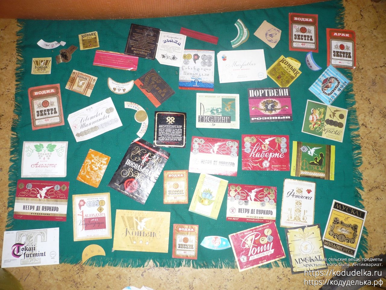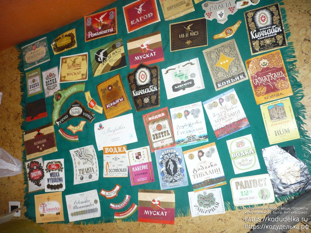 Этикетки от различных напитков времён СССР: вино, шампанское, водка, коньяк, виски, ром, вермут, джин, кагор, портвейн, мартини и т.п.