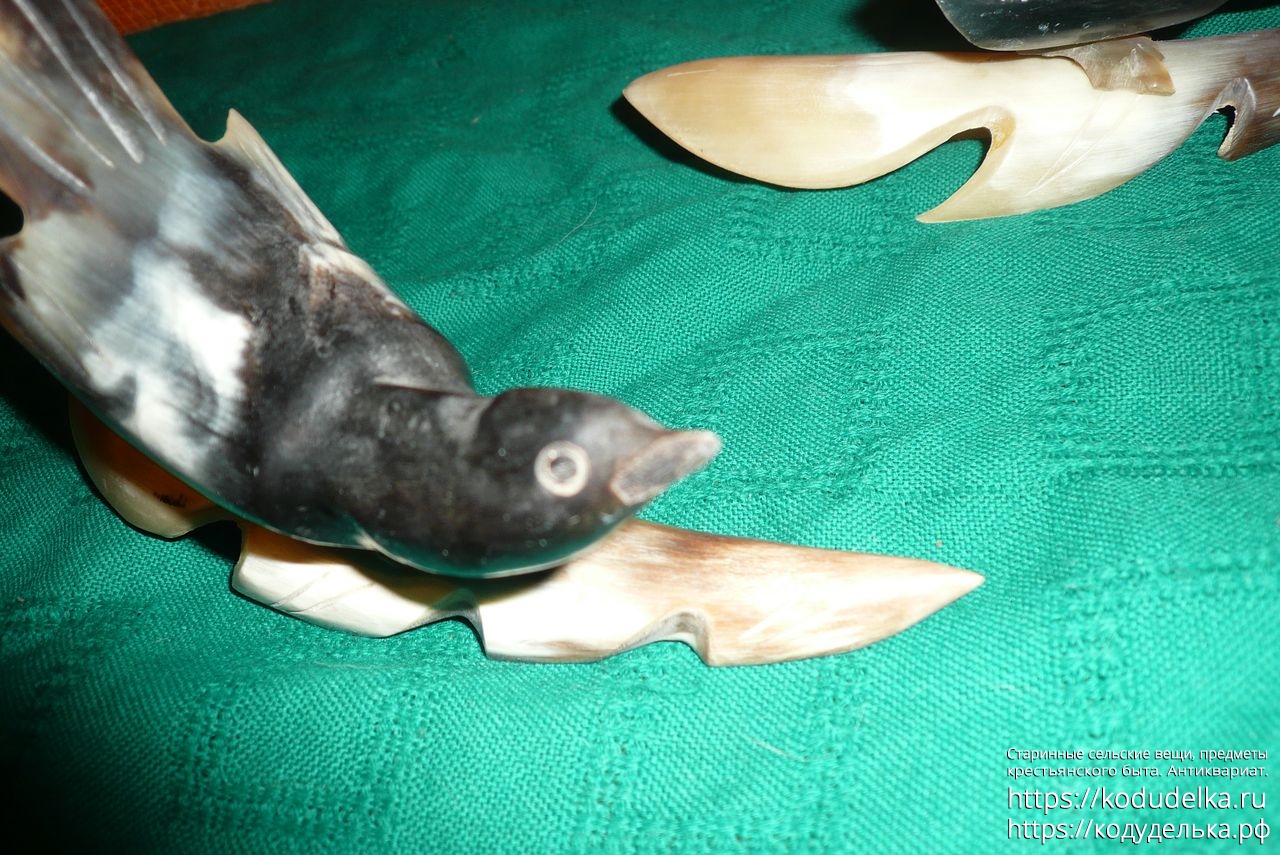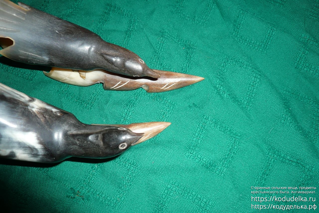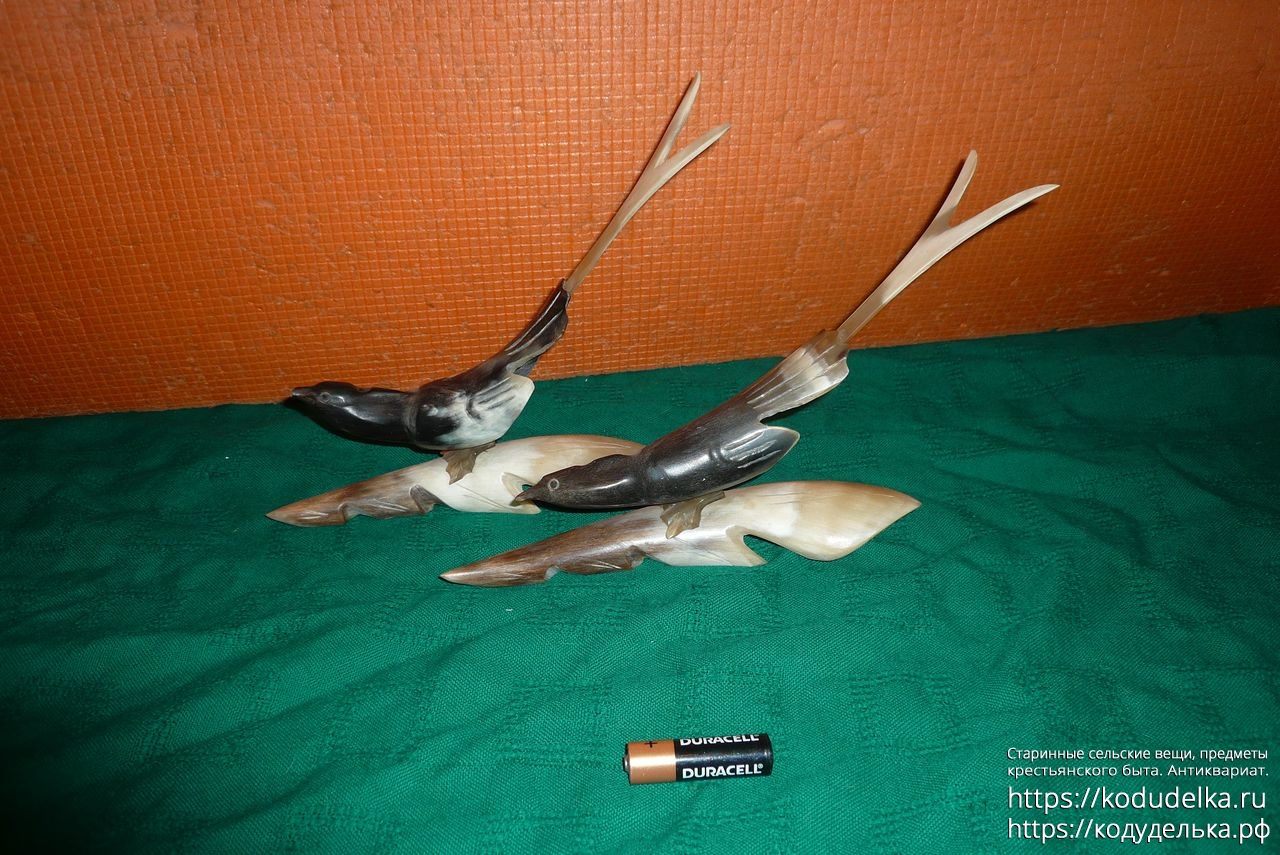 Сувенир, интерьерные статуэтки — парные фигурки из рога (из кости), птицы (есть версия, что это ласточки) СССР (на одной даже шильдик с ценой с оборота остался приклеен).