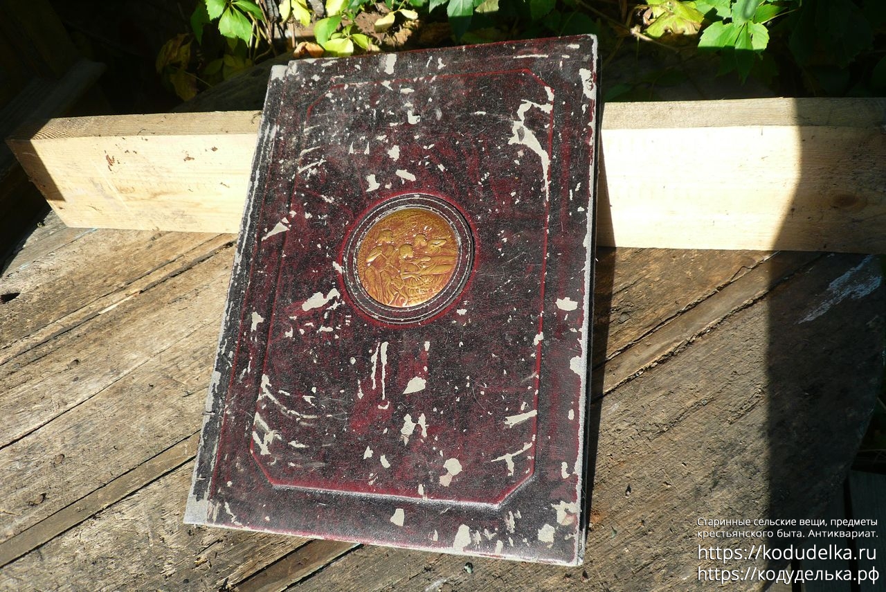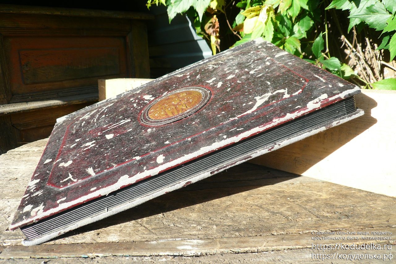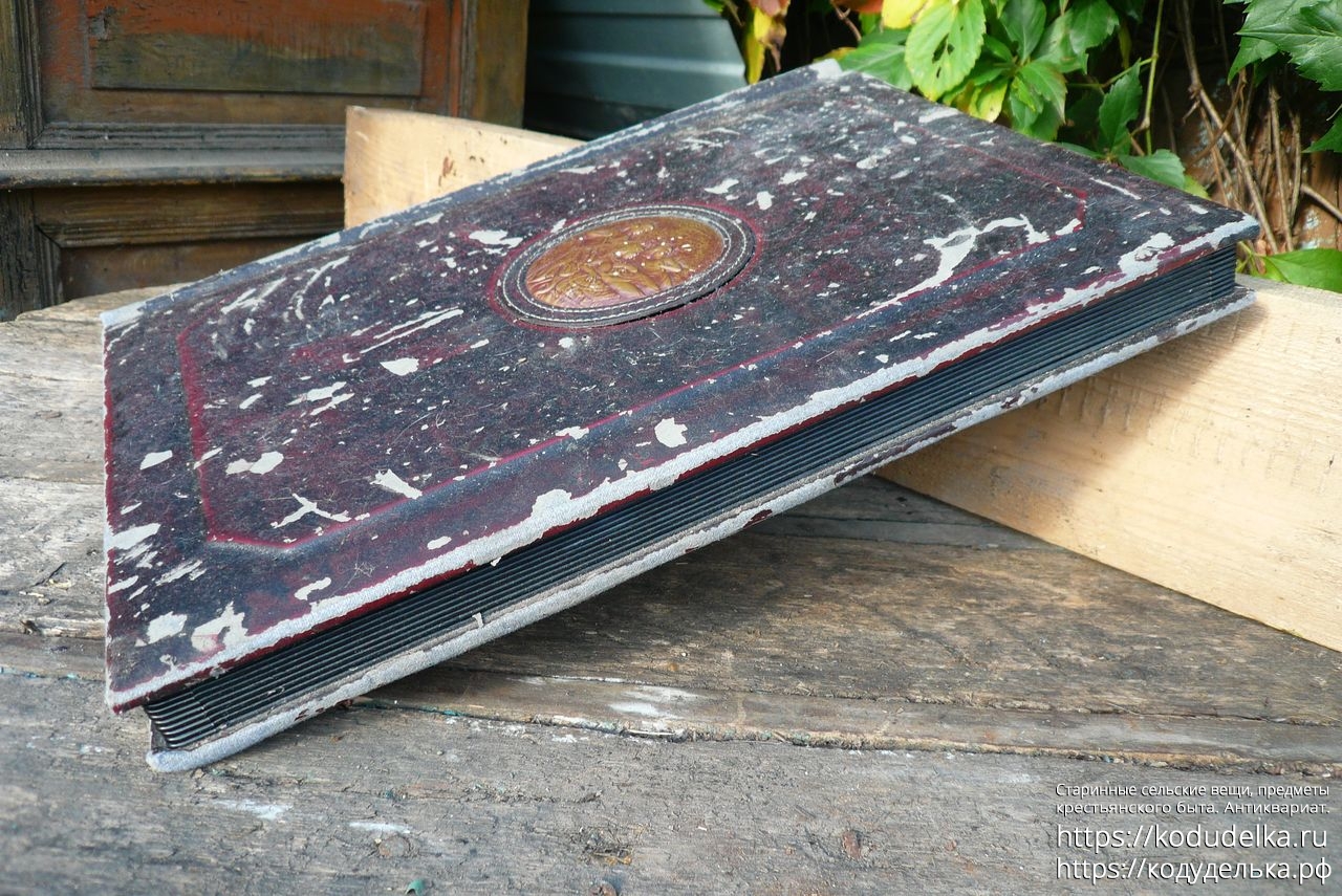 Большая «книга» — возможно, это фотоальбом, визуально оформлена под старинный фолиант.