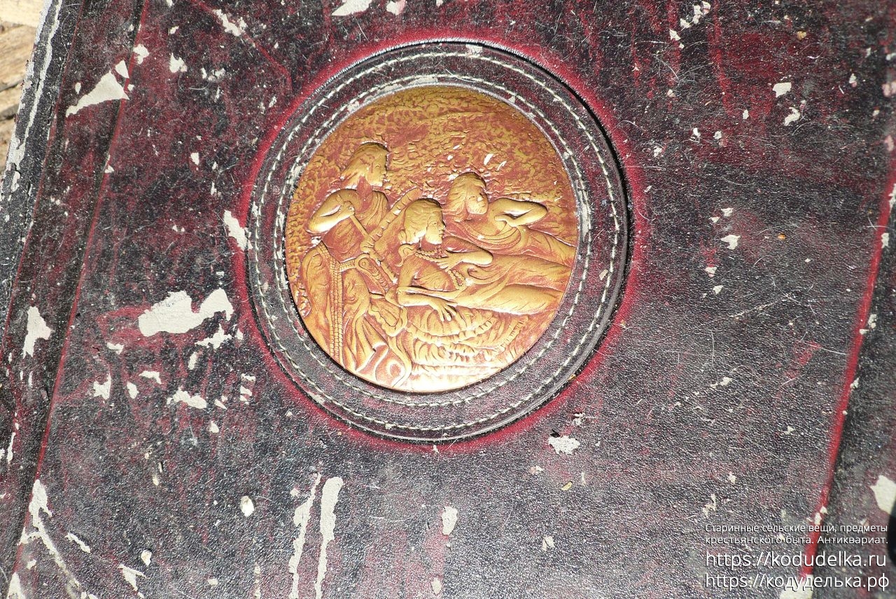 Снаружи — это кожа или кожзам, причём она частично облезла и продолжает облезать.