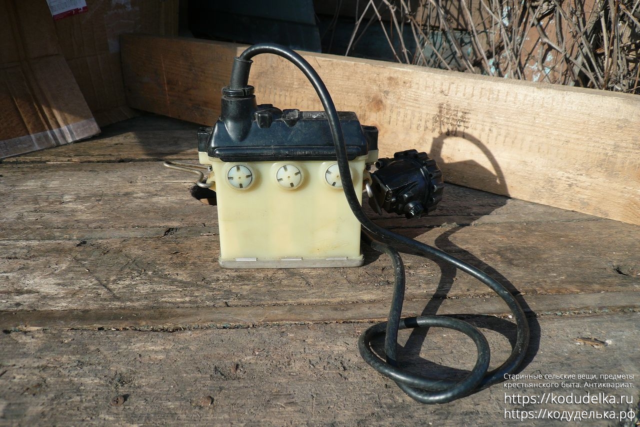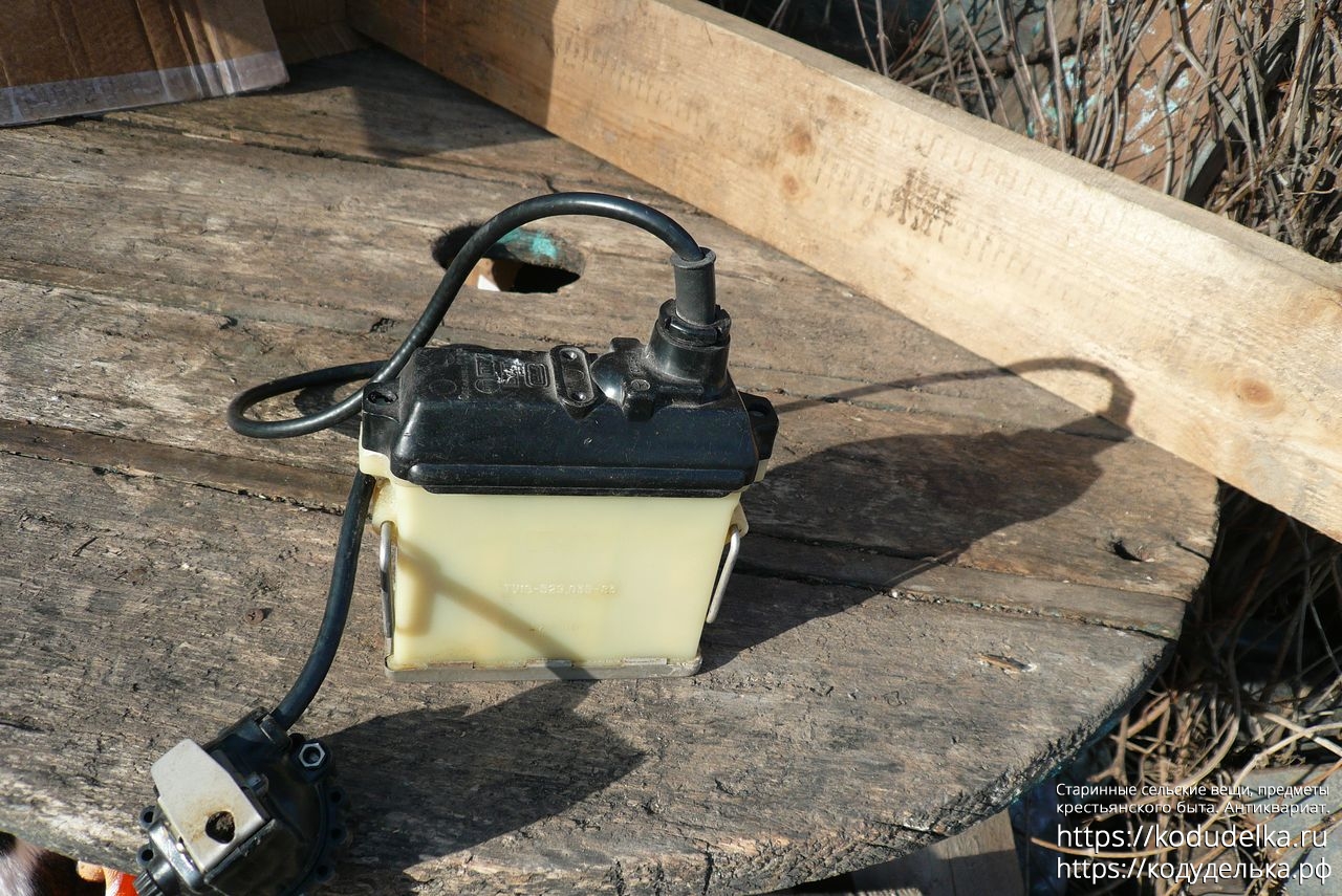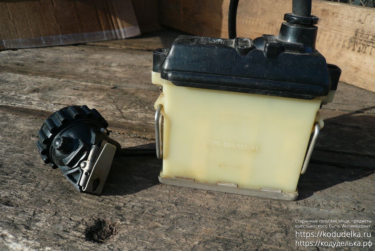 Состоит из тяжелой аккумуляторной батареи в корпусе и фары, соединенных гибким кабелем.