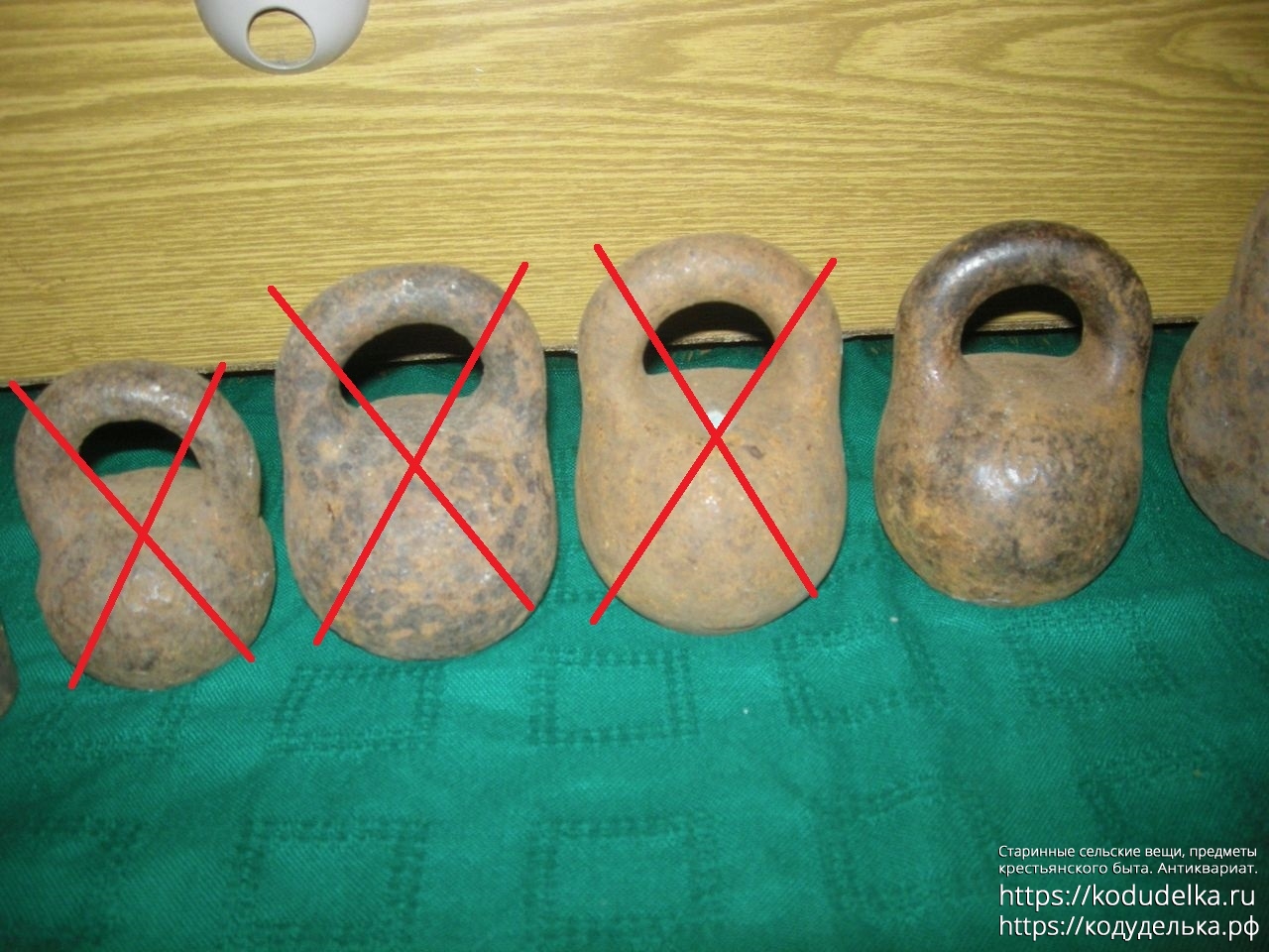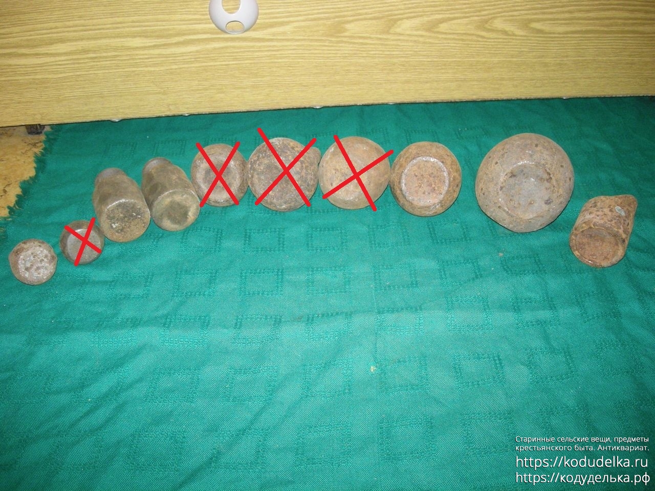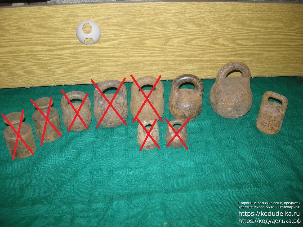 4) На 1 кг ржавая нетипичной формы (крайняя справа на общем фото)  клейма 1 кг и ШЗ — 300 руб.