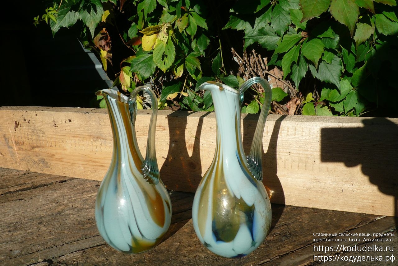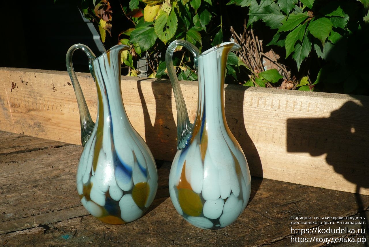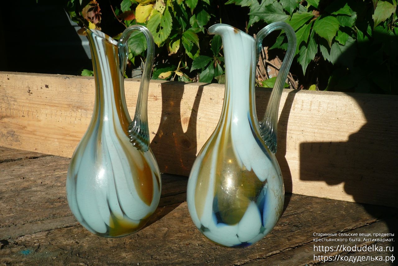 При первичном осмотре — без сколов и трещин, КРОМЕ: у того, который НЕ испачкан, есть скол или заводской дефект изготовления, в месте верхнего крепления ручки к телу кувшина, изнутри внизу.