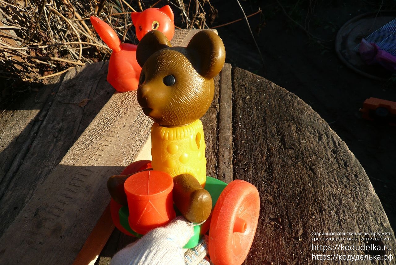 Мишка барабанщик, каталка, механизм рабочий. Руки утрачены — 800 руб.