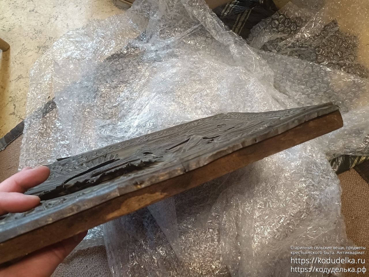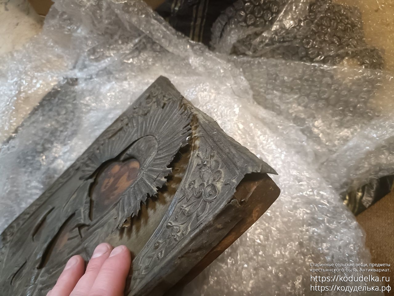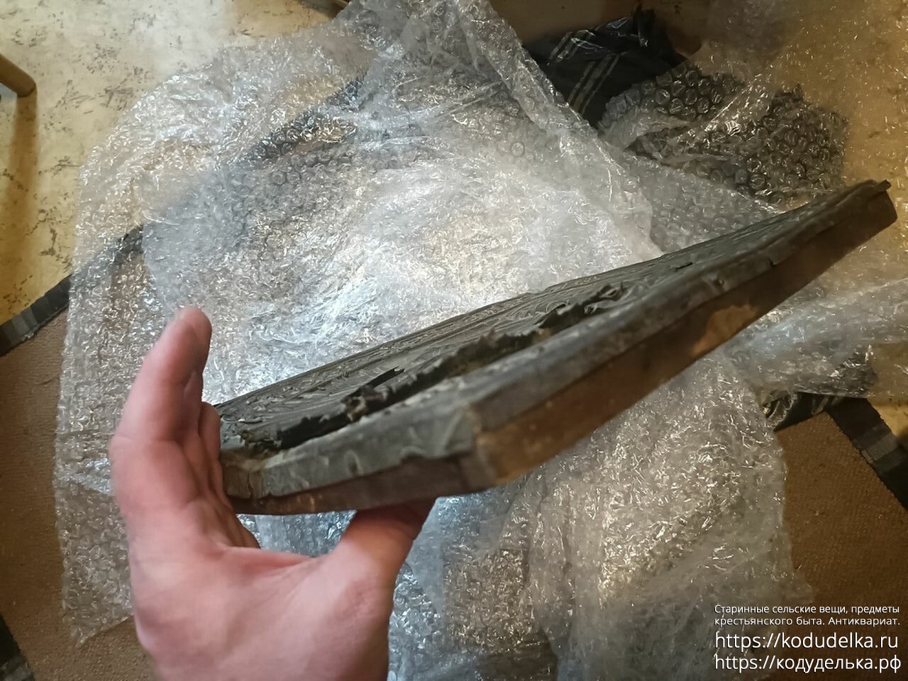 Икона без шпонок, доску повело «корытом» (+ ошиблись стороной написания, с точки зрения расположения волокон).