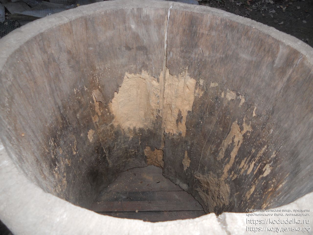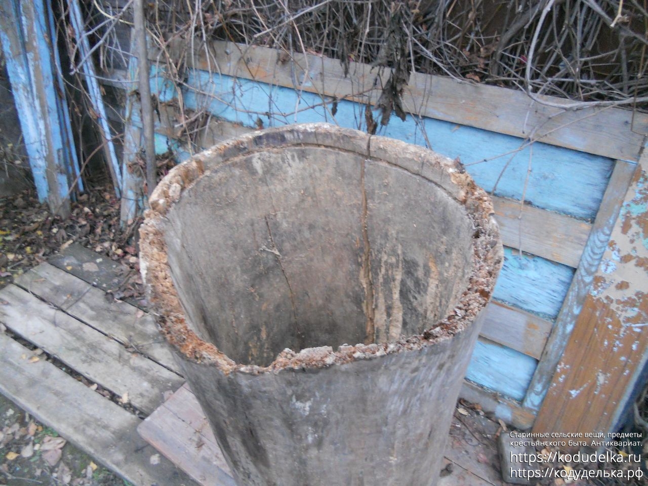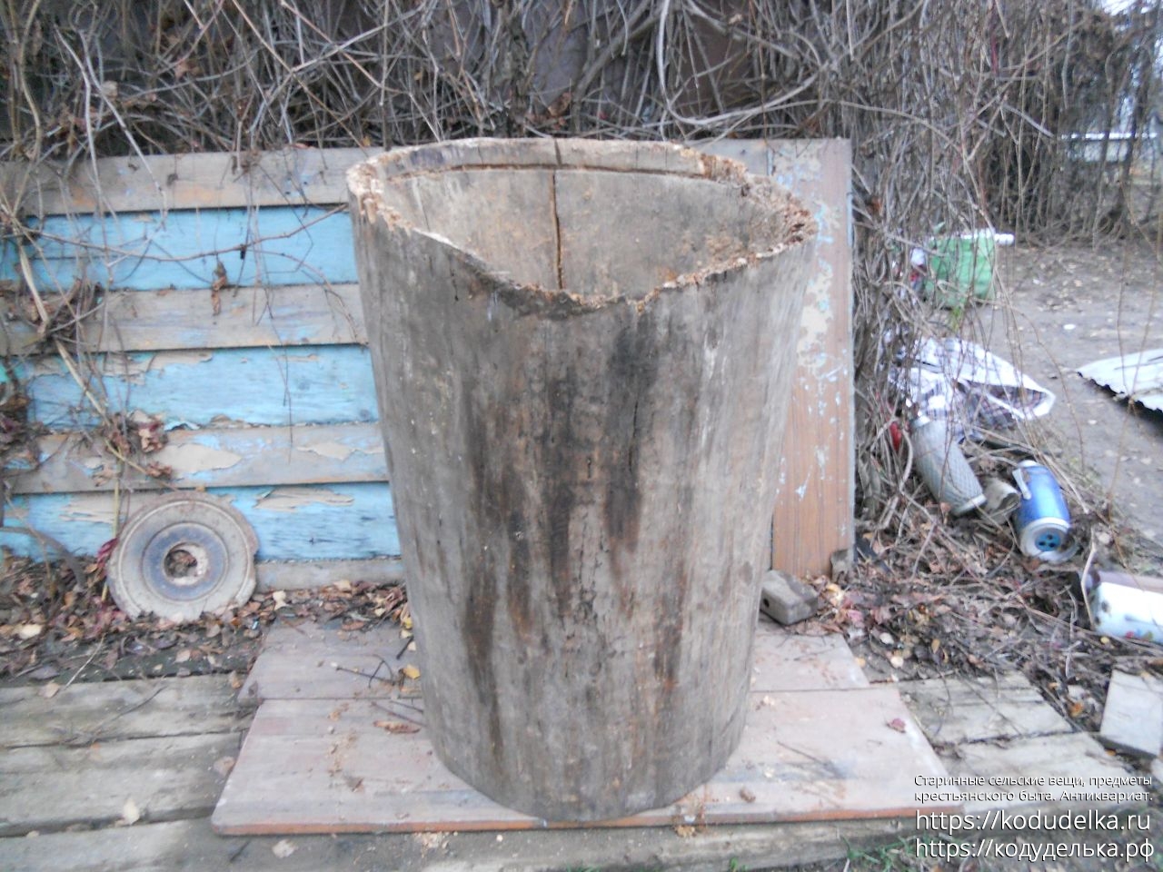 Большая цельная старинная кадушка из-под зерна, в неважном сохране.
