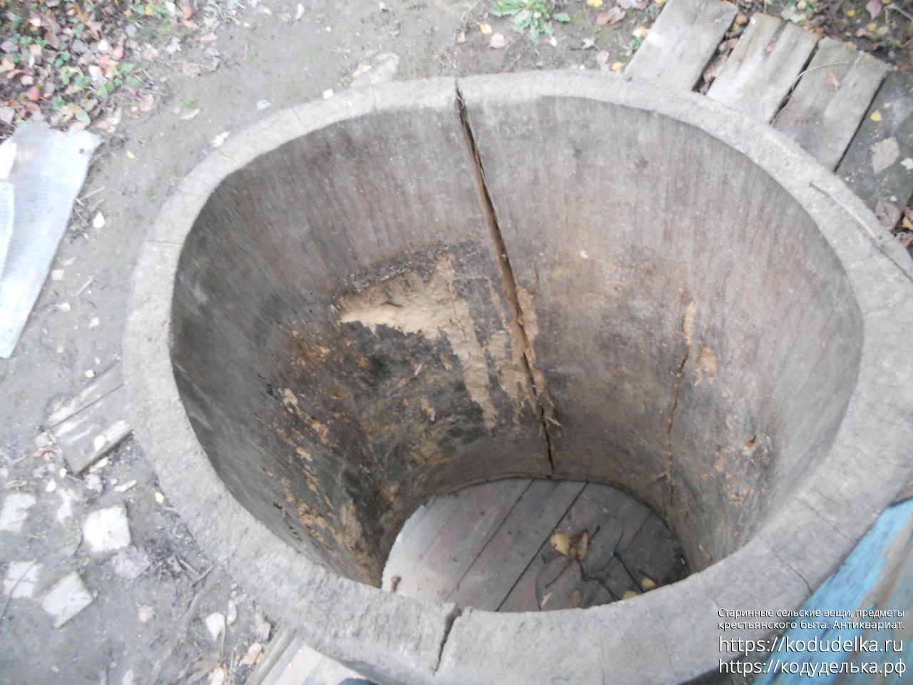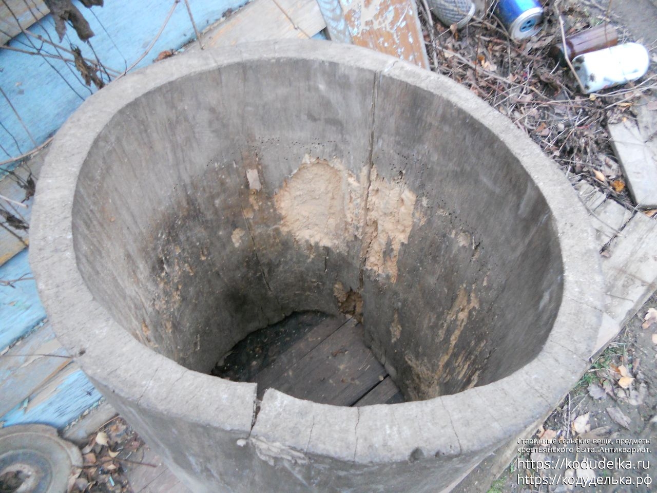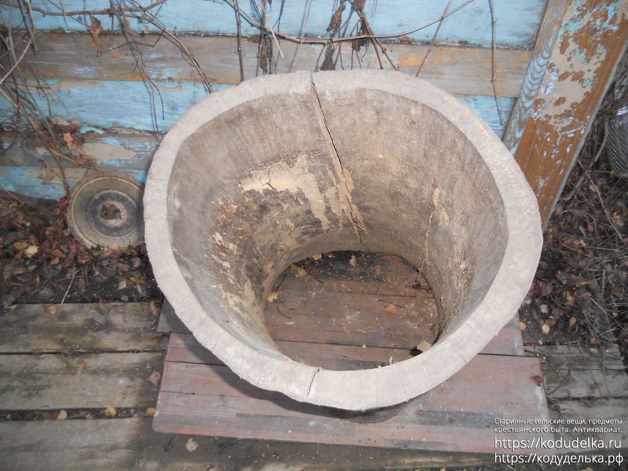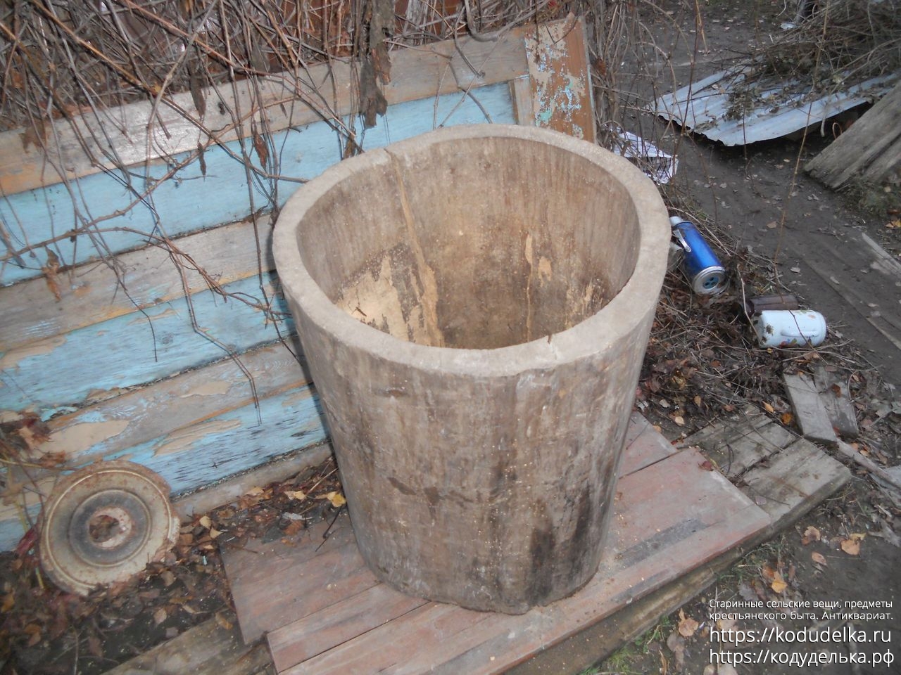 Большая цельная старинная кадушка из-под зерна, в неважном сохране.