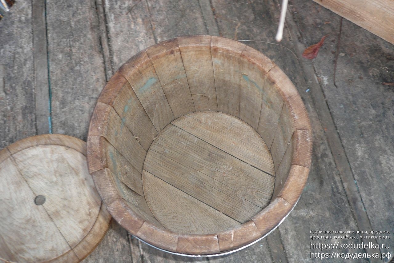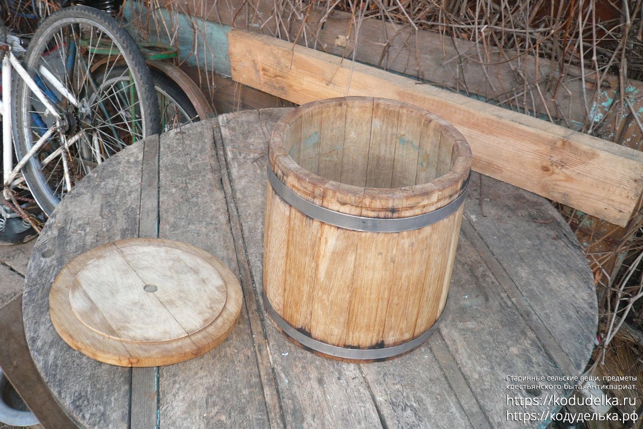 Объём — ориентировочно на 15 литров (это если считать по формуле цилиндра, визуально вряд ли больше 10 литров)