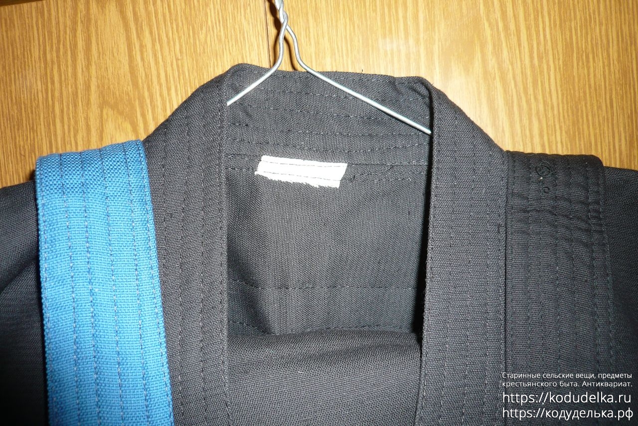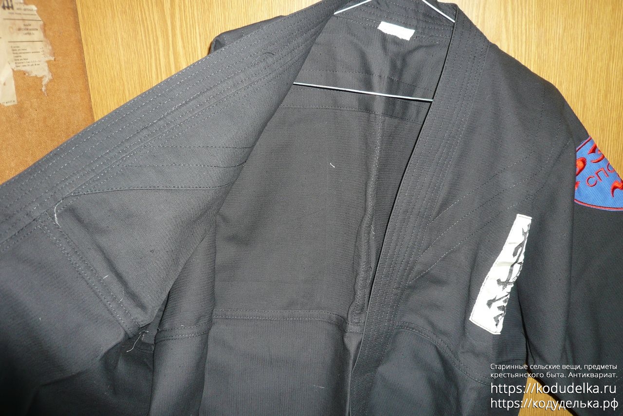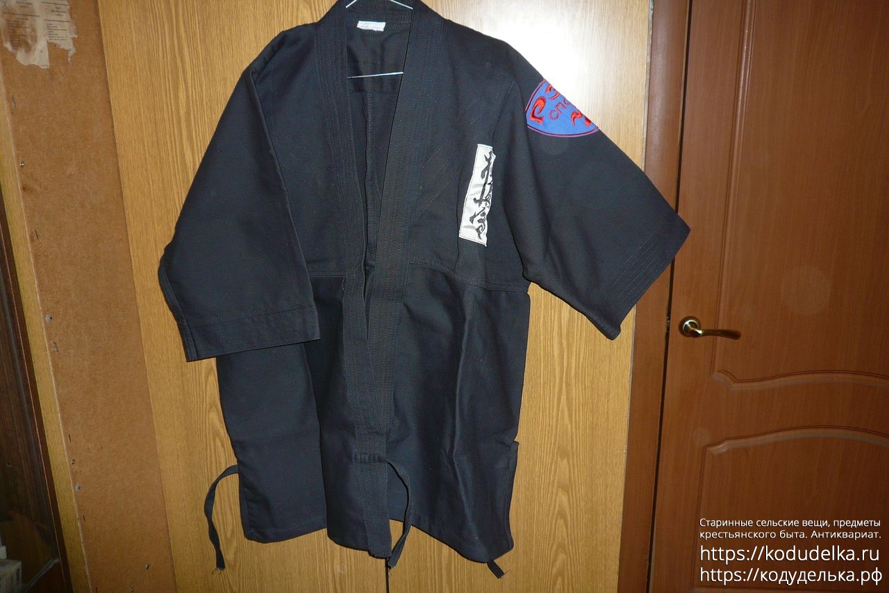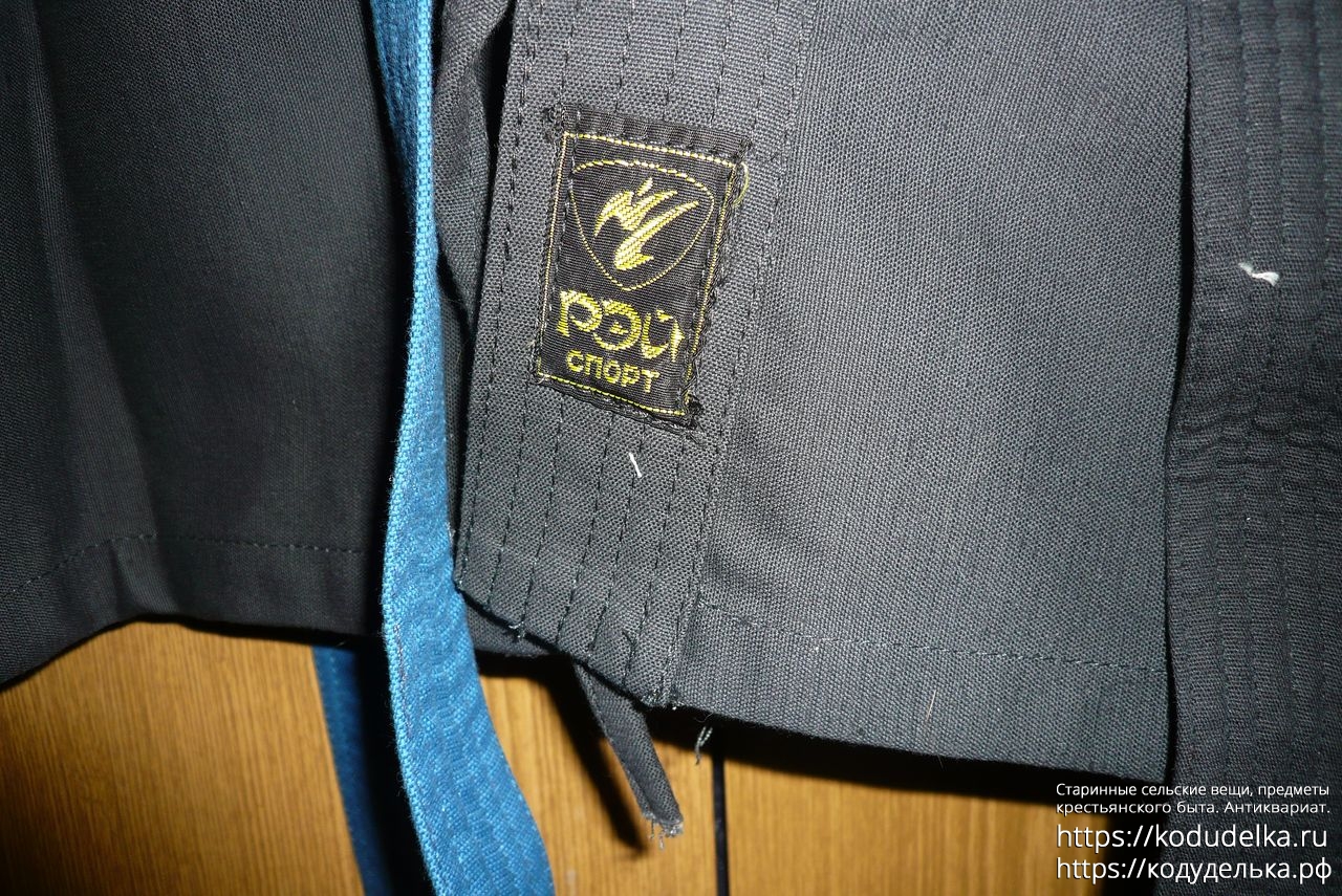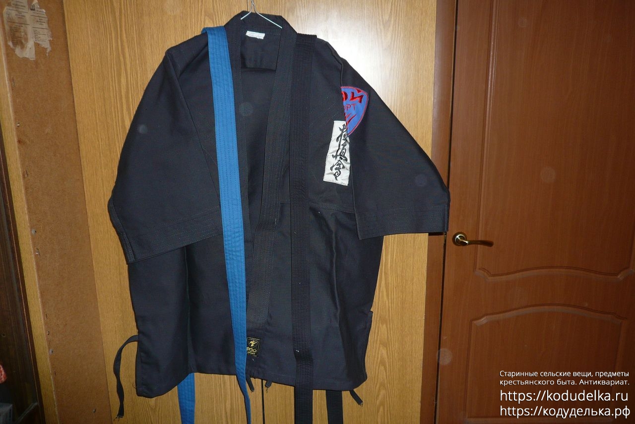 Кимоно Рей Спорт чёрного цвета, полный комплект: штаны, рубаха и пояс (пояса даже два, чёрного цвета и синего).
