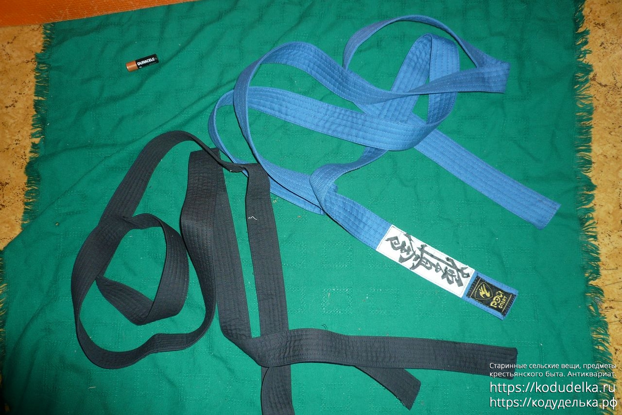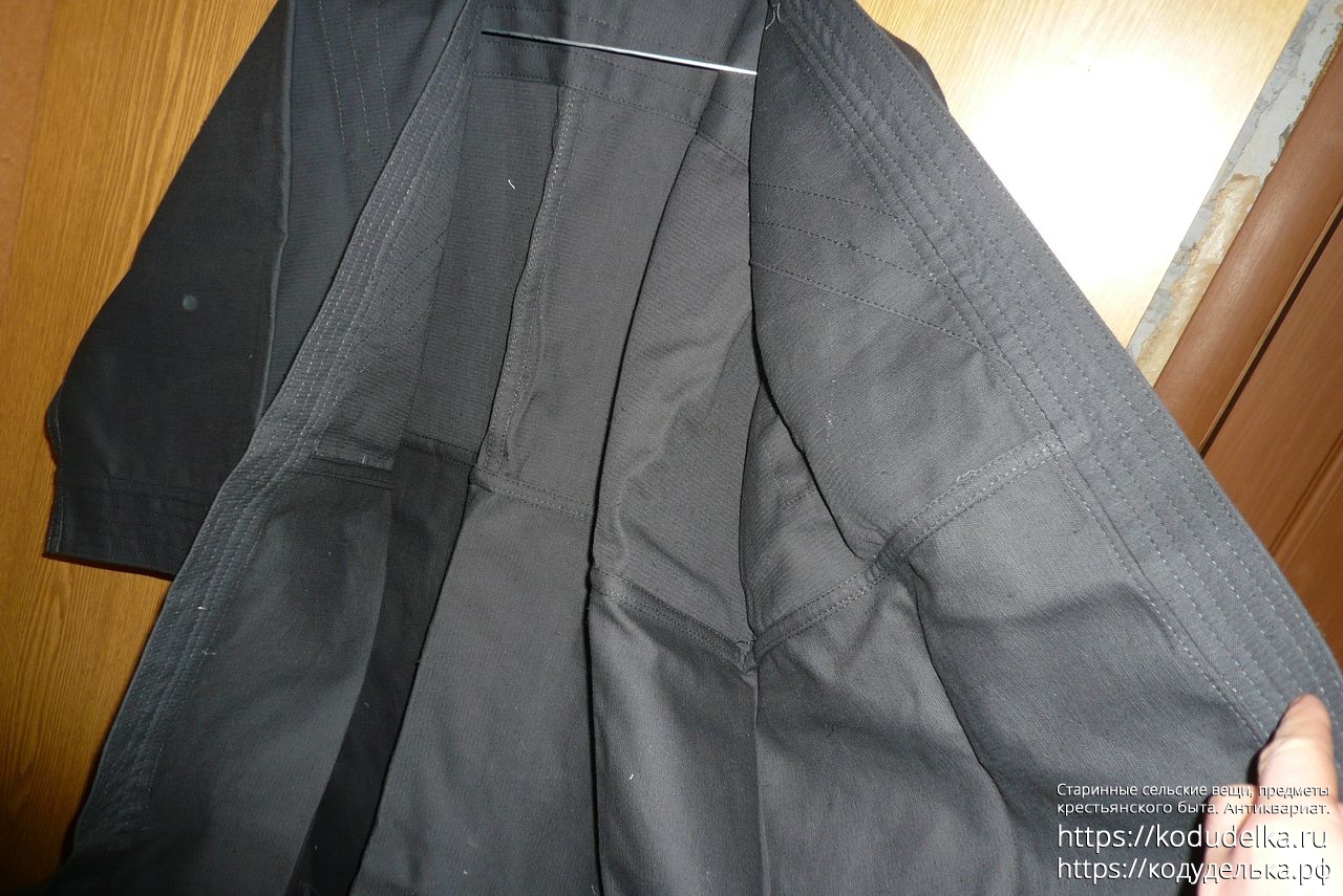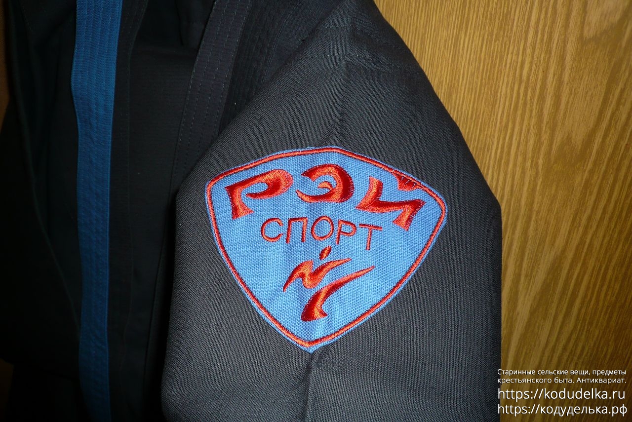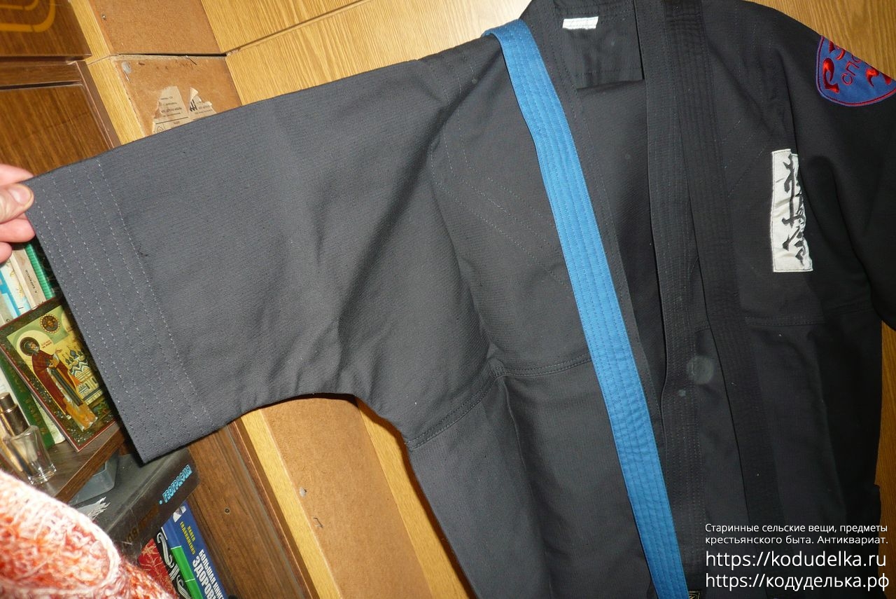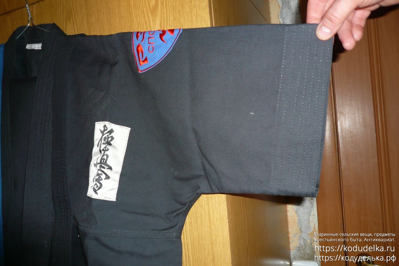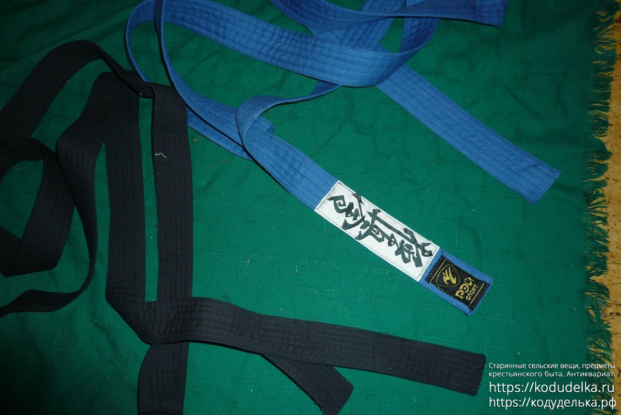 Кимоно Рей Спорт чёрного цвета, полный комплект: штаны, рубаха и пояс (пояса даже два, чёрного цвета и синего).