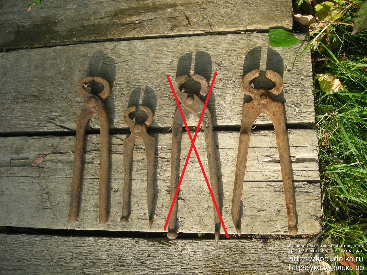 Кузнечный инструмент, ими обрезали лишнюю часть гвоздиков, вбитых в копыта, по сути — копытные клещи (определено одним из пользователей по фото).