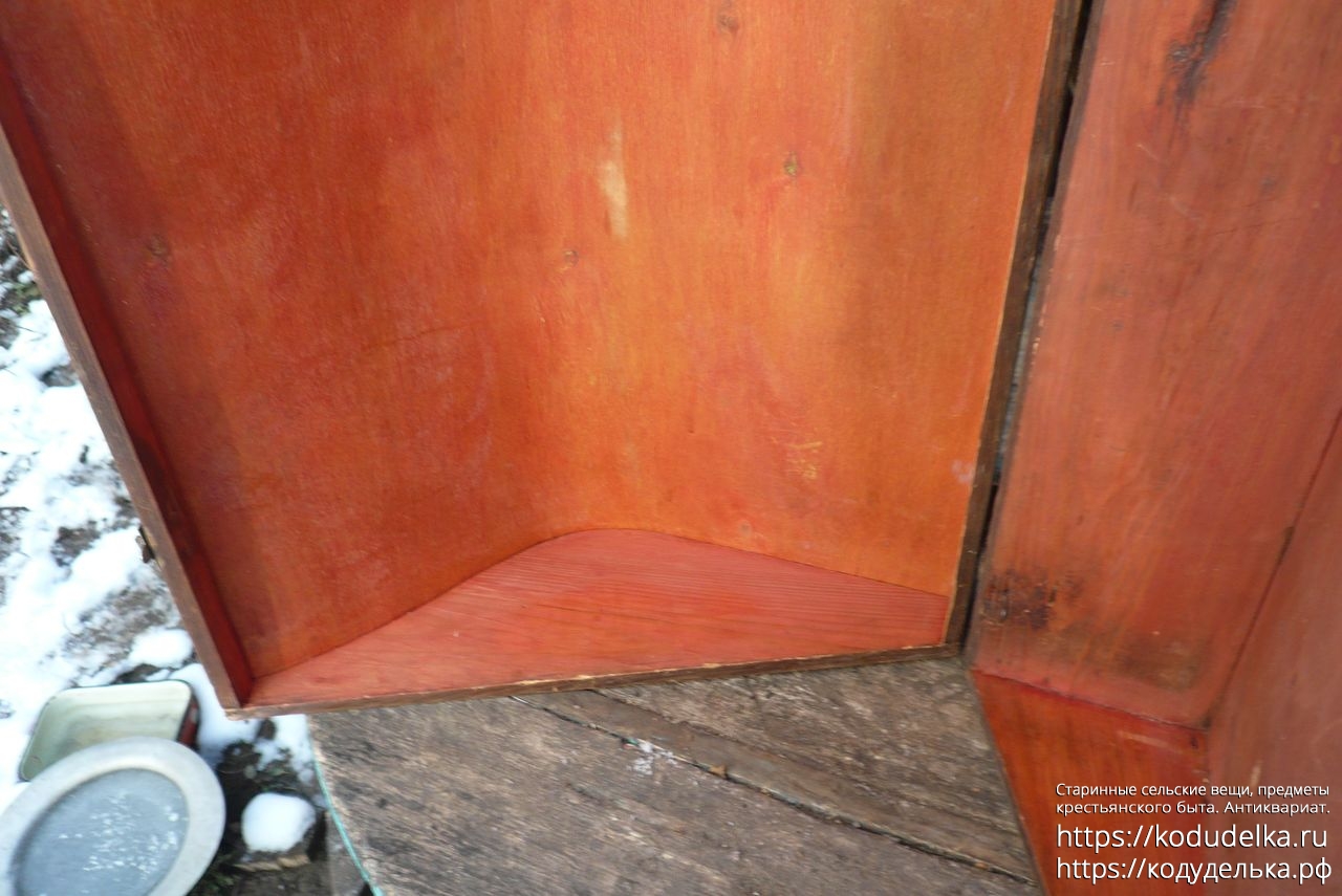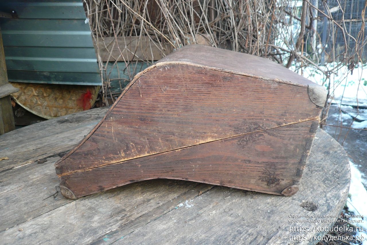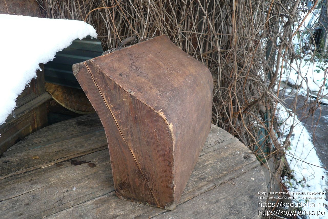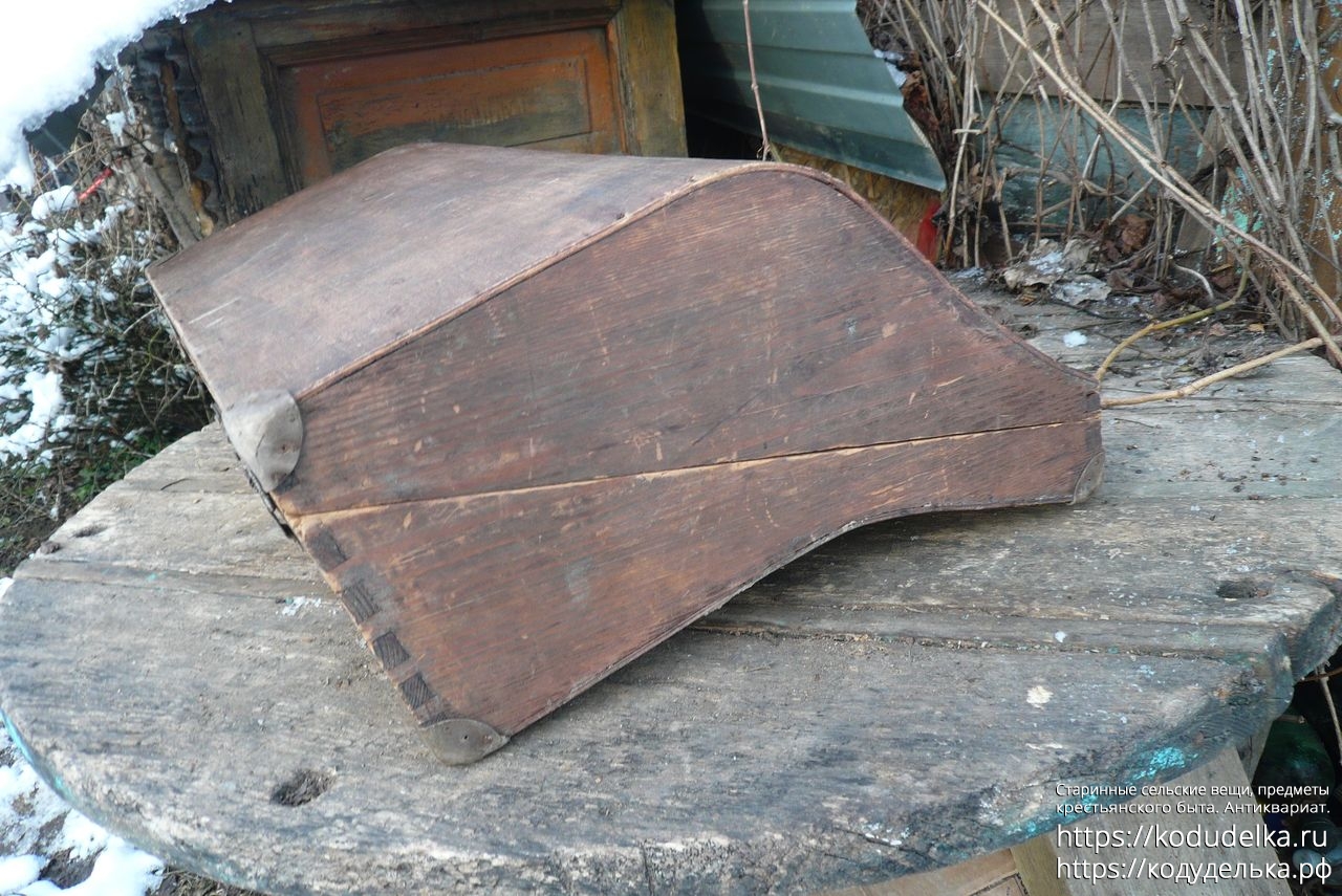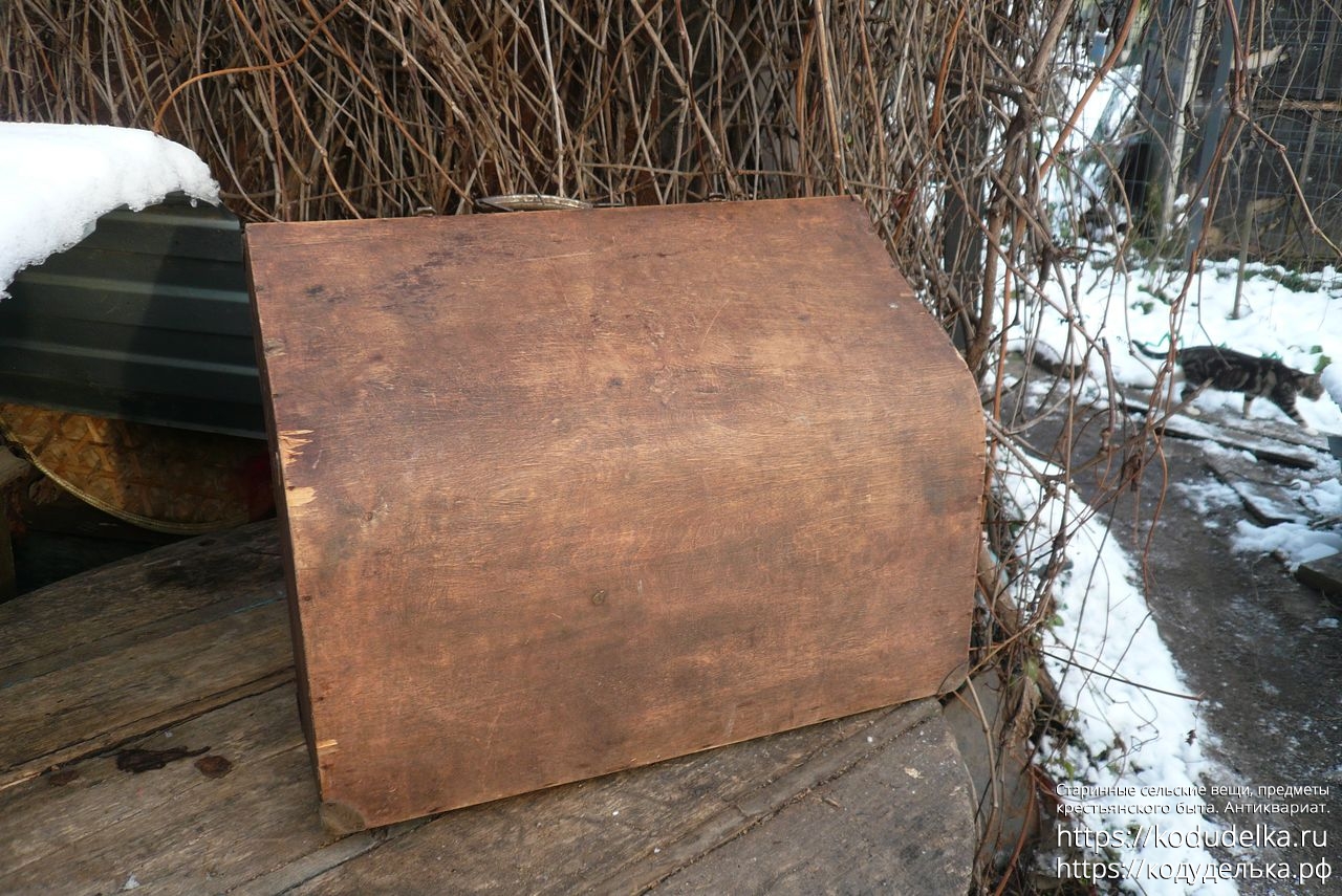 Старинный кофр — массив (пазы входят друг в друга, как скрещенные пальцы) — из-под музыкального инструмента — предположительно аккордеона (либо же для баяна, гармонь, судя по строению, исключается).