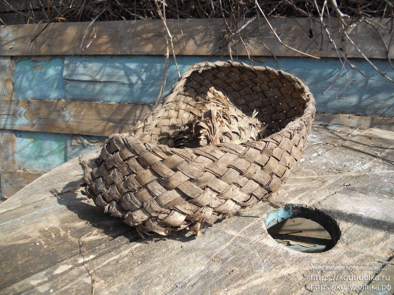 Старинный плетёный короб из бересты.
