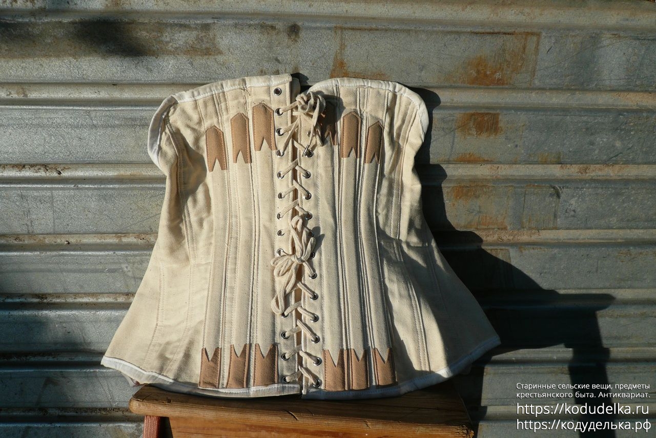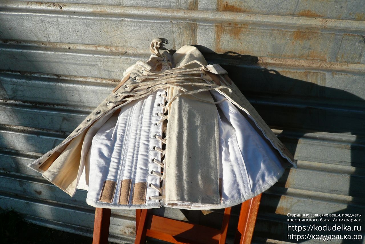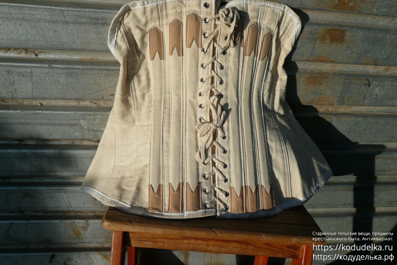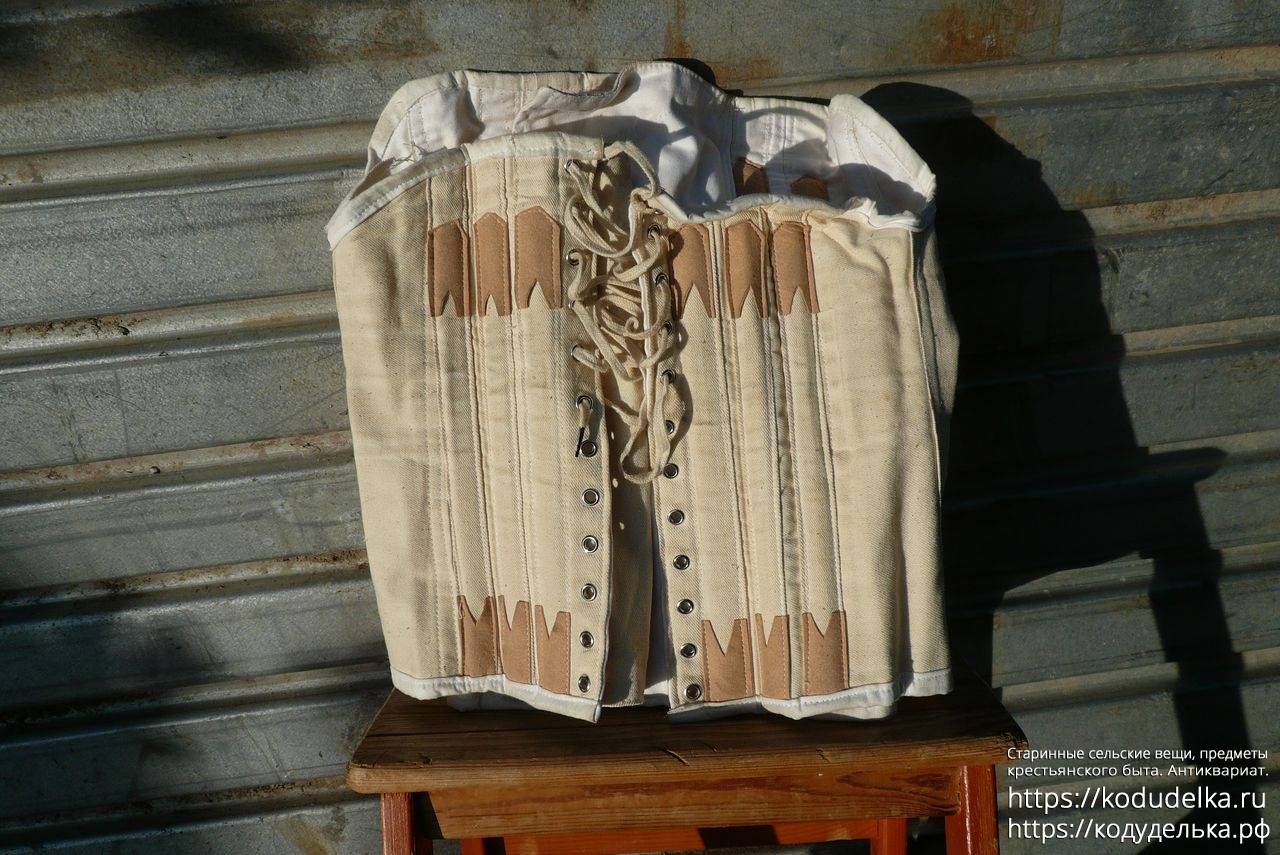 Бежевый (с белым внутри) корсет из СССР (?) на шнуровке, б/у (?), в сравнительно хорошем состоянии.