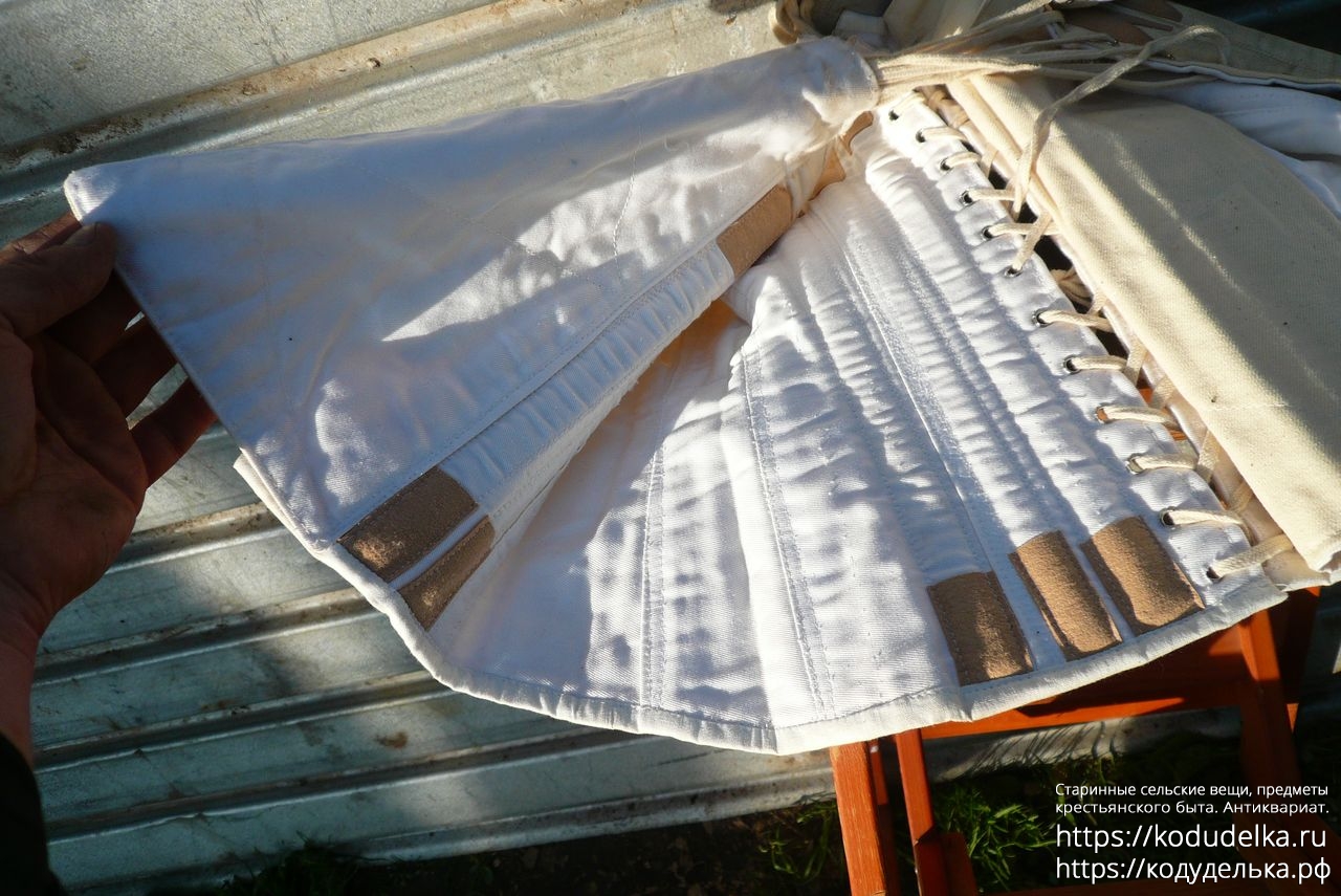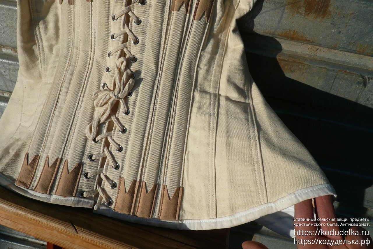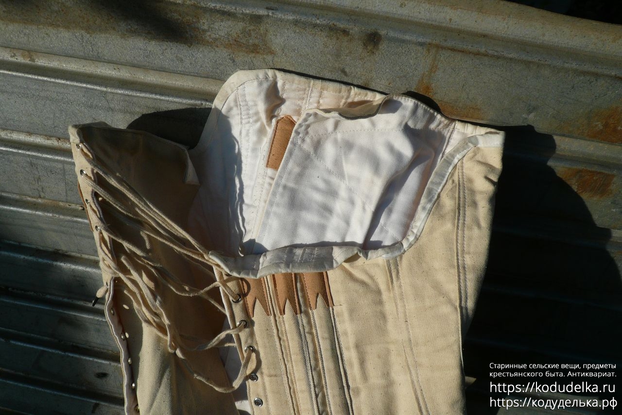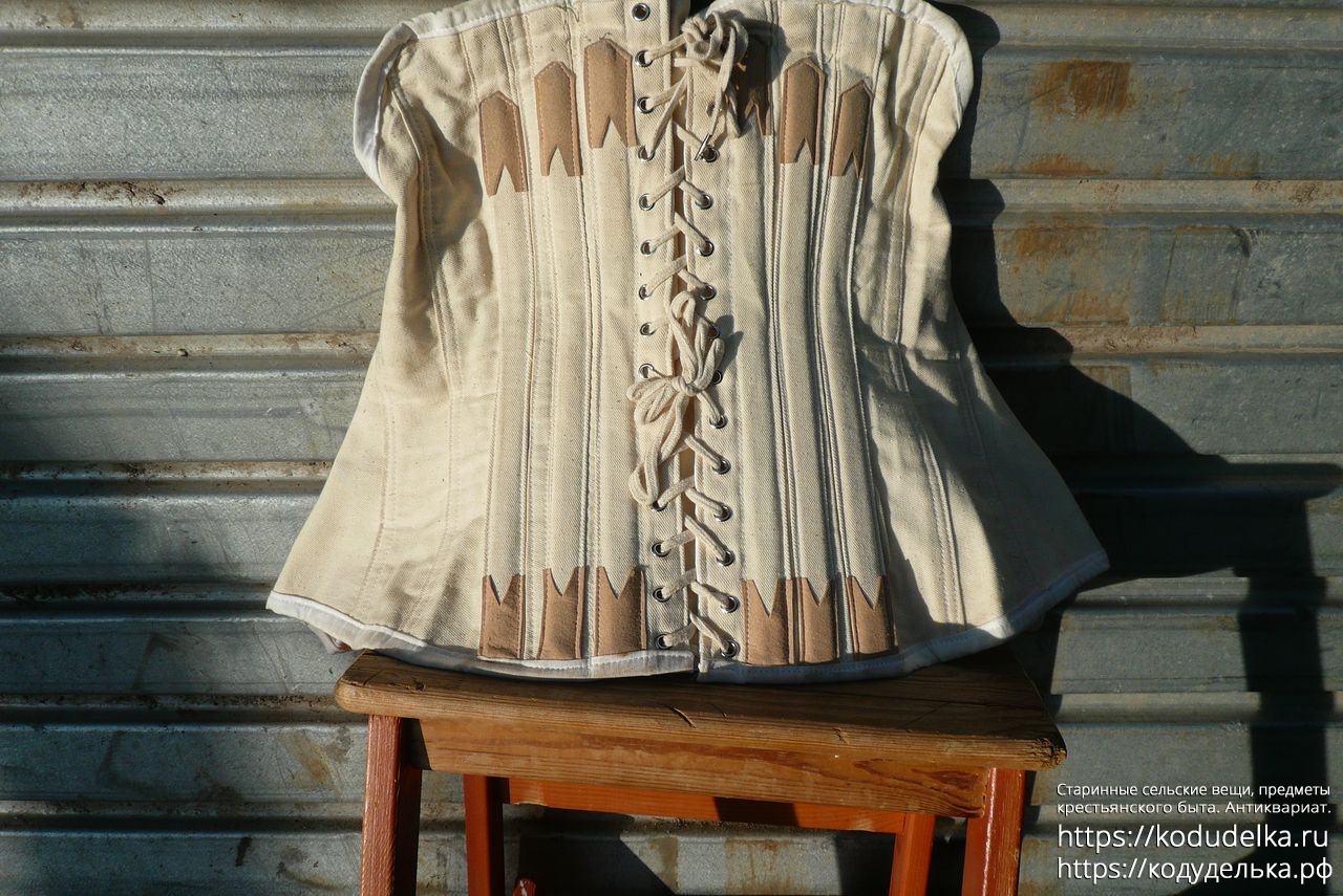 Бежевый (с белым внутри) корсет из СССР (?) на шнуровке, б/у (?), в сравнительно хорошем состоянии.