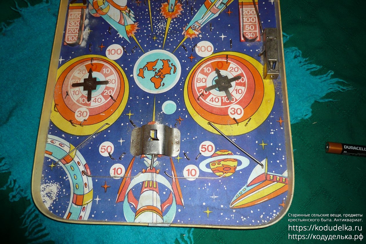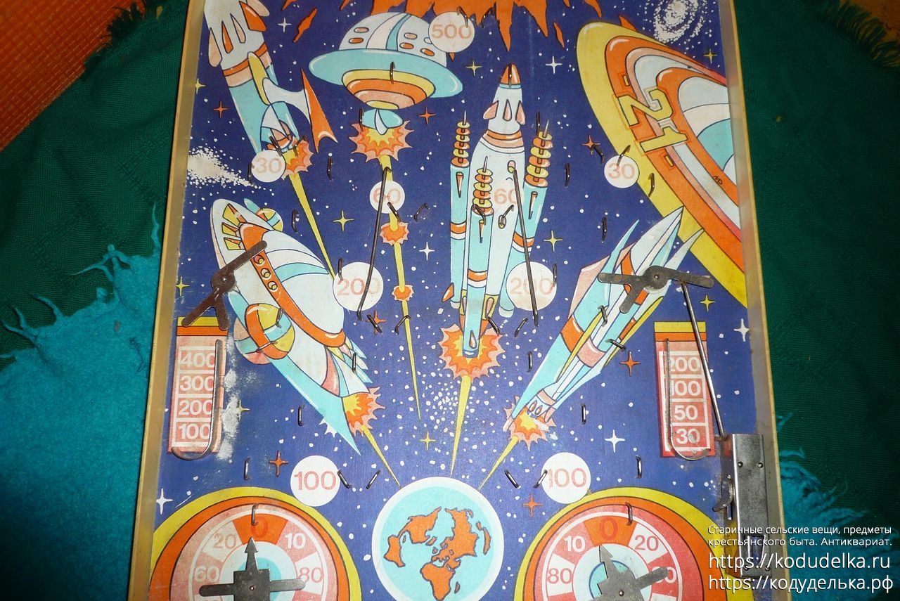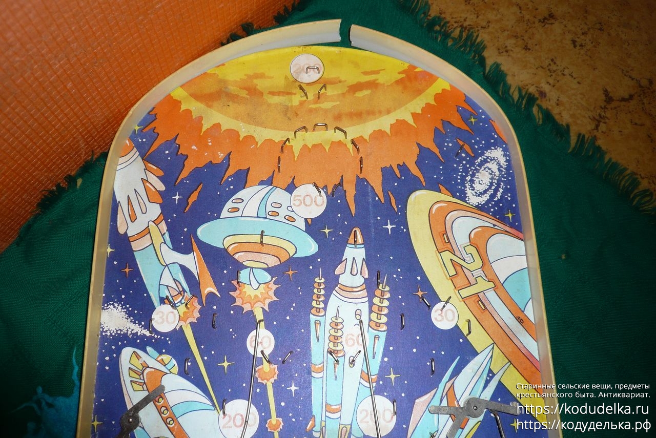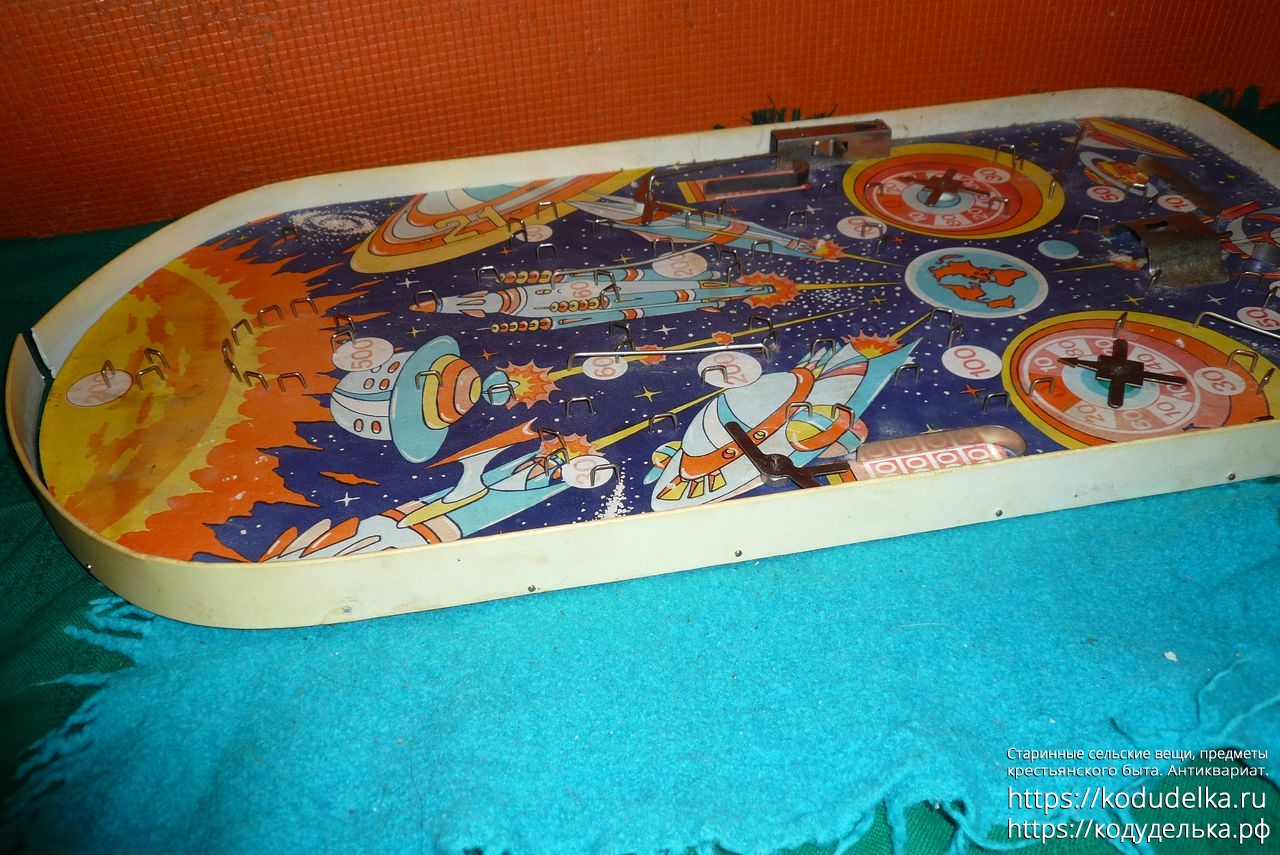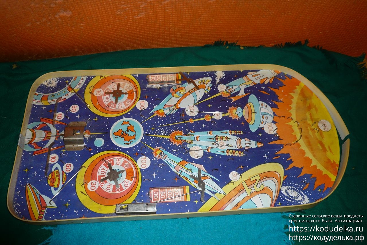Винтажная настольная игра в стиле пинбола, предположительно под названием «Космический бильярд», настольная игра с шариком.