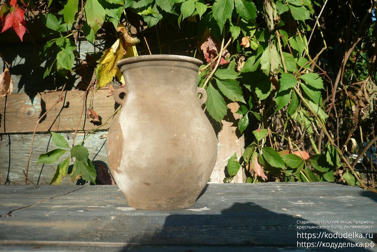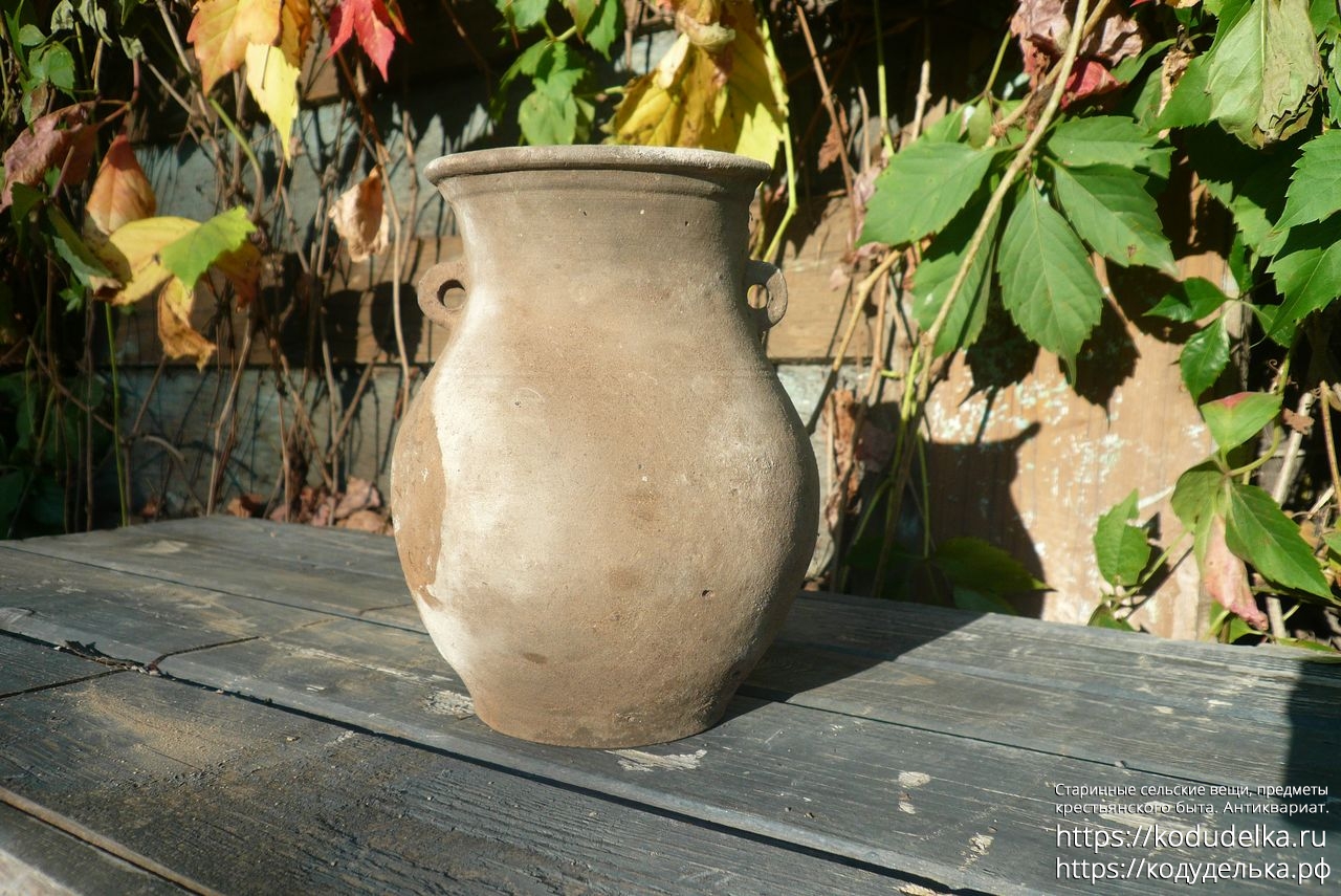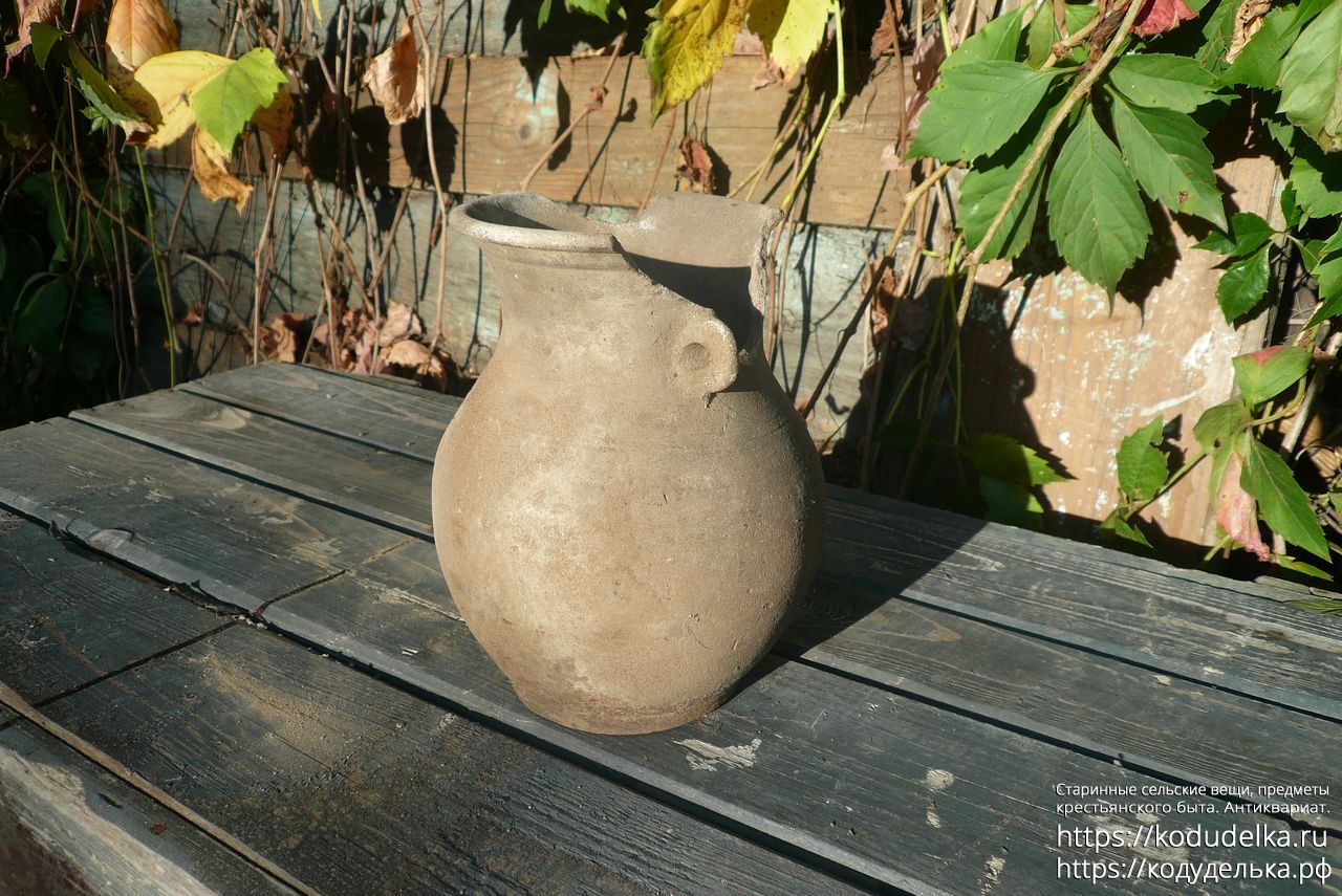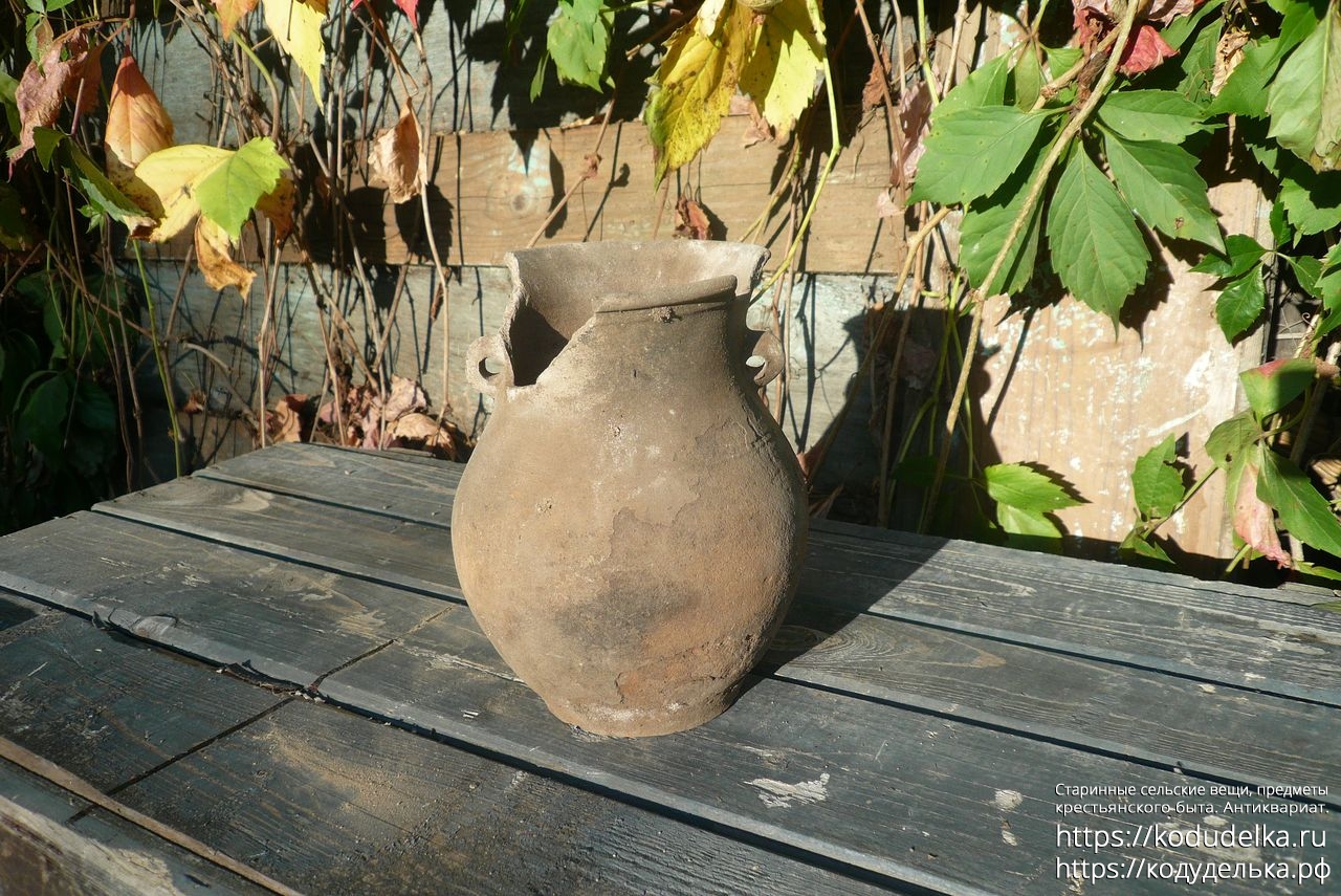 Крынка с ручками (кувшин? ваза?), с существенными сколами по ободку (на фото), с двумя малыми ручками-«ушками».