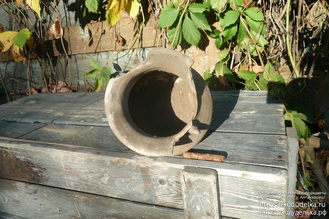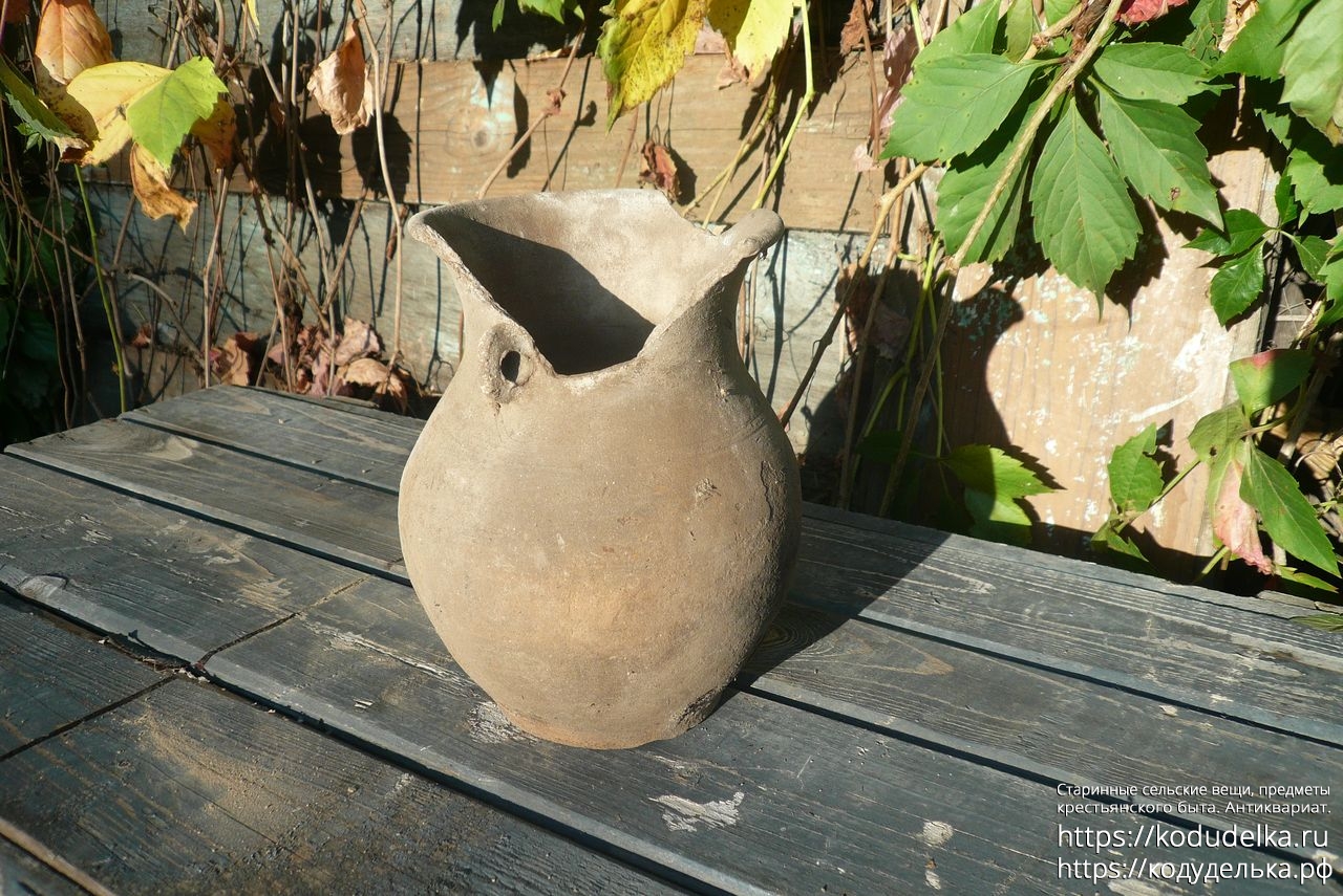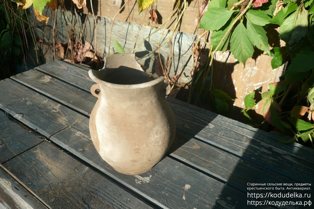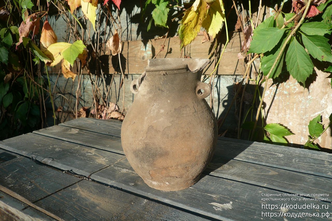 Крынка с ручками (кувшин? ваза?), с существенными сколами по ободку (на фото), с двумя малыми ручками-«ушками».