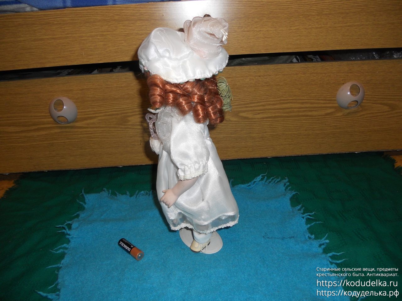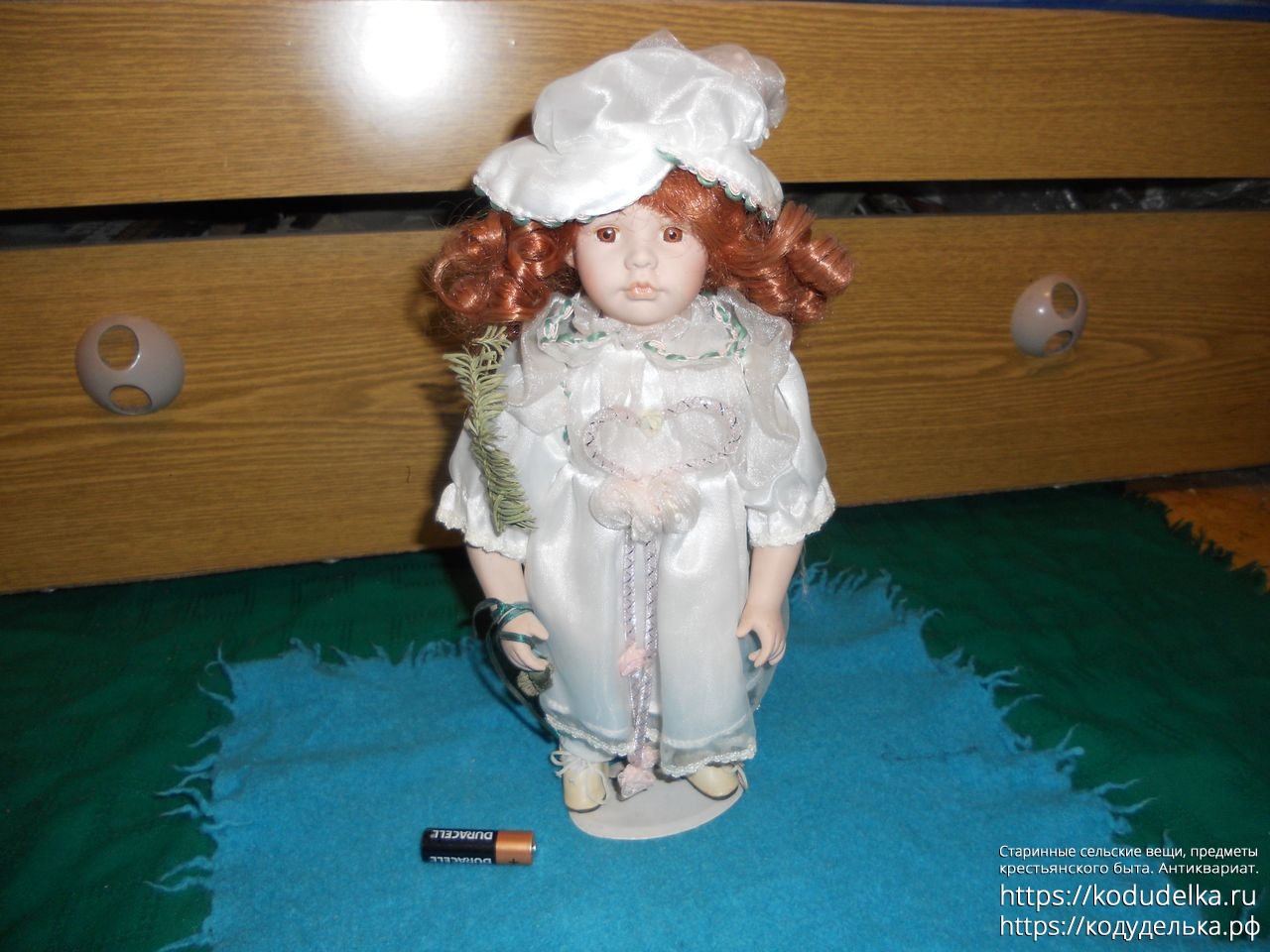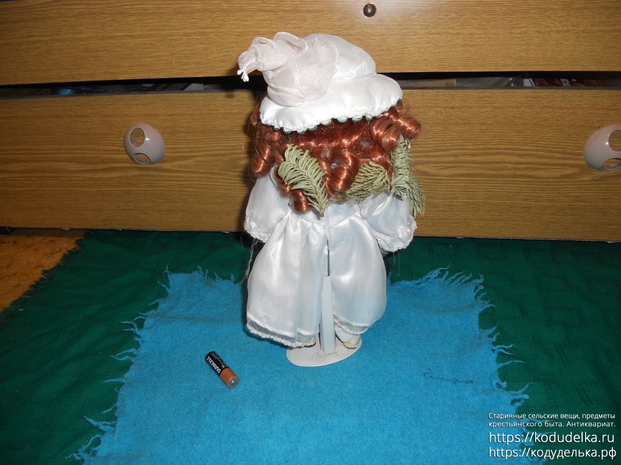 Высота с подставкой — 33 см со шляпой, 31 см. по волосы без шляпы.