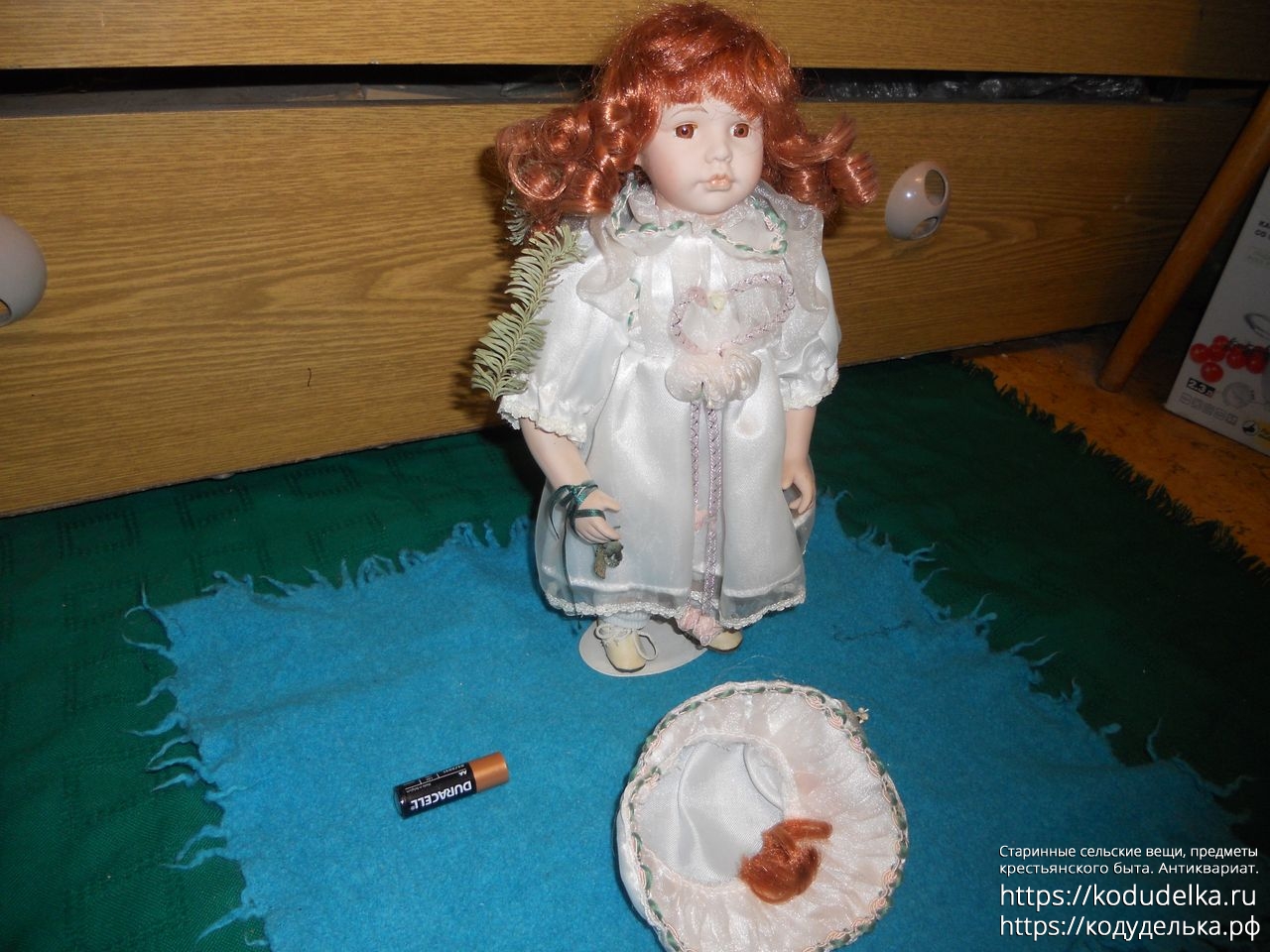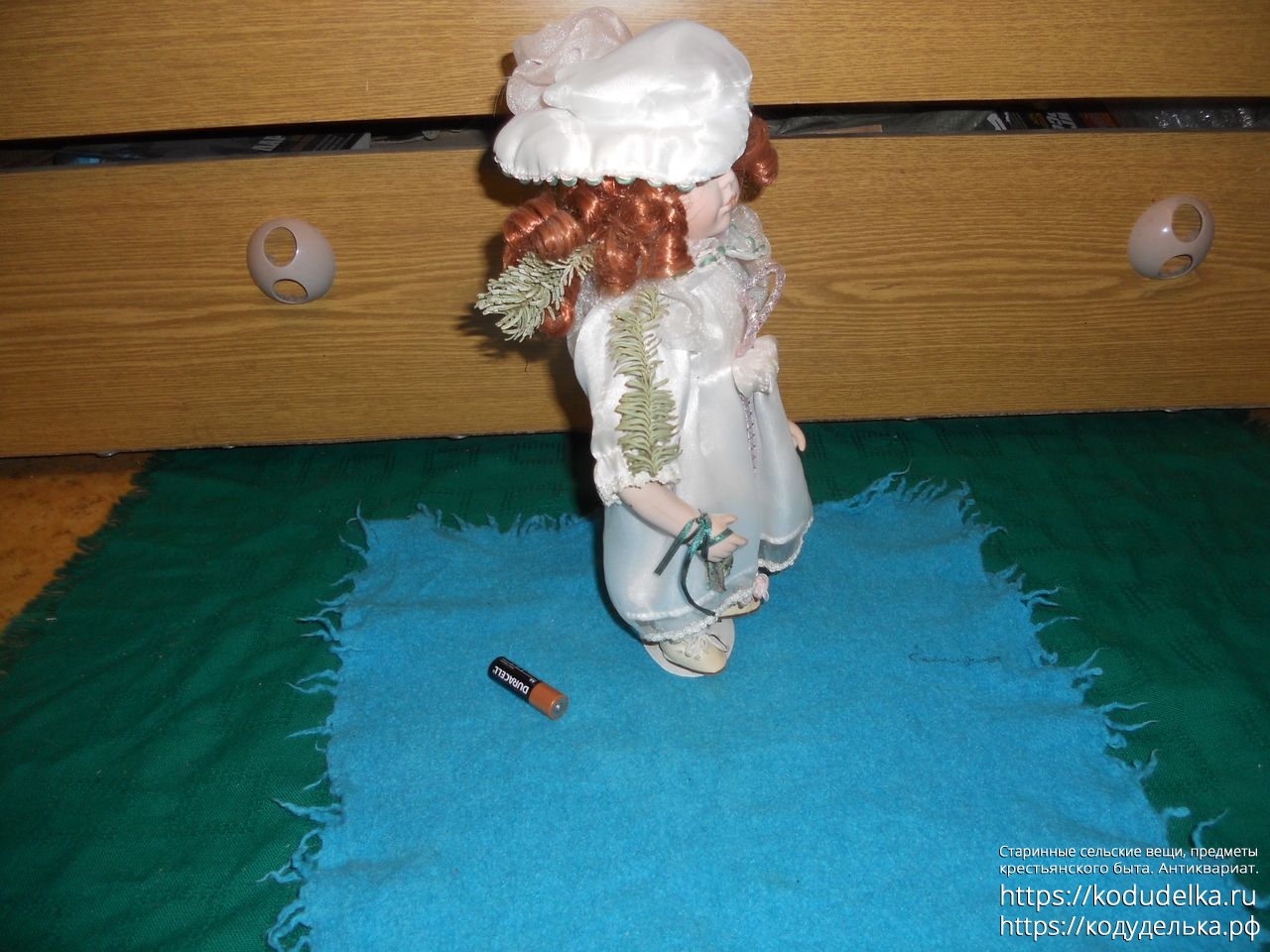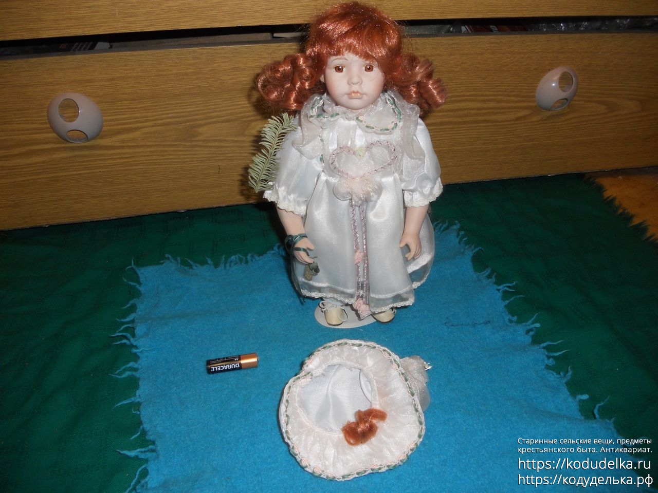 Высота с подставкой — 33 см со шляпой, 31 см. по волосы без шляпы.