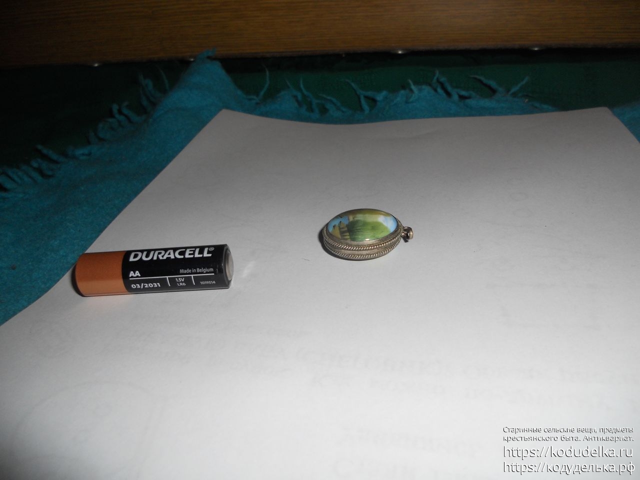 Эмаль (финифть) при первичном осмотре — без трещин, сколов и царапин, но следует учитывать, что я не являюсь специалистом по финифти и не могу профессионально оценить состояние данного кулона.