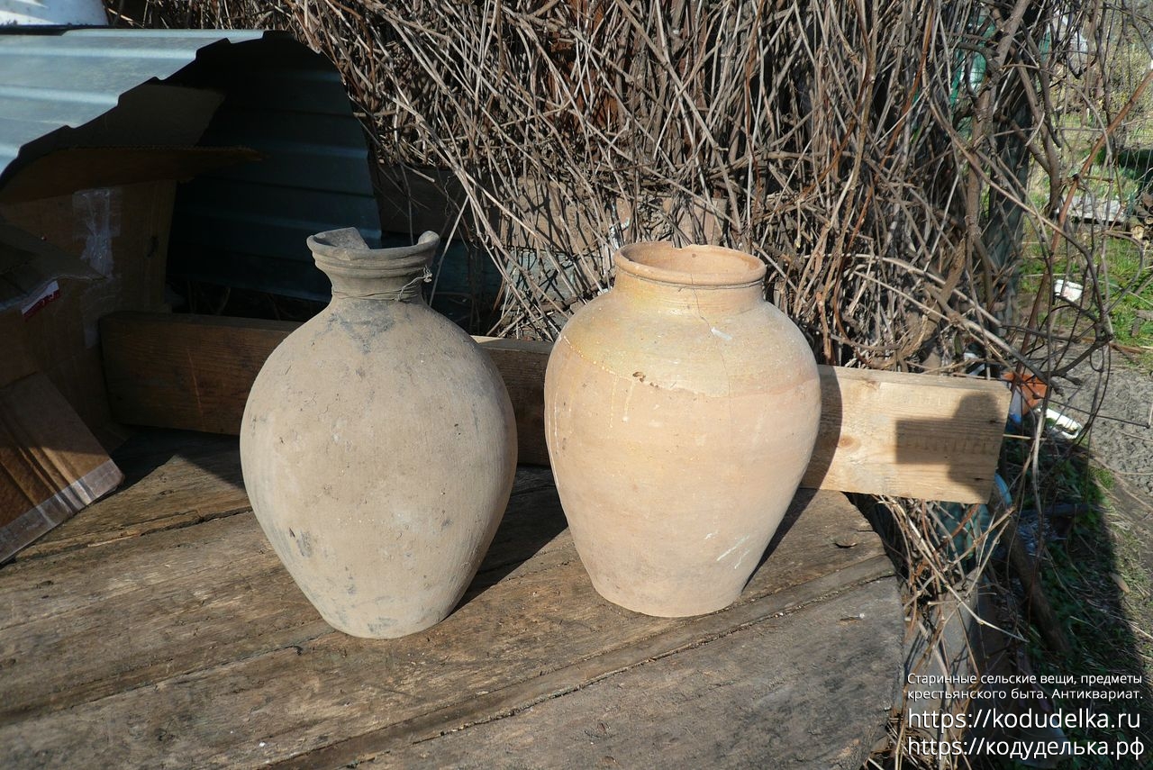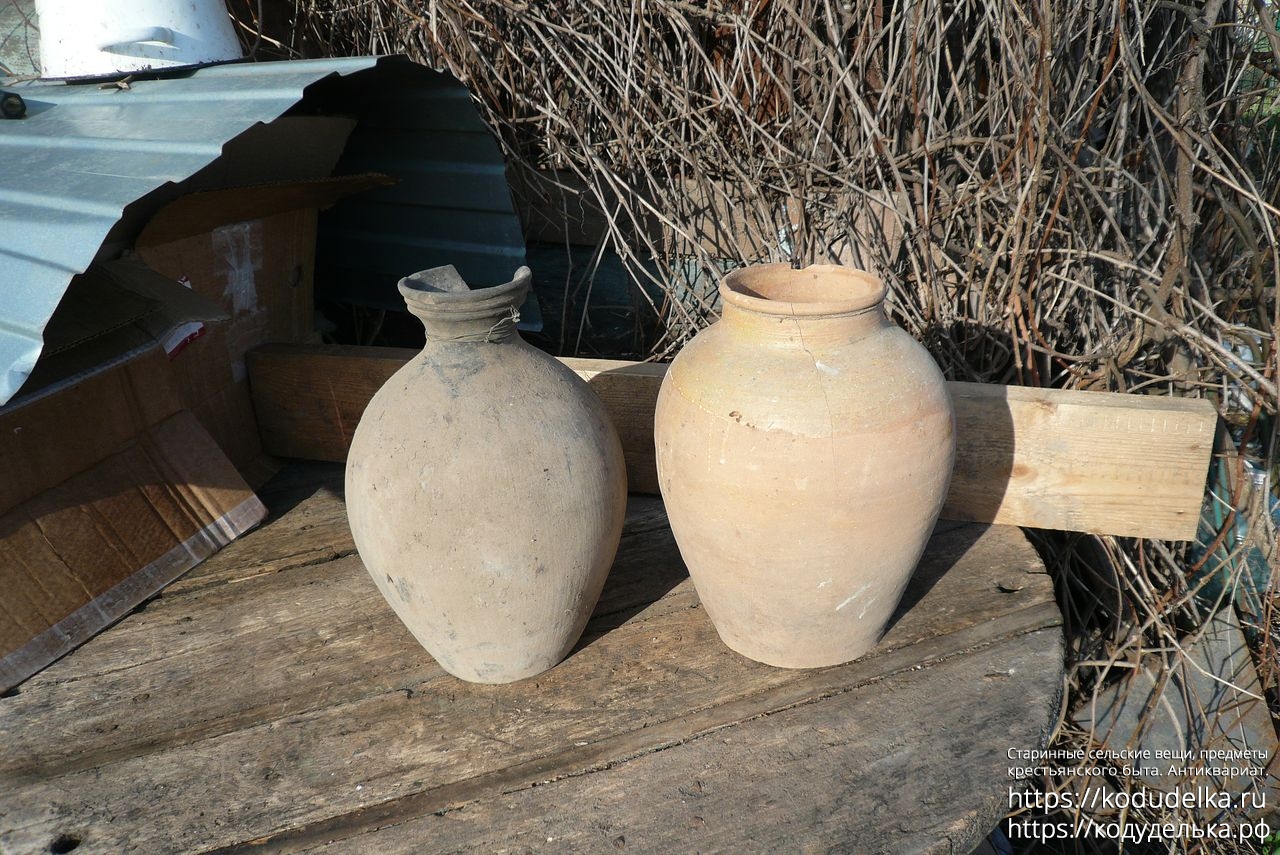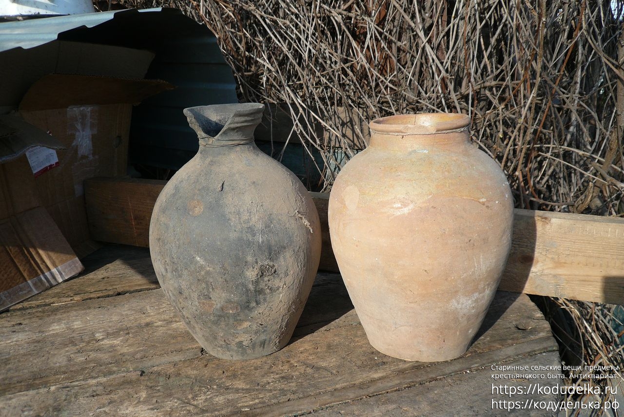 Большие фактурные кувшины (вазы) из светлой и чёрной глины.
