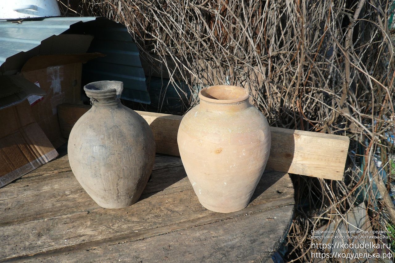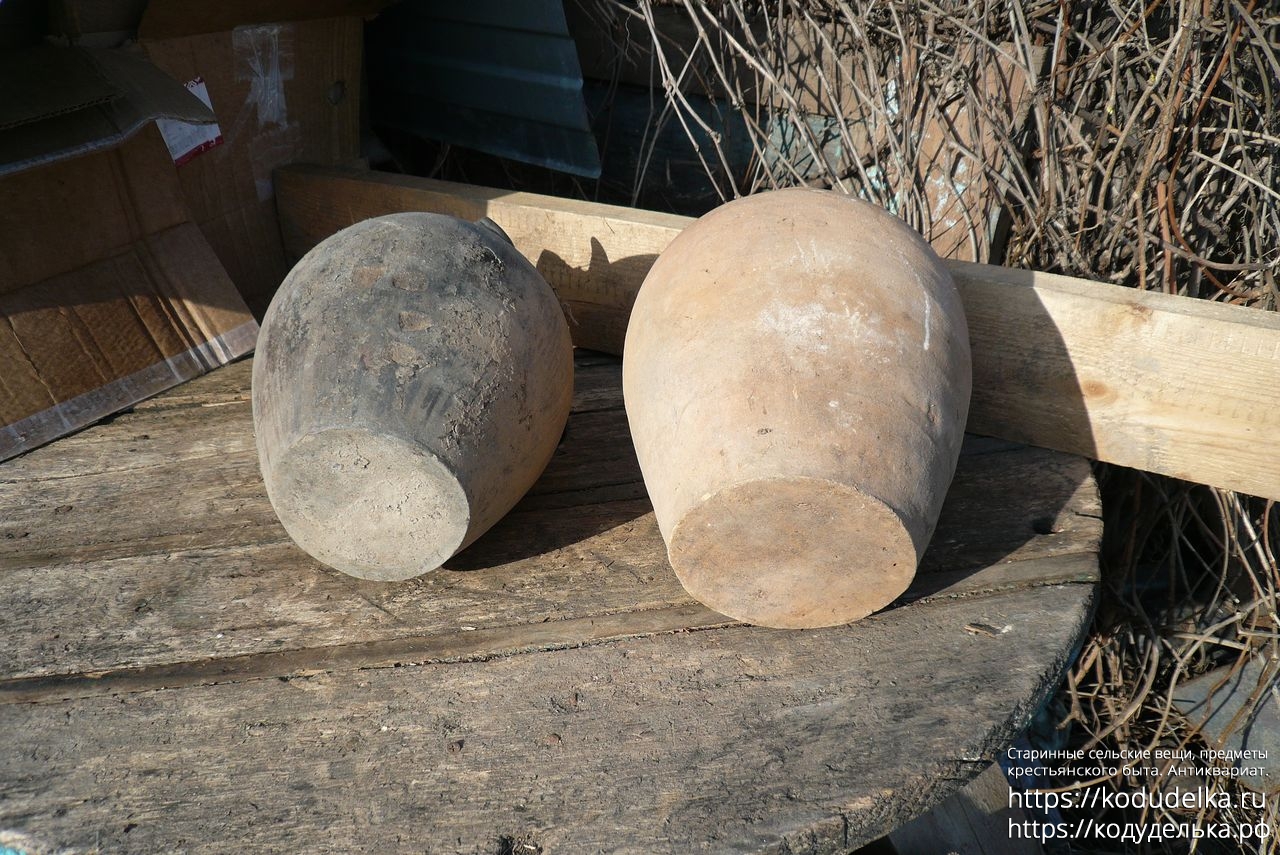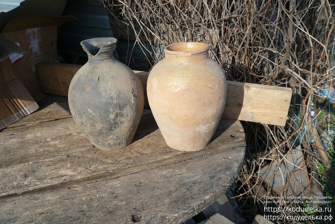 Большие фактурные кувшины (вазы) из светлой и чёрной глины.