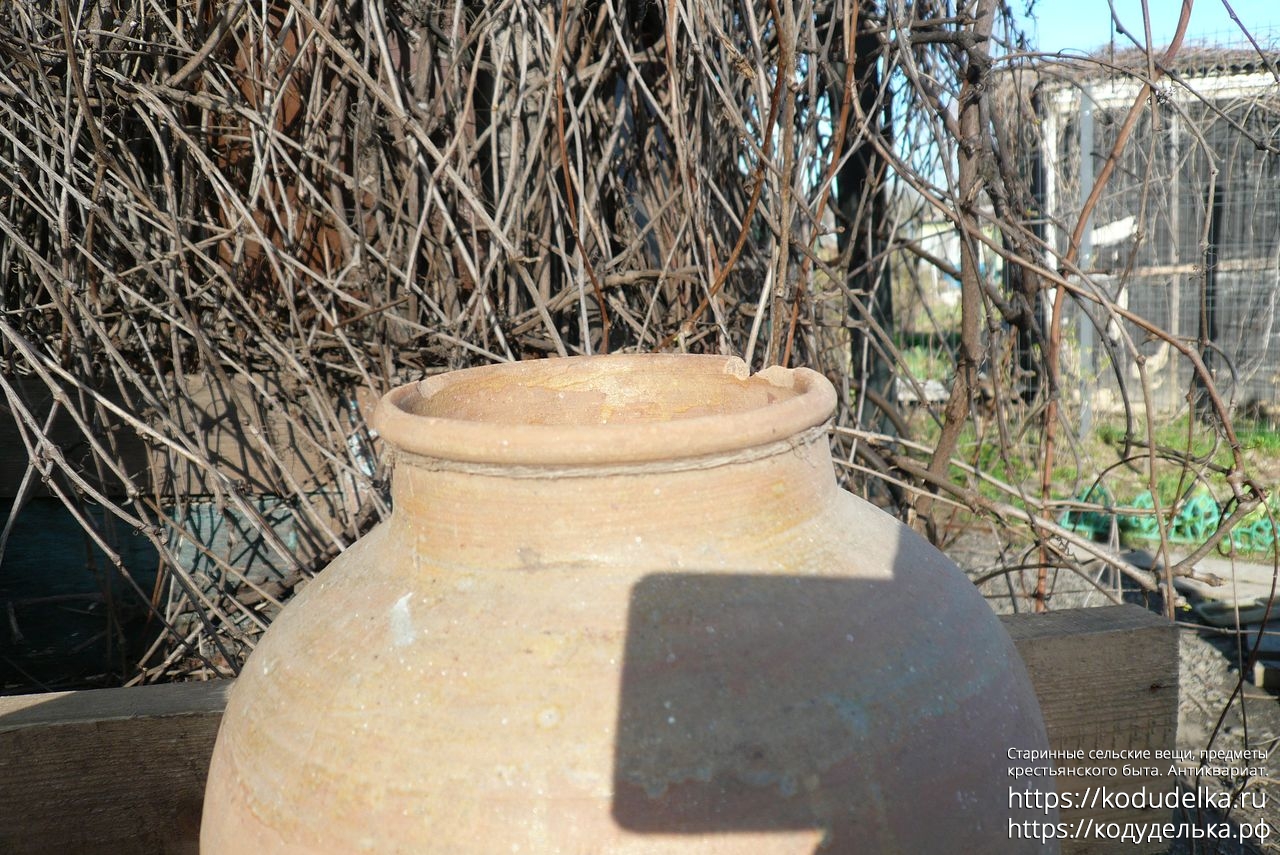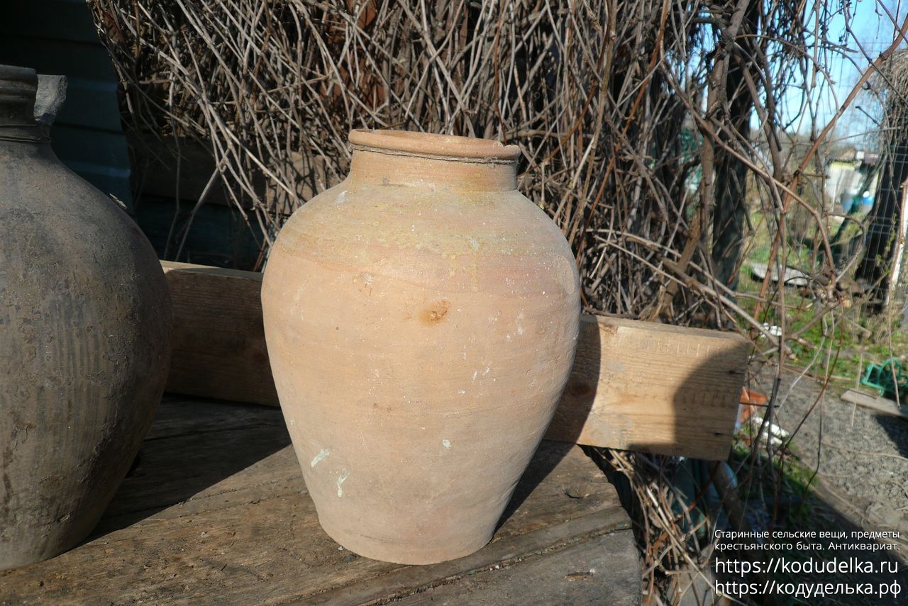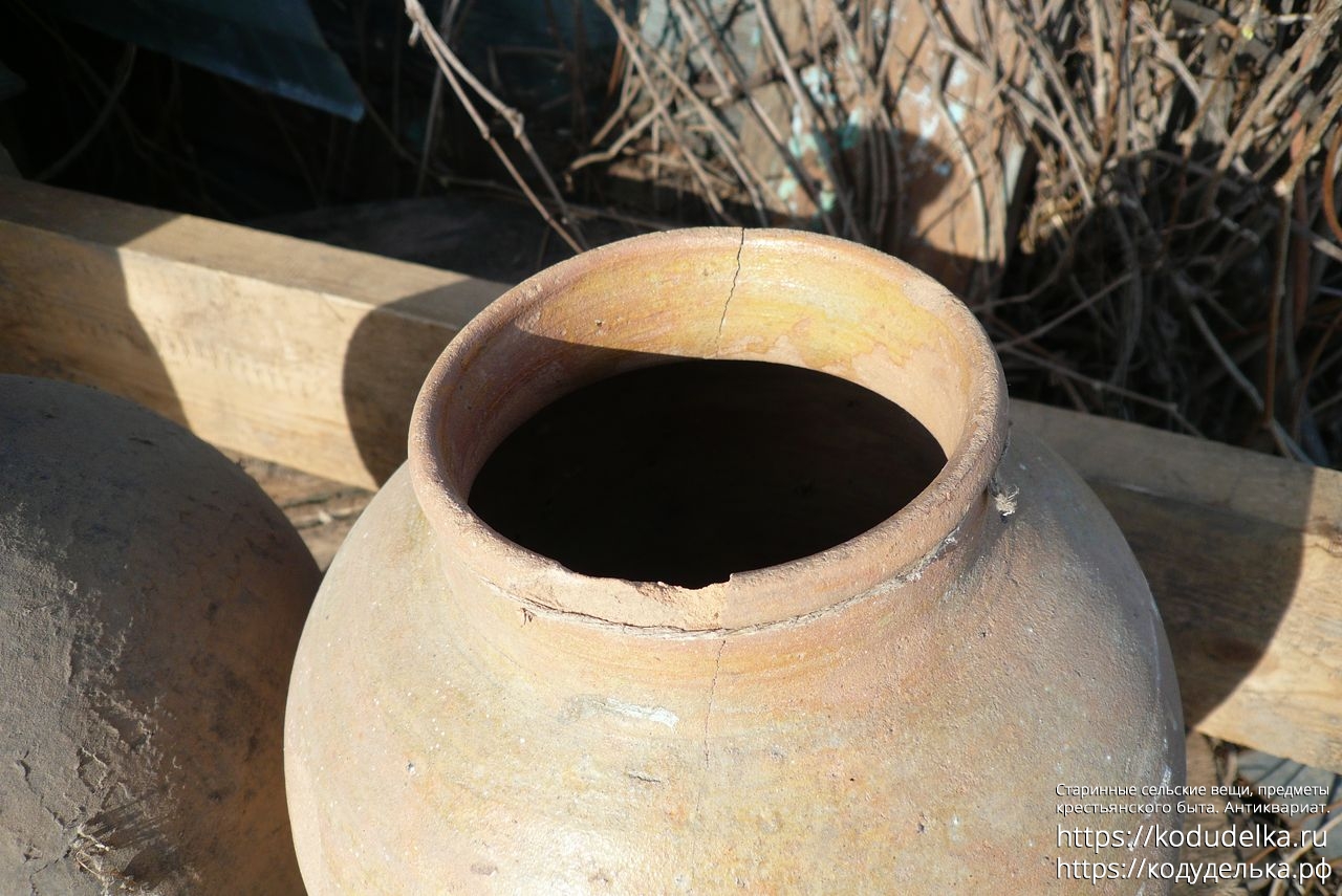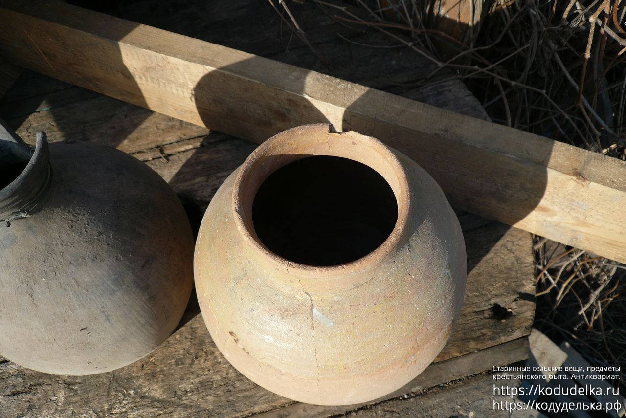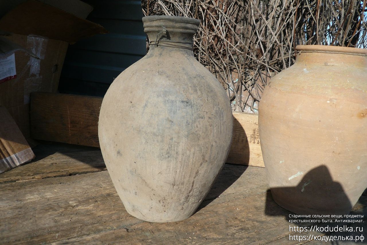 2) У тёмного кувшина из чёрной глины есть скол по ободку горловины.