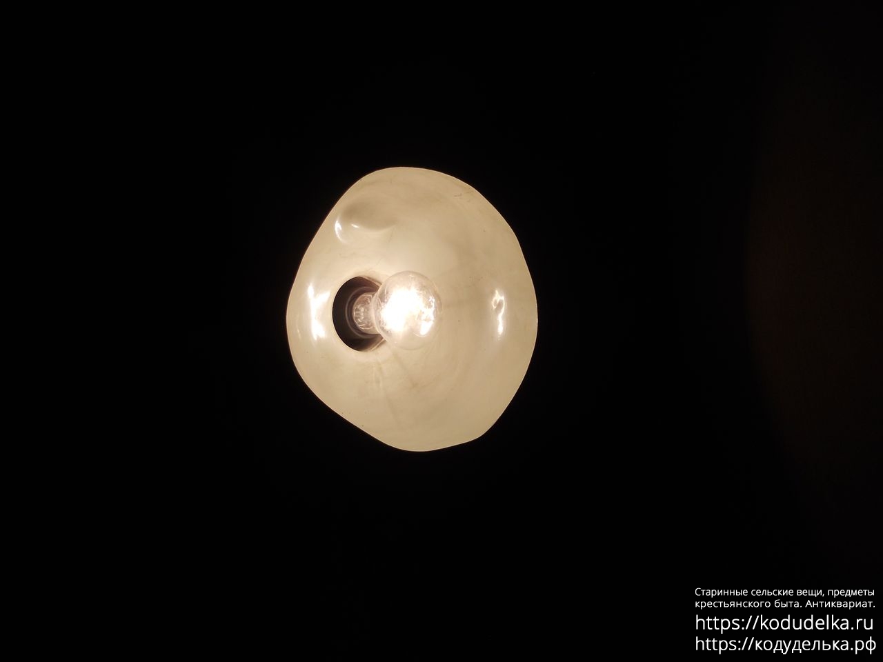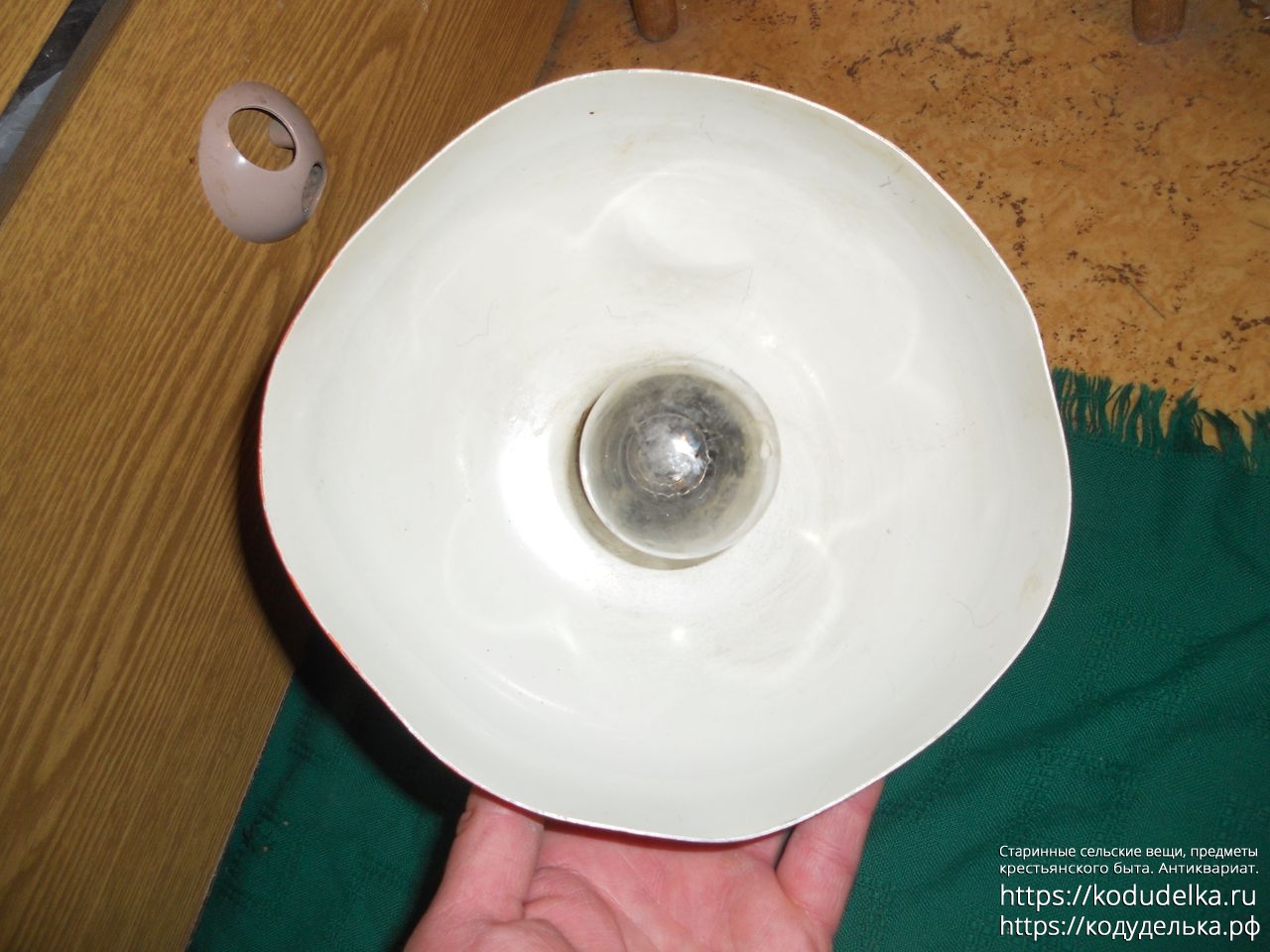 Металлический плафон с гнутыми фрагментами по краю, небольшие утраты краски.
