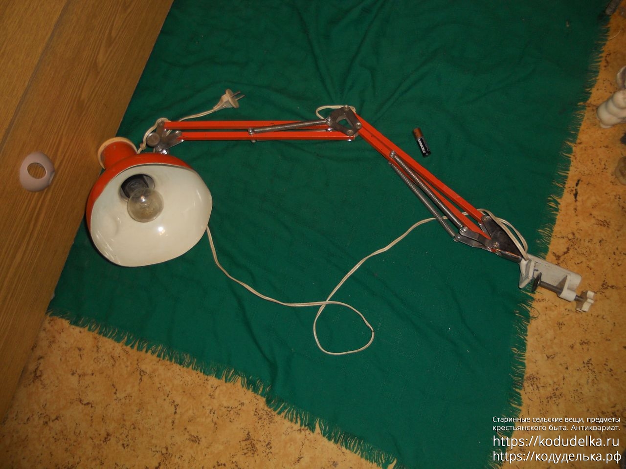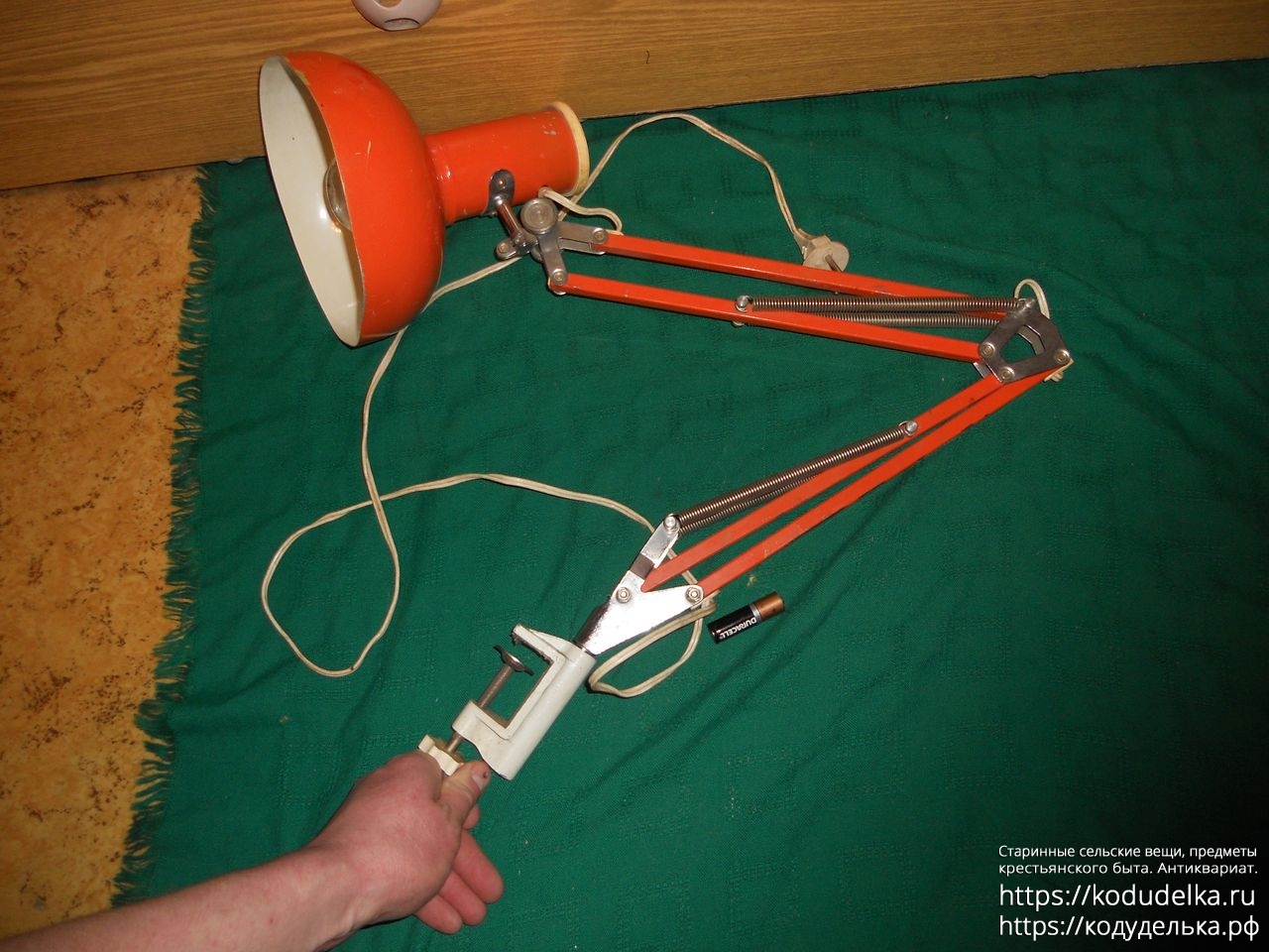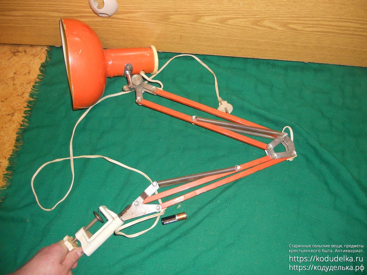 Настольная лампа из СССР для черчения, крепление к столу через струбцину.