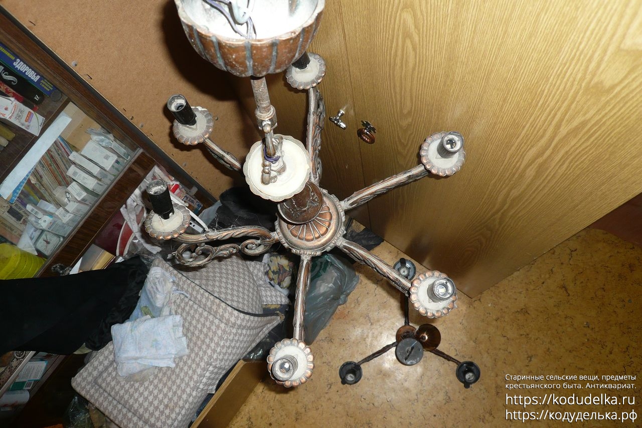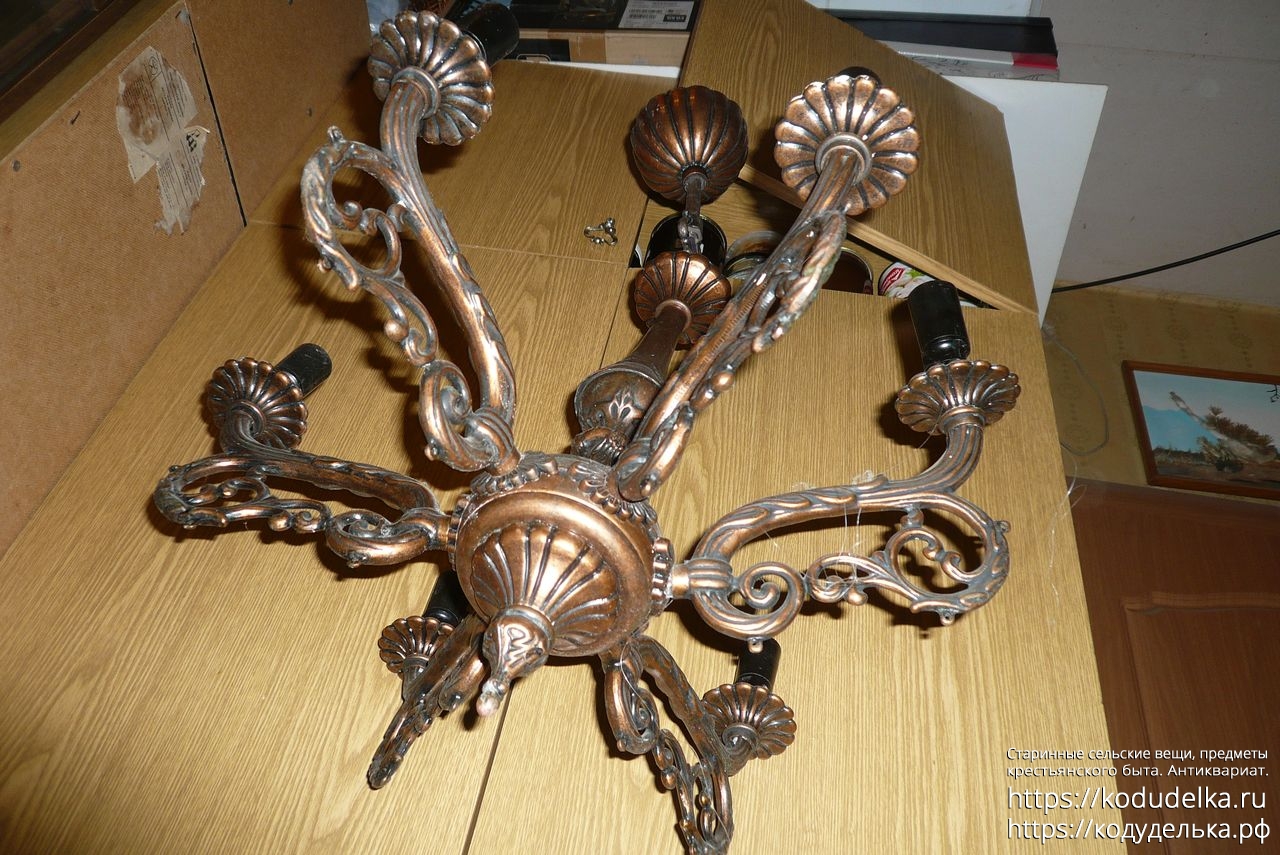 Люстра (каркас люстры) СССР, дюраль (силумин) под бронзу. На шесть рожков