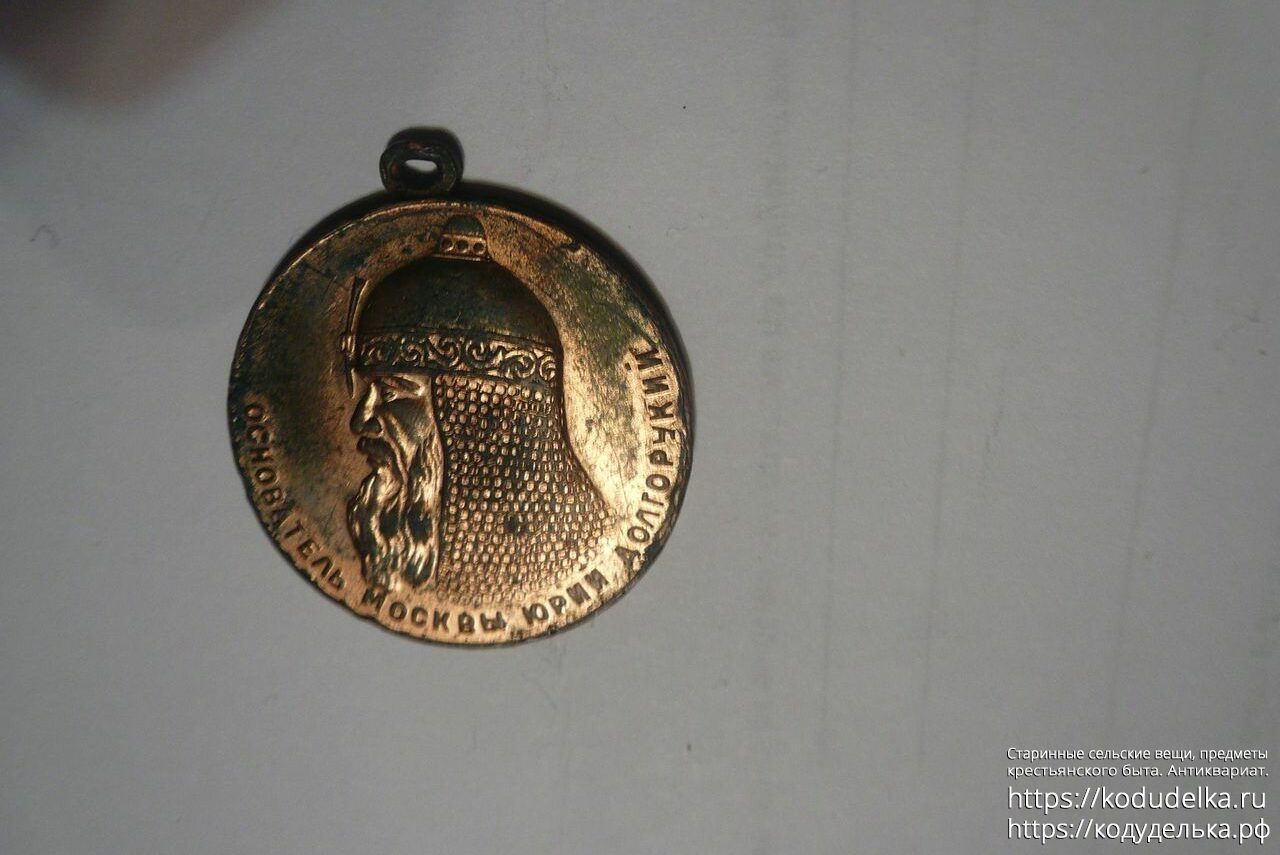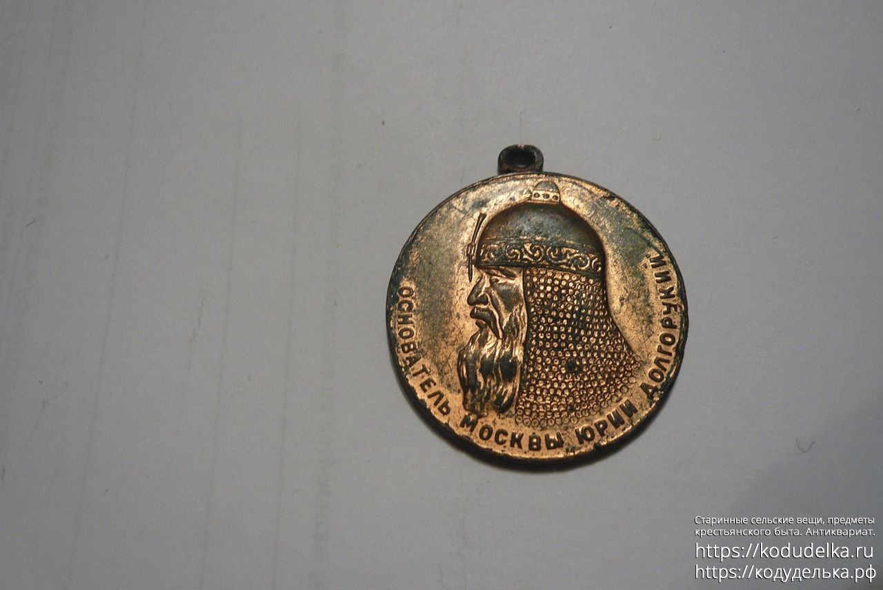 На лицевой стороне медали рельефное профильное изображение головы Юрия Долгорукого в шлеме, повернутое влево. Внизу медали по окружности надпись: “Основатель Москвы Юрий Долгорукий”.