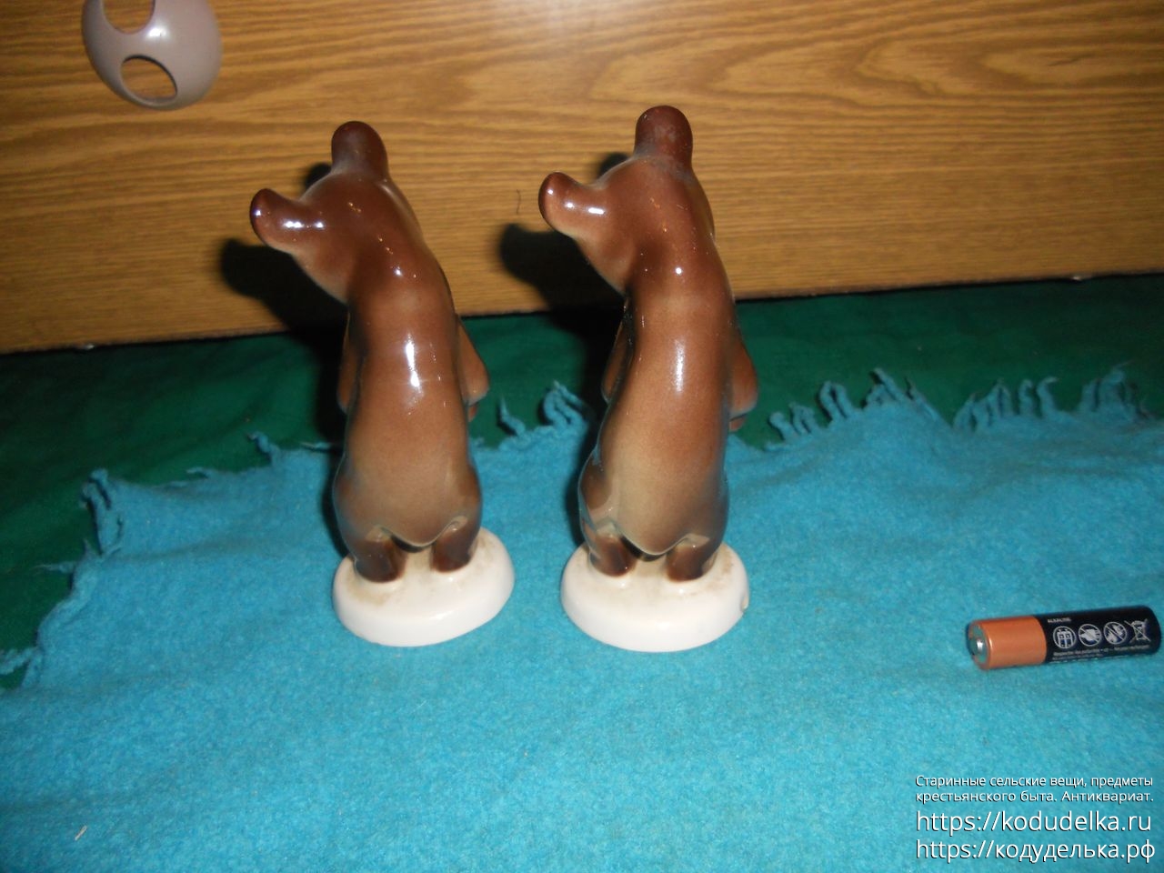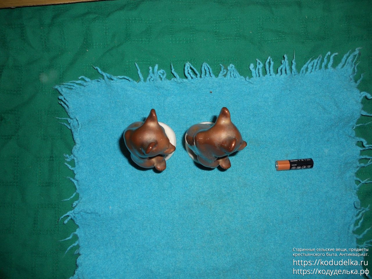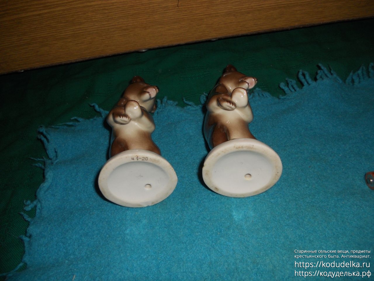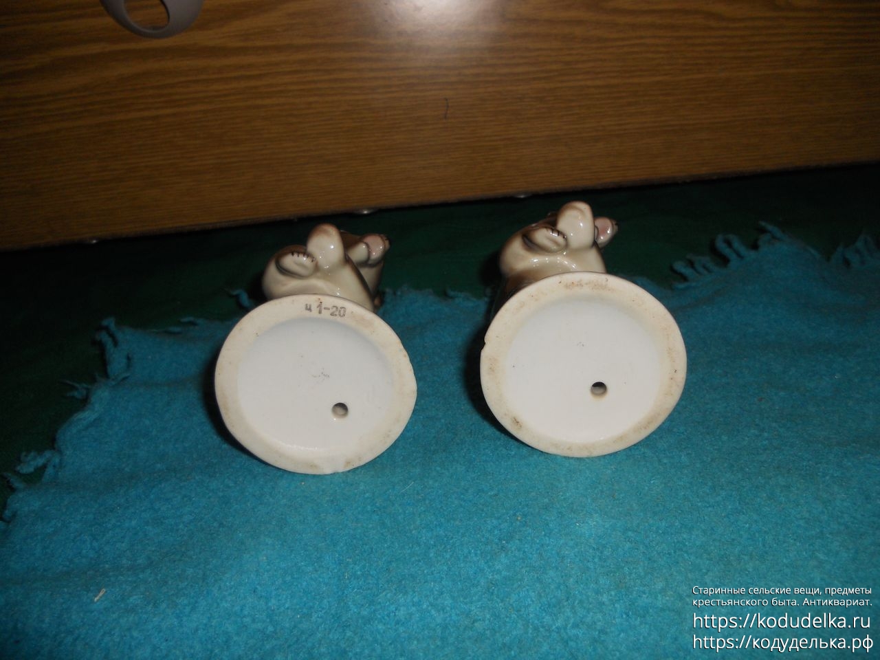 Сами фигурки — целые, без трещин и сколов, но, у одной есть маленький скольчик сзади на подставке.
