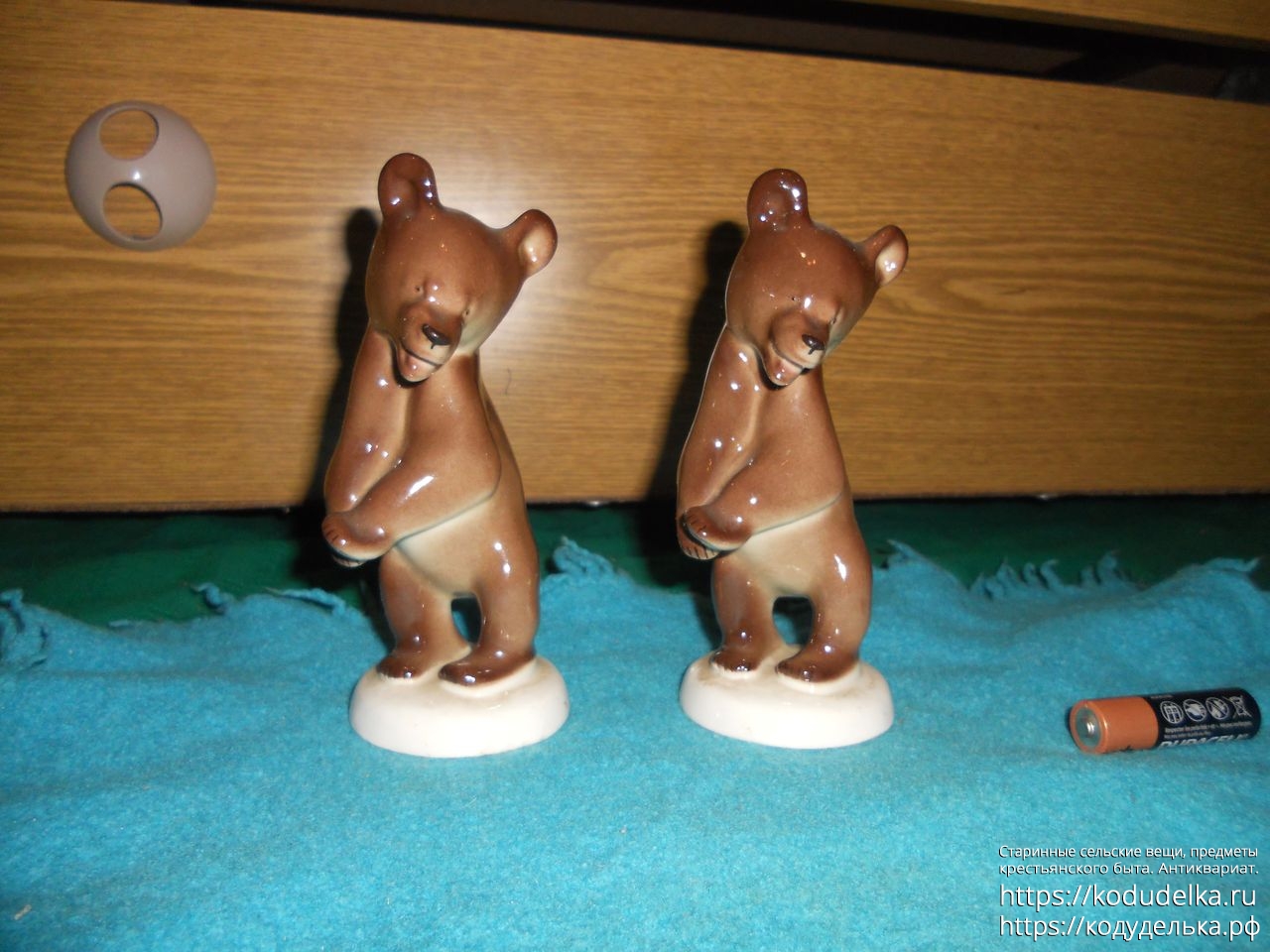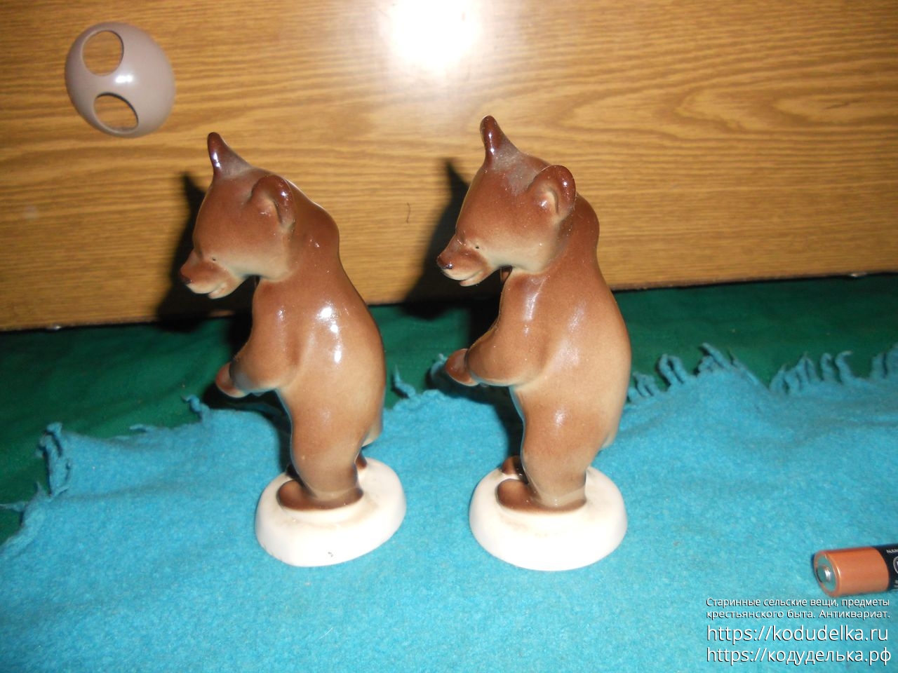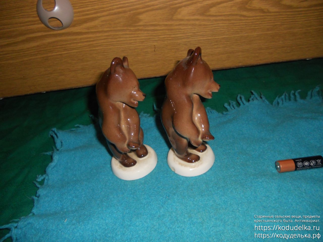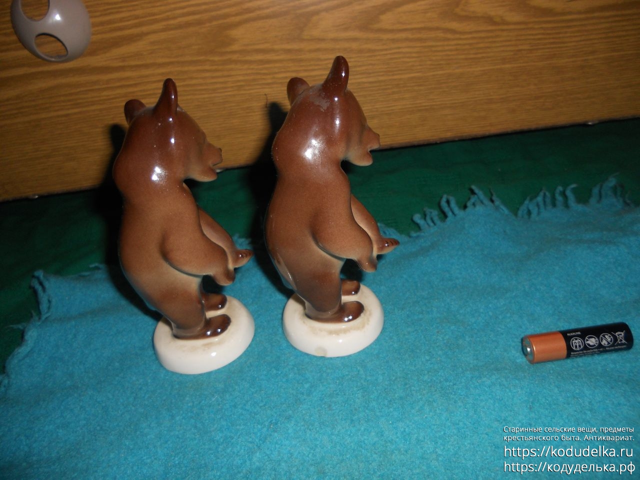 Сами фигурки — целые, без трещин и сколов, но, у одной есть маленький скольчик сзади на подставке.