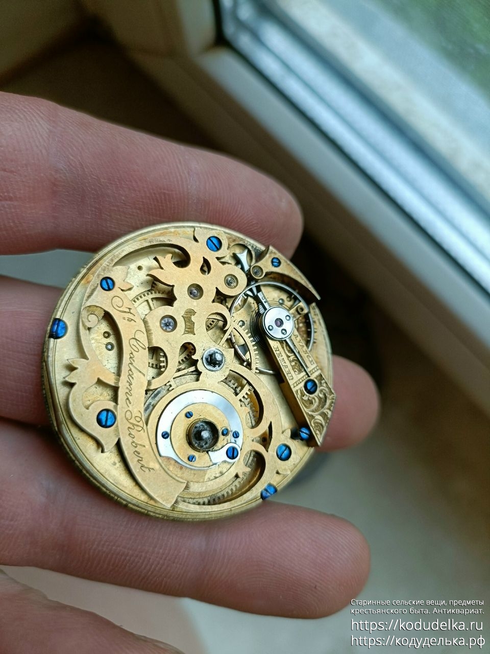 Надписи сзади, а механизме: J. Calame Robert, сверху надпись Avance Retard