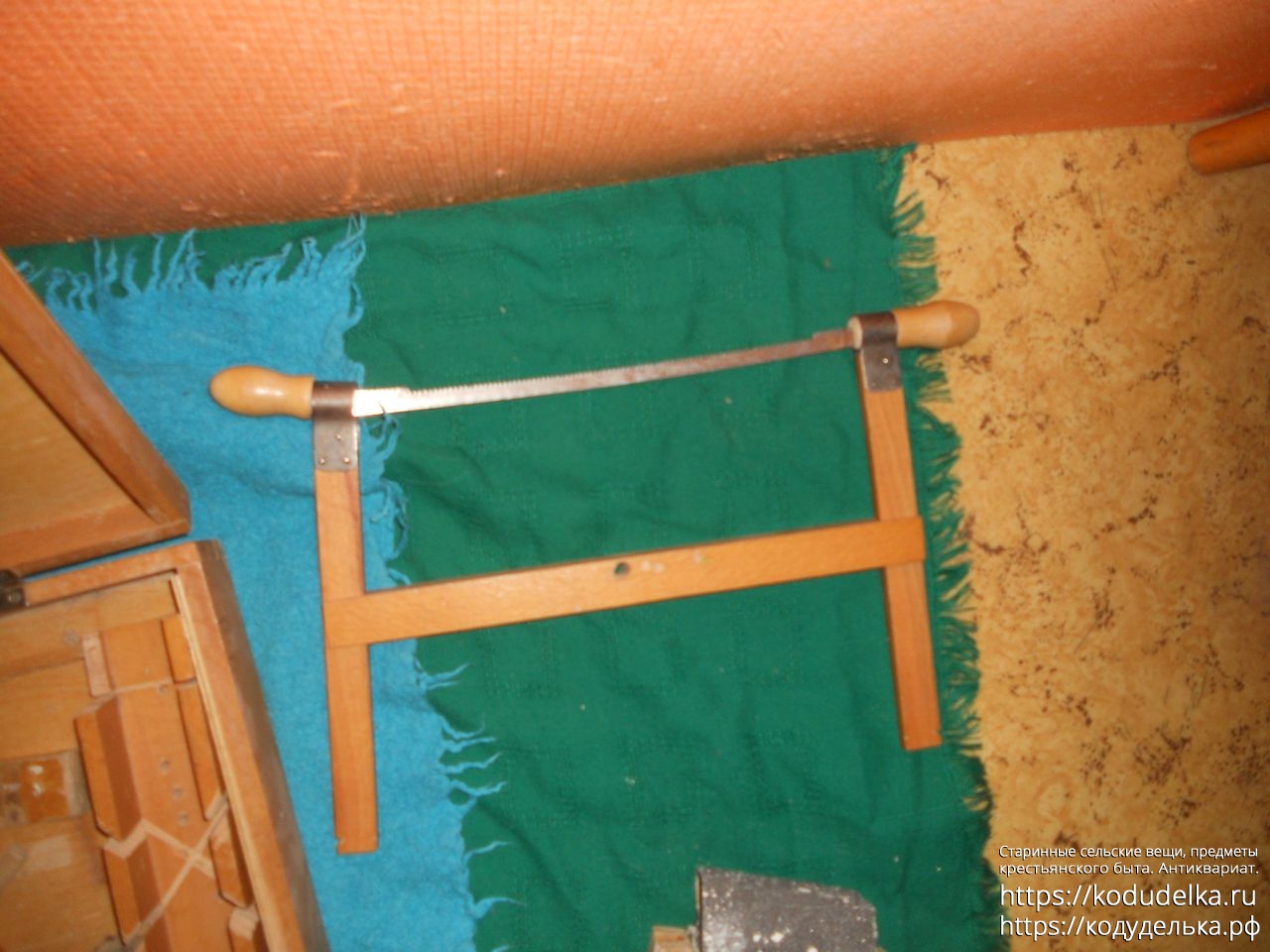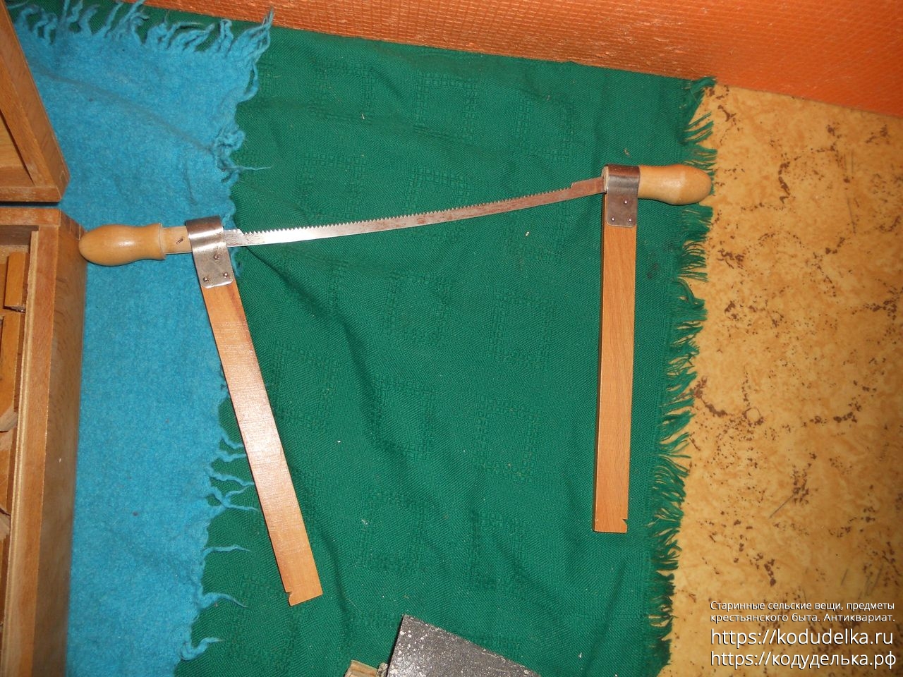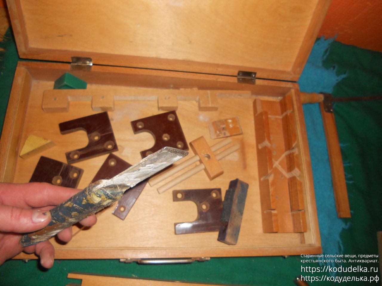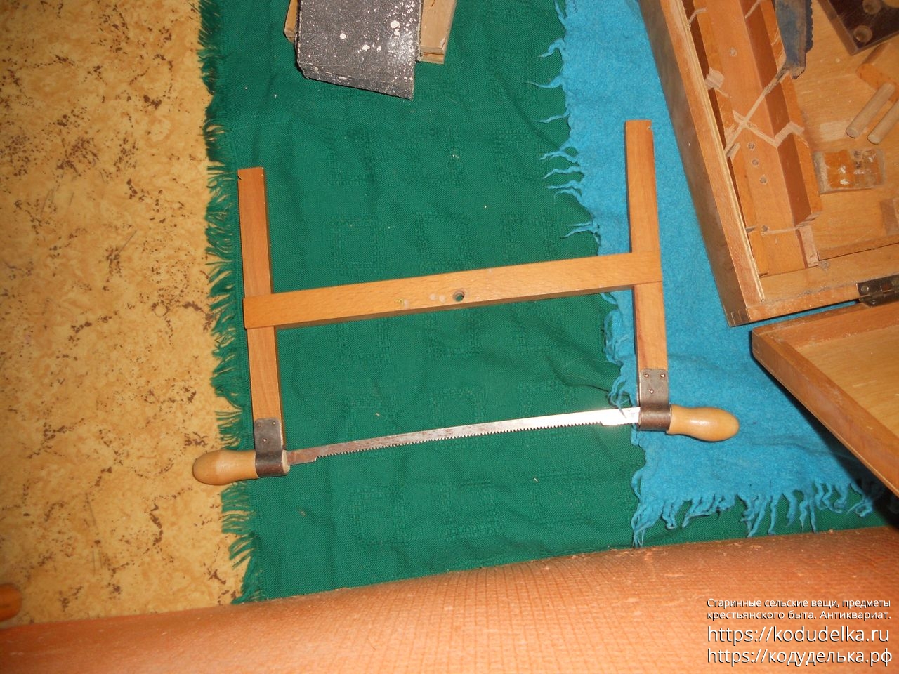 Из опознанного: стусло, лучковая пила и рейсмус. Также нож от рубанка, переделанный в… шпатель? Скорее всего он не из этого набора, но хранилось вместе.