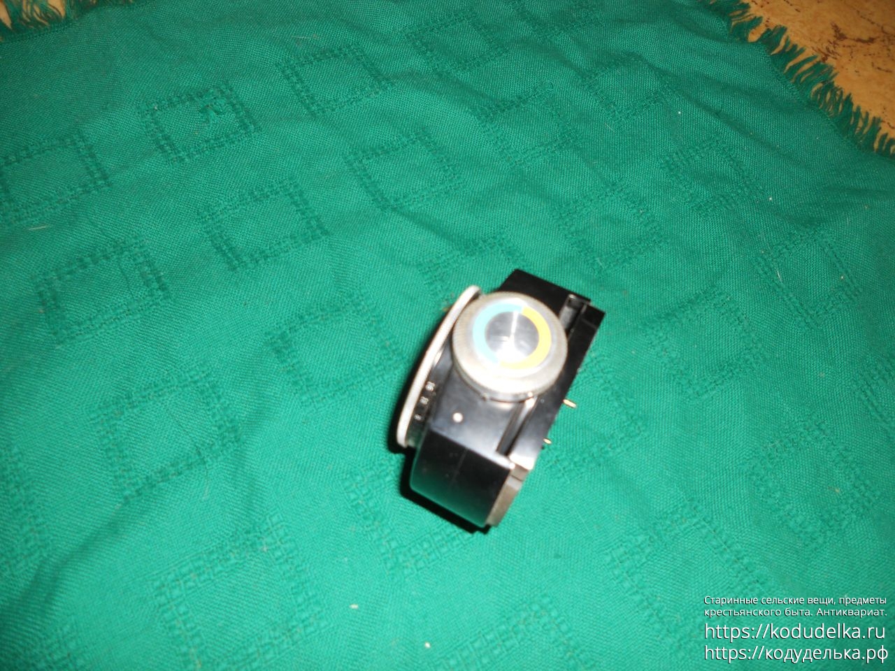 У фиолетового (на фото он кажется темно-синим) стеклышка в светофильтре есть царапина (? либо прилипло что-то белое с двух (?) сторон) — белая точка на фото.