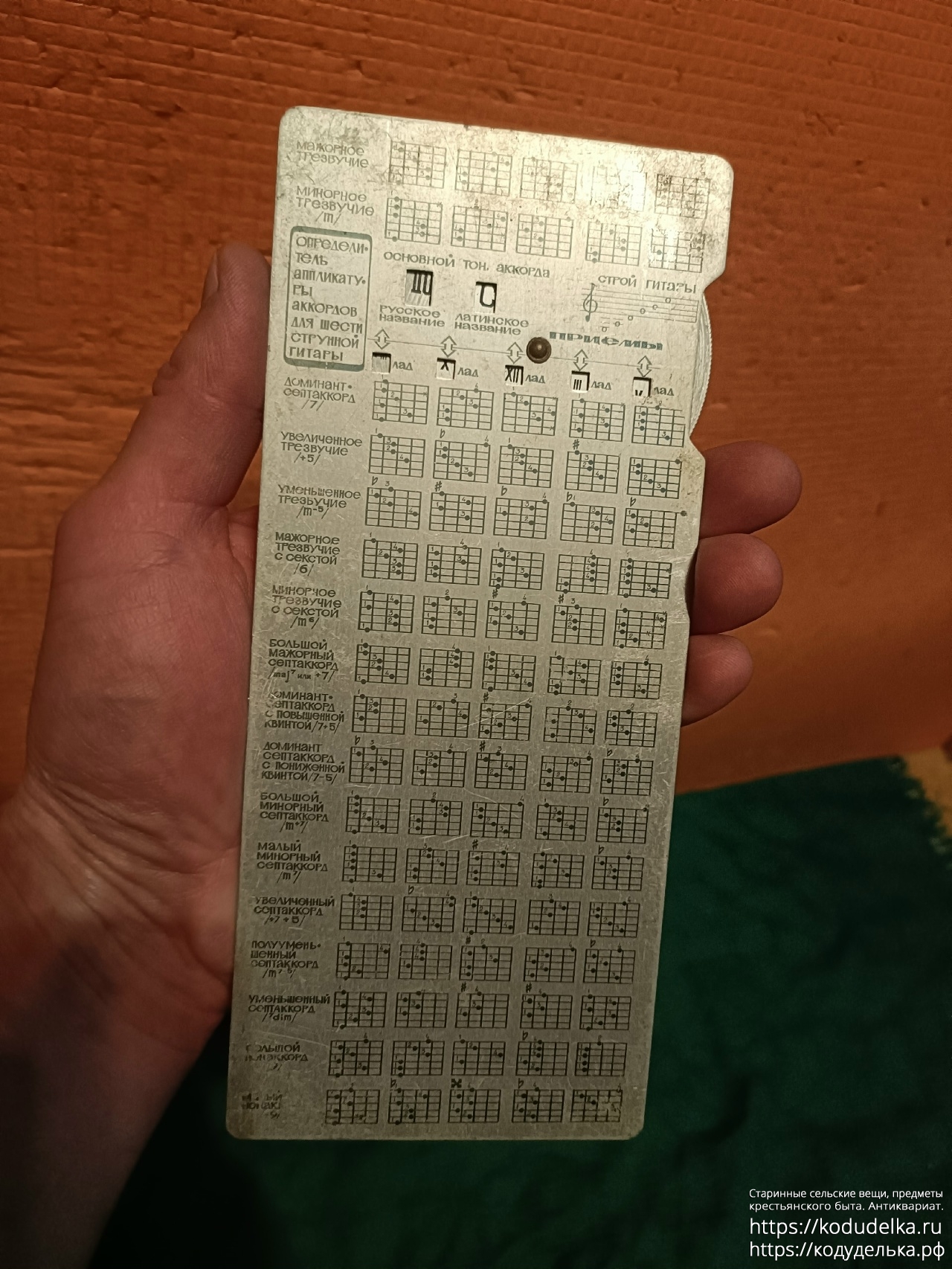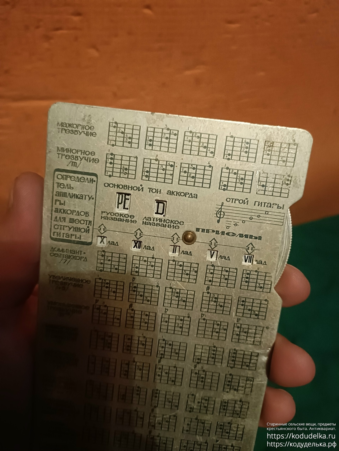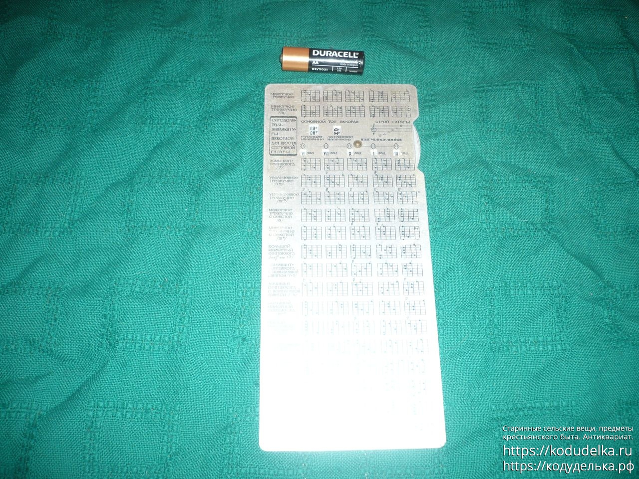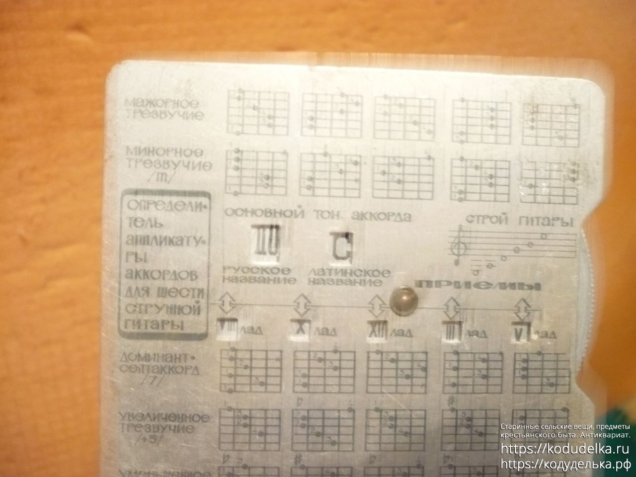 Советский обучающий инструмент для гитаристов, представляющий собой определитель аккордов и инструкцию по настройке для шестиструнной гитары