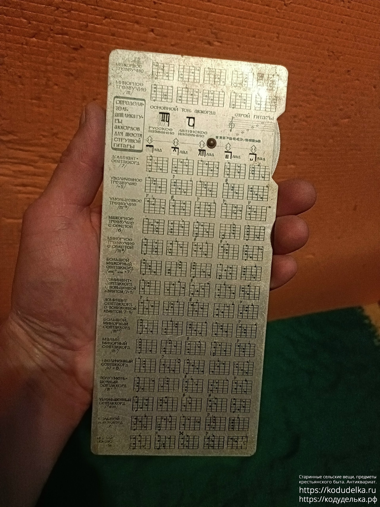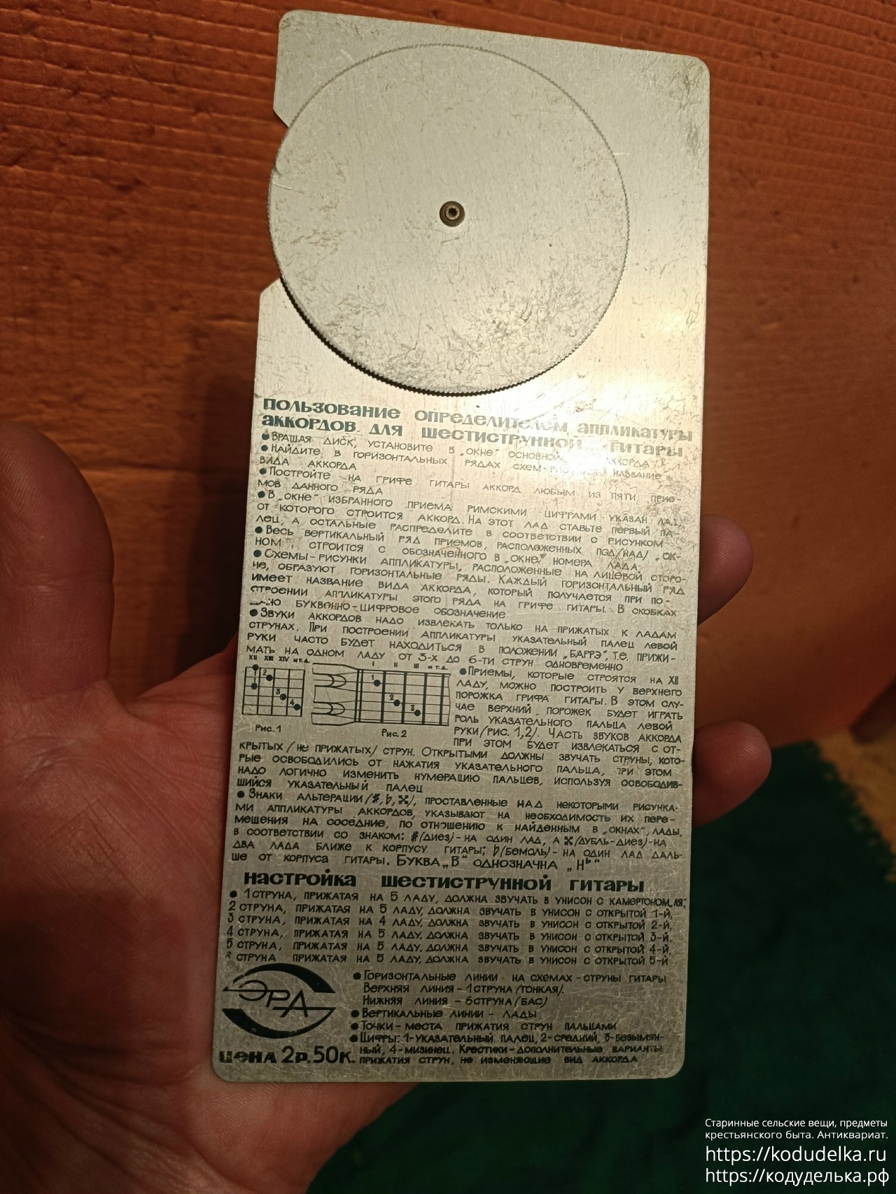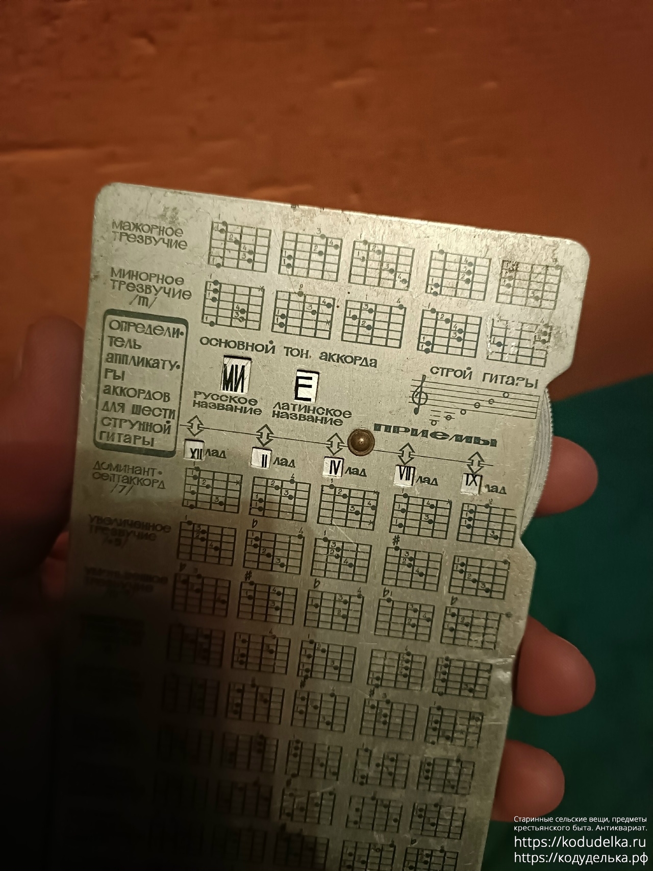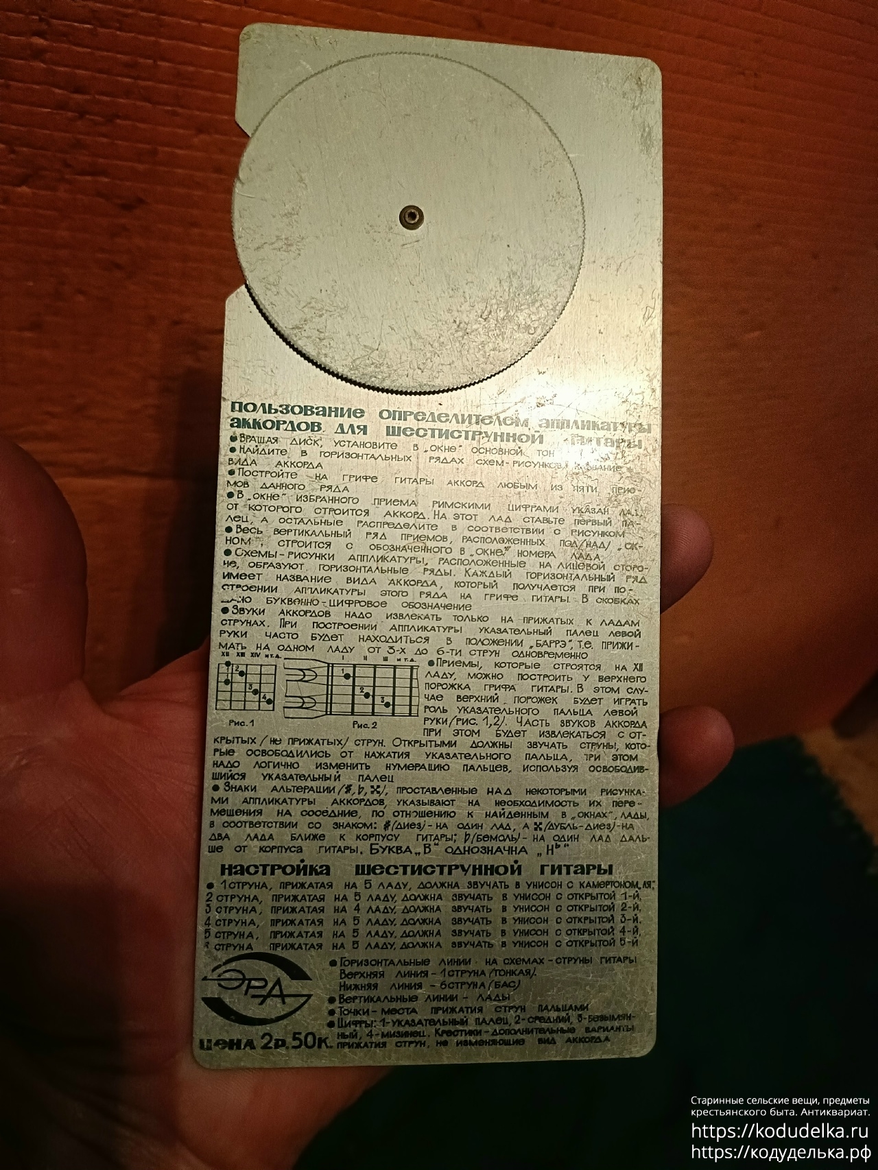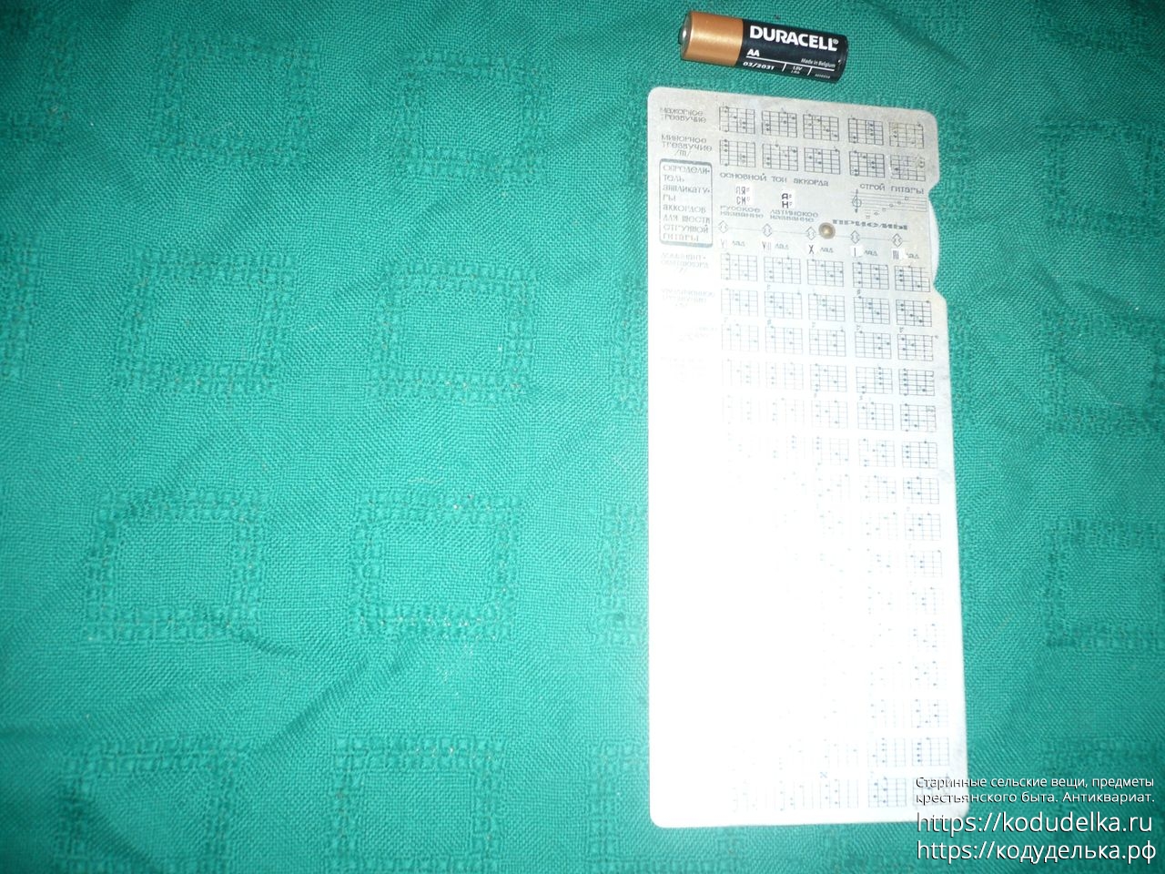 Советский обучающий инструмент для гитаристов, представляющий собой определитель аккордов и инструкцию по настройке для шестиструнной гитары
