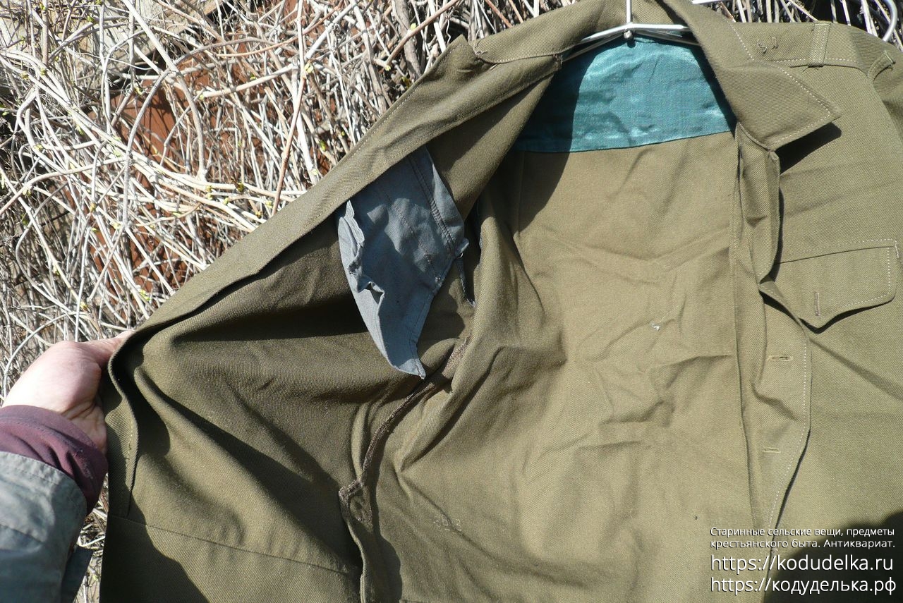 Пиджак армейский (? либо какая-то гражданская служба — лесничество. спасатели и т.п.), зеленого цвета, без знаков отличия (без петлиц и погон).